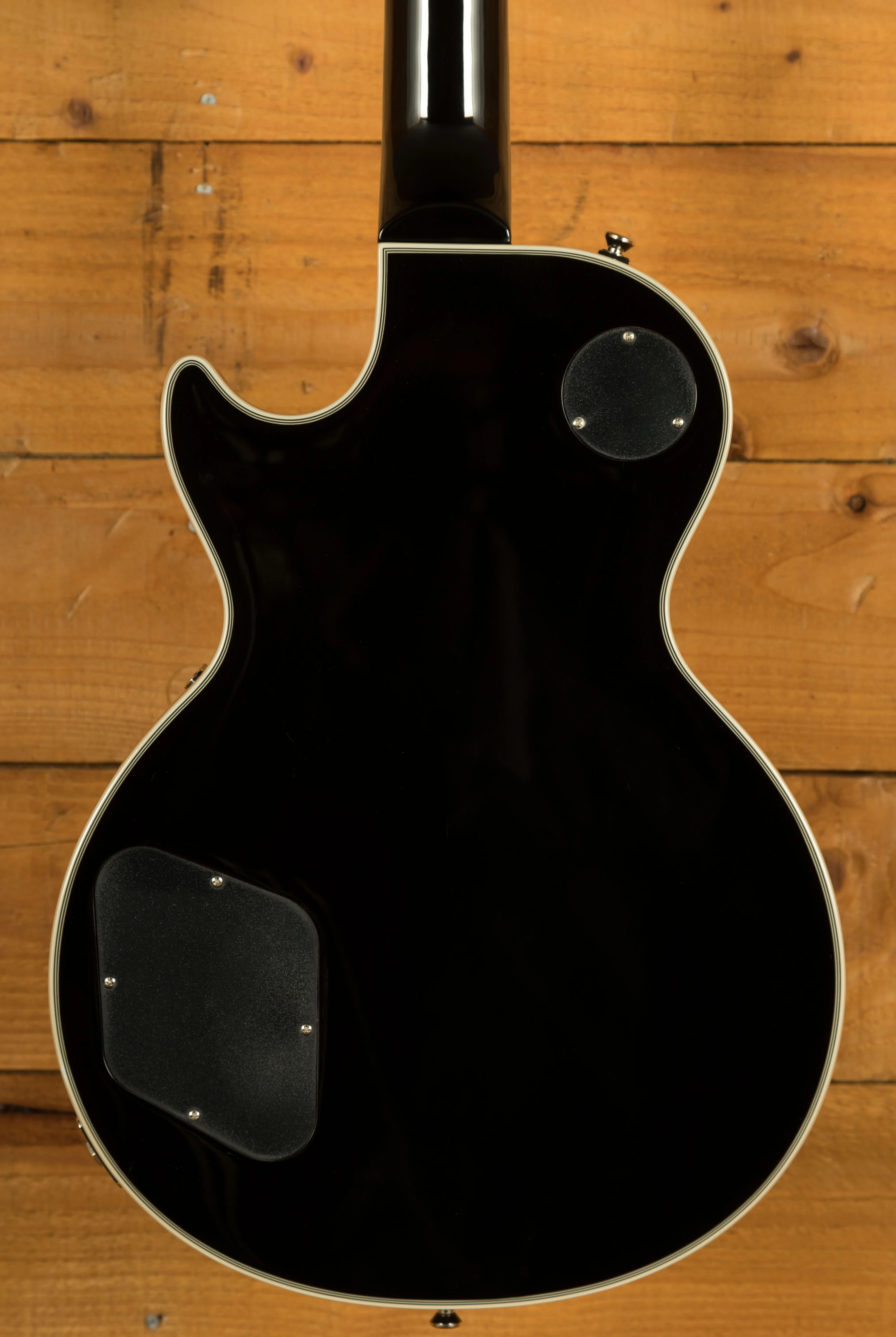 The neck of this Les Paul Custom is crafted from mahogany and features a SlimTaper profile, offering a comfortable and fast-playing experience. The Ebony fingerboard features a 24.75” scale length, 12” radius, 22 medium jumbo frets, and block inlays. The Graph Tech nut ensures tuning stability and precision, while the 43mm nut width provides a familiar feel for Les Paul enthusiasts.