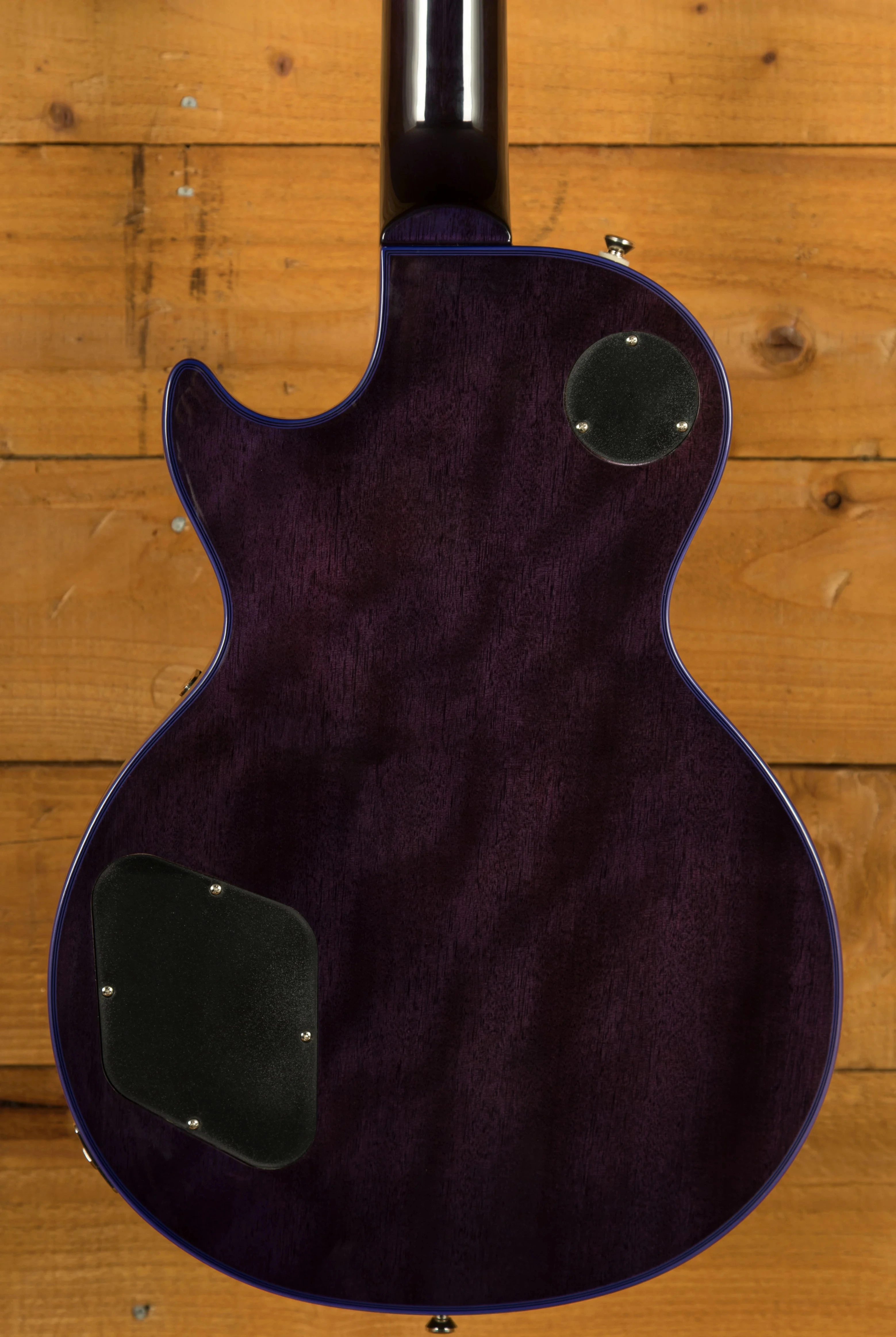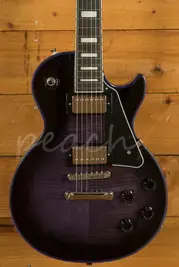 For pickups, the Les Paul Custom is equipped with a pair of Epiphone Probucker Custom humbuckers; based on Gibson's Custombuckers, these pickups deliver a versatile range of PAF-inspired tones. These pickups are complemented by CTS potentiometers, allowing for precise control over your volume and tone settings. The guitar's hardware includes a LockTone Tune-O-Matic bridge with a LockTone stopbar for solid intonation and sustain, and Grover Rotomatic tuning machines for reliable and accurate tuning. The 1-11/16" Graph Tech further enhances tuning stability by preventing the strings from getting caught on it and later slipping.