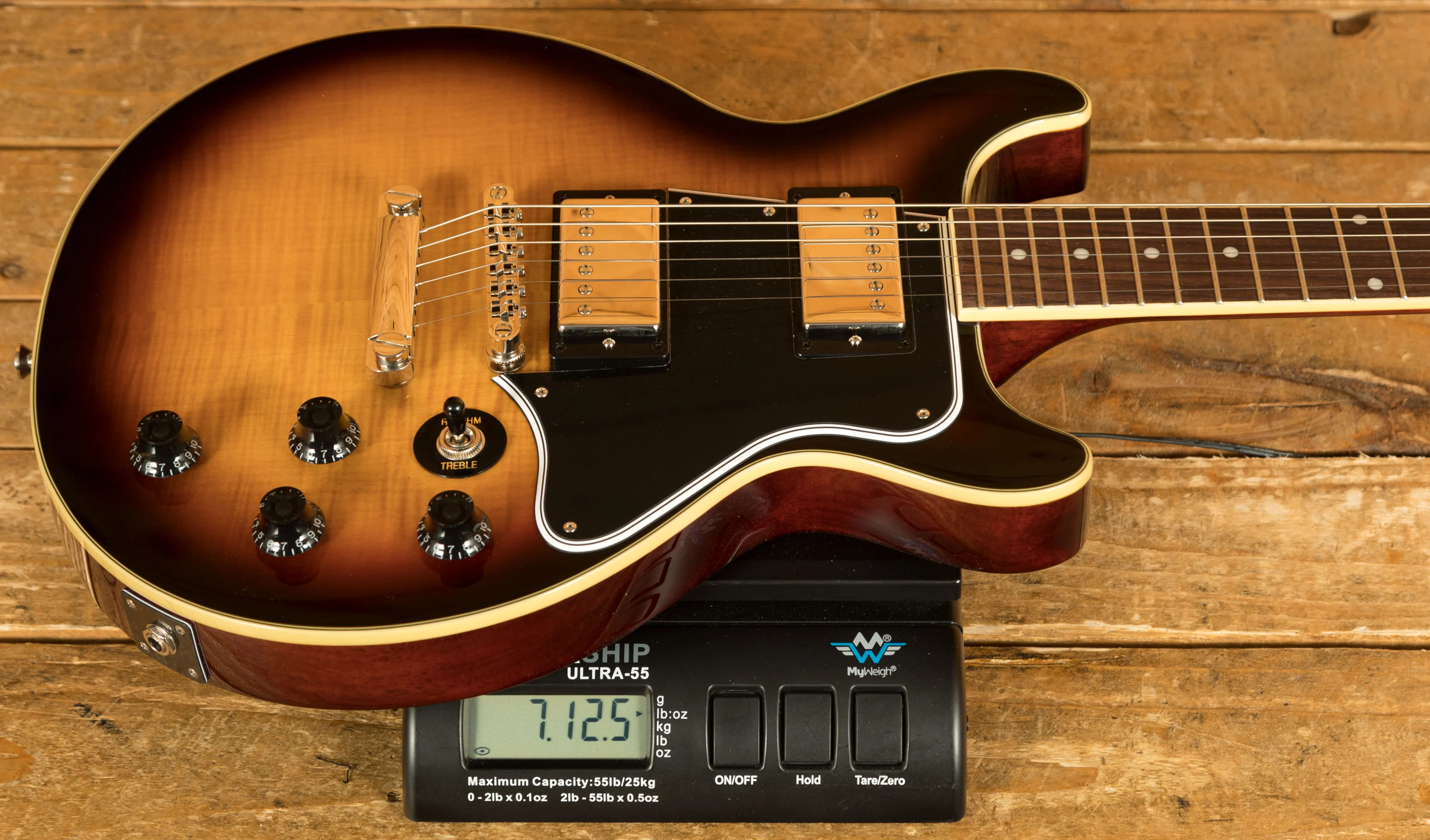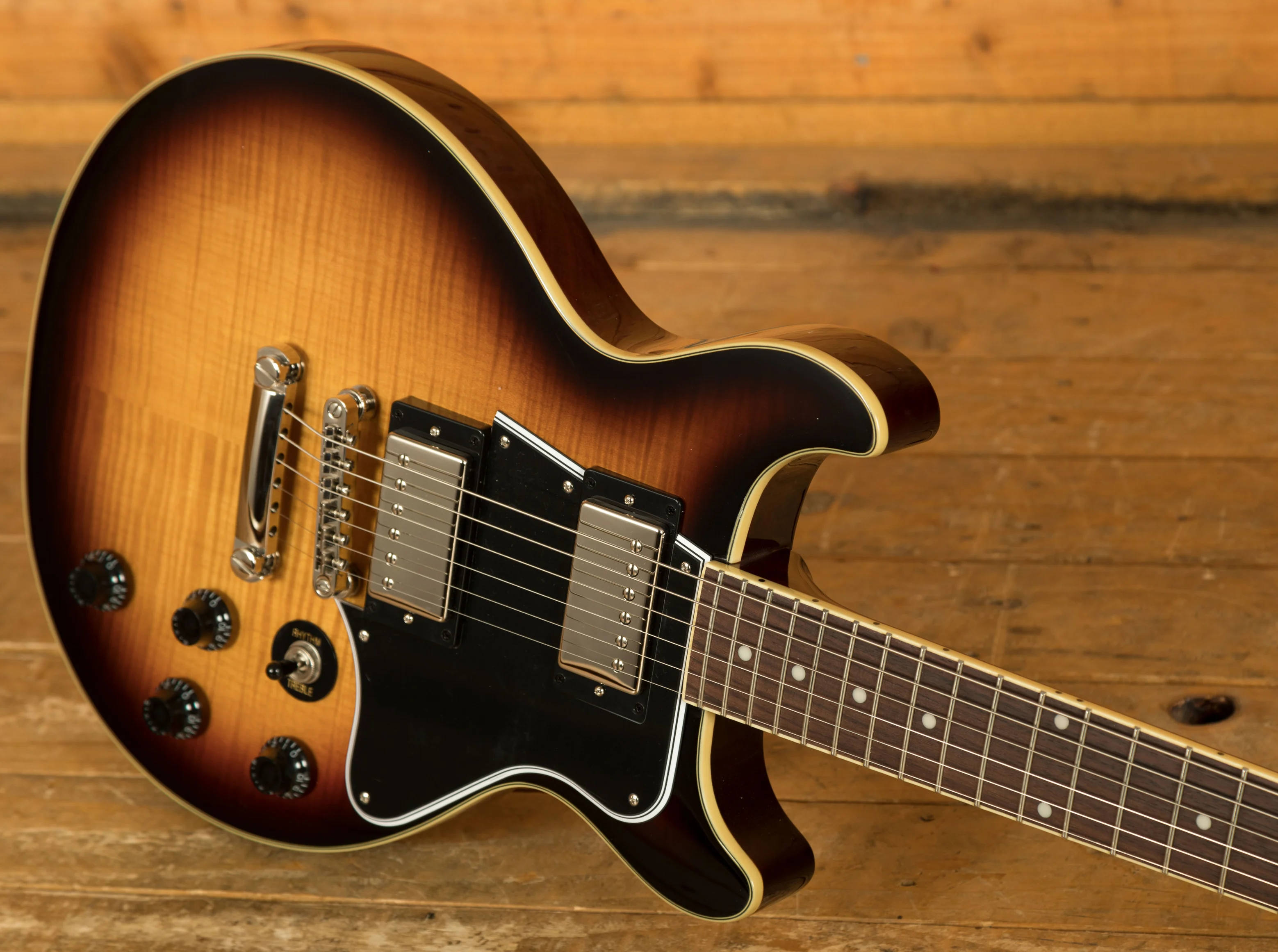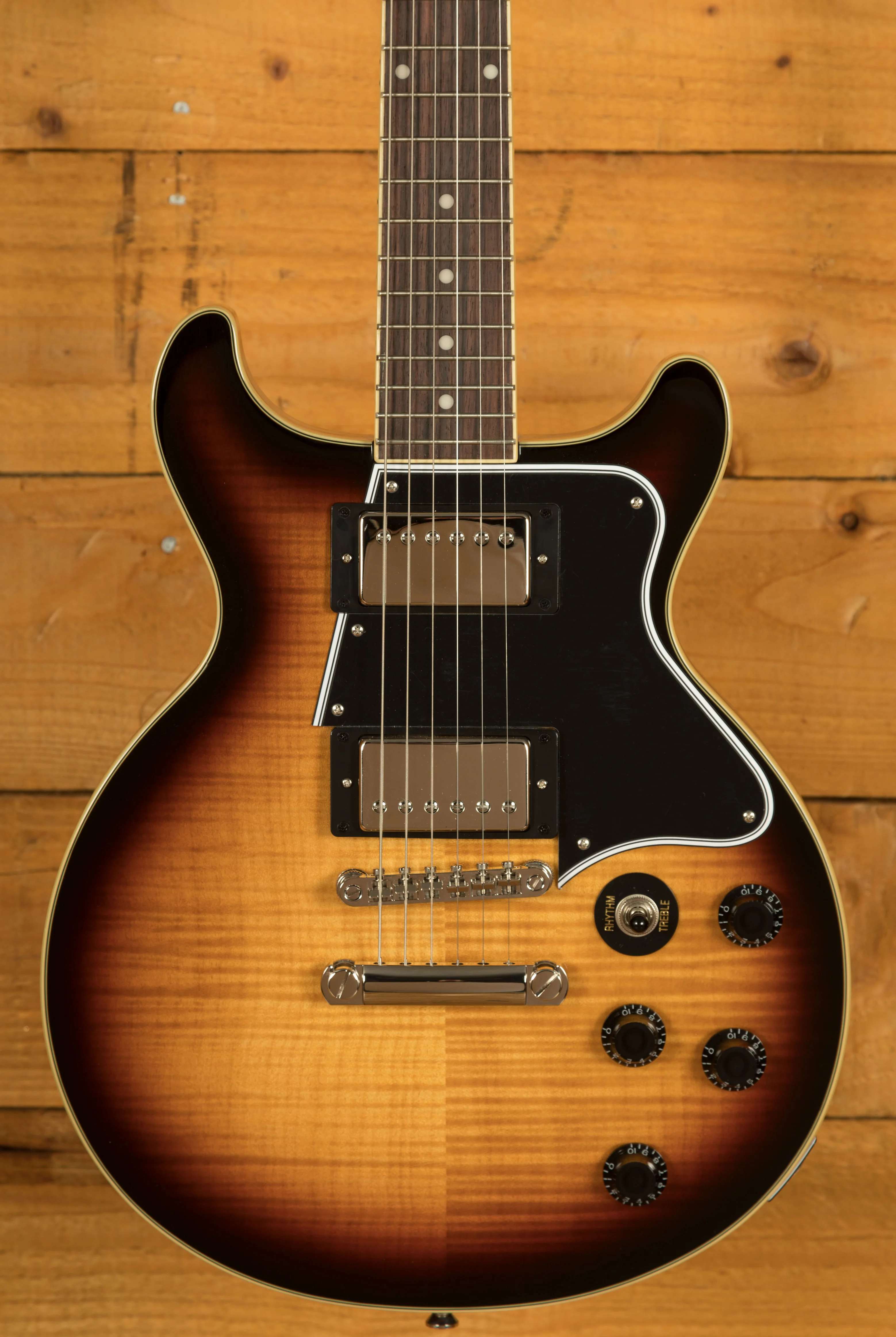 This model is certainly one you’ll want to check out. It features a Mahogany body paired up with a 3A Figured Maple veneer, so it both looks and sounds incredible! This tonewood pairing is legendary and has been used by Gibson for decades, it’s super resonant and punchy in tone. The Figured Maple veneer looks awesome and gives this model a real premium look.