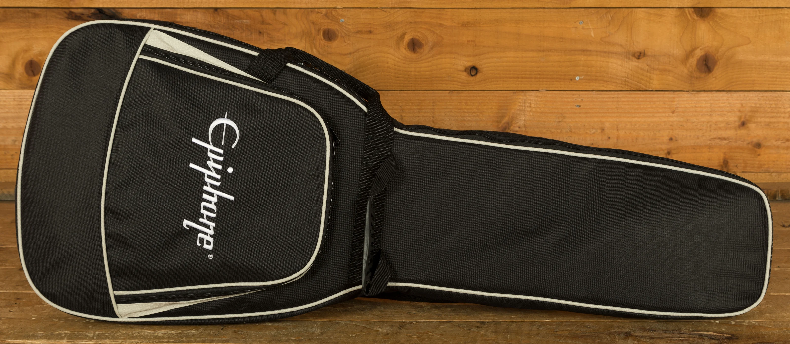 The Mahogany neck feels great thanks to the 60s SlimTaper neck shape, which is one of the fastest playing and comfortable necks offered by Epiphone. It’s inspired by neck shapes found on vintage Gibson instruments crafted in the 1960s. The Rosewood fingerboard features a 43mm nut width, 24.75” scale length, 22 frets, and acrylic dot inlays.
