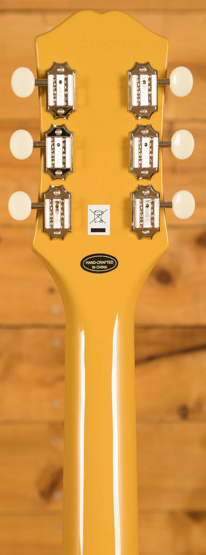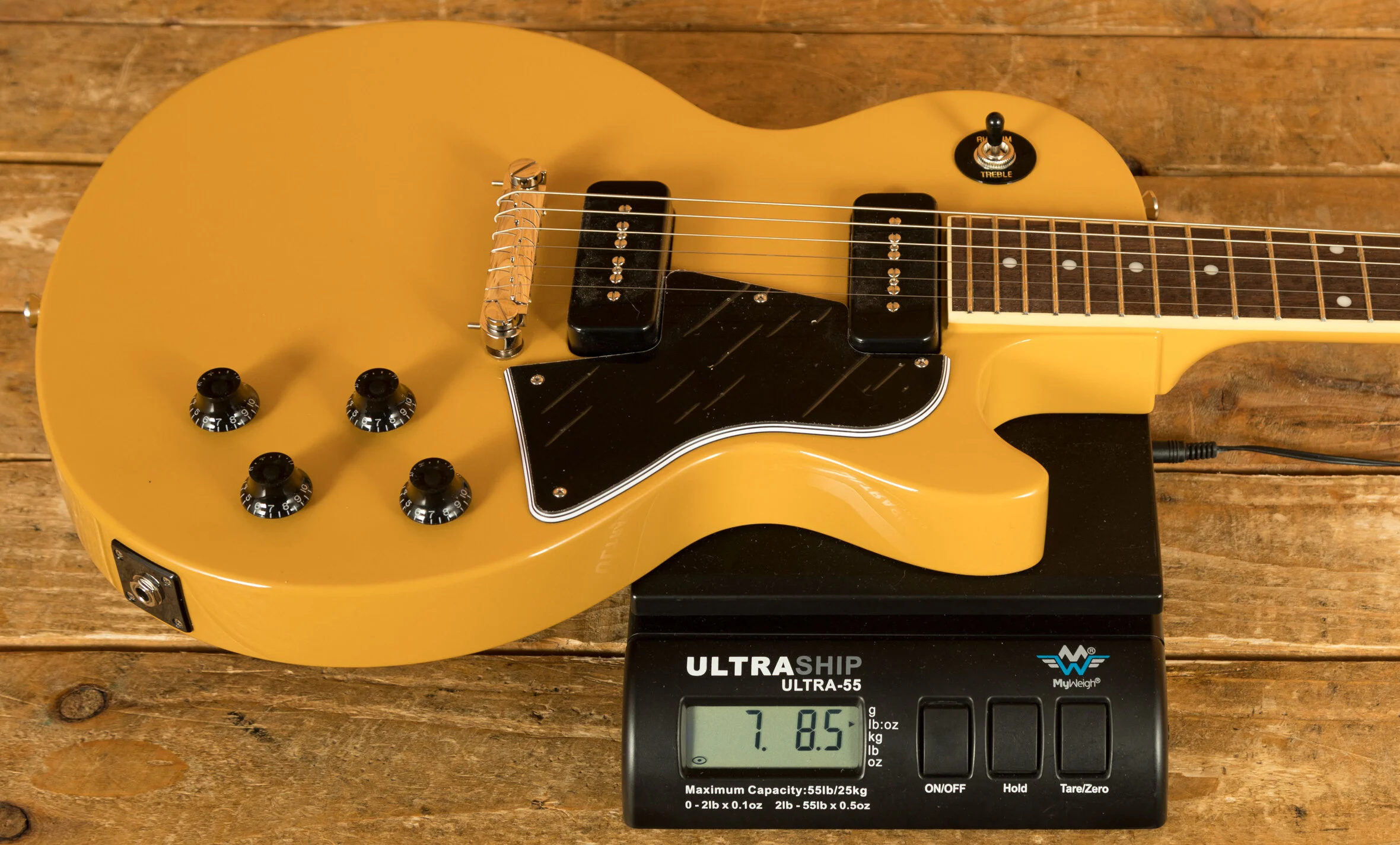 One glance at the Epiphone Les Paul Special and you'll be captivated by its stunning TV Yellow finish, faithfully reproduced to pay homage to the iconic aesthetics of the original model. This finish not only showcases the guitar's striking appearance but also enhances its resonance, allowing every note to resonate with exceptional clarity.