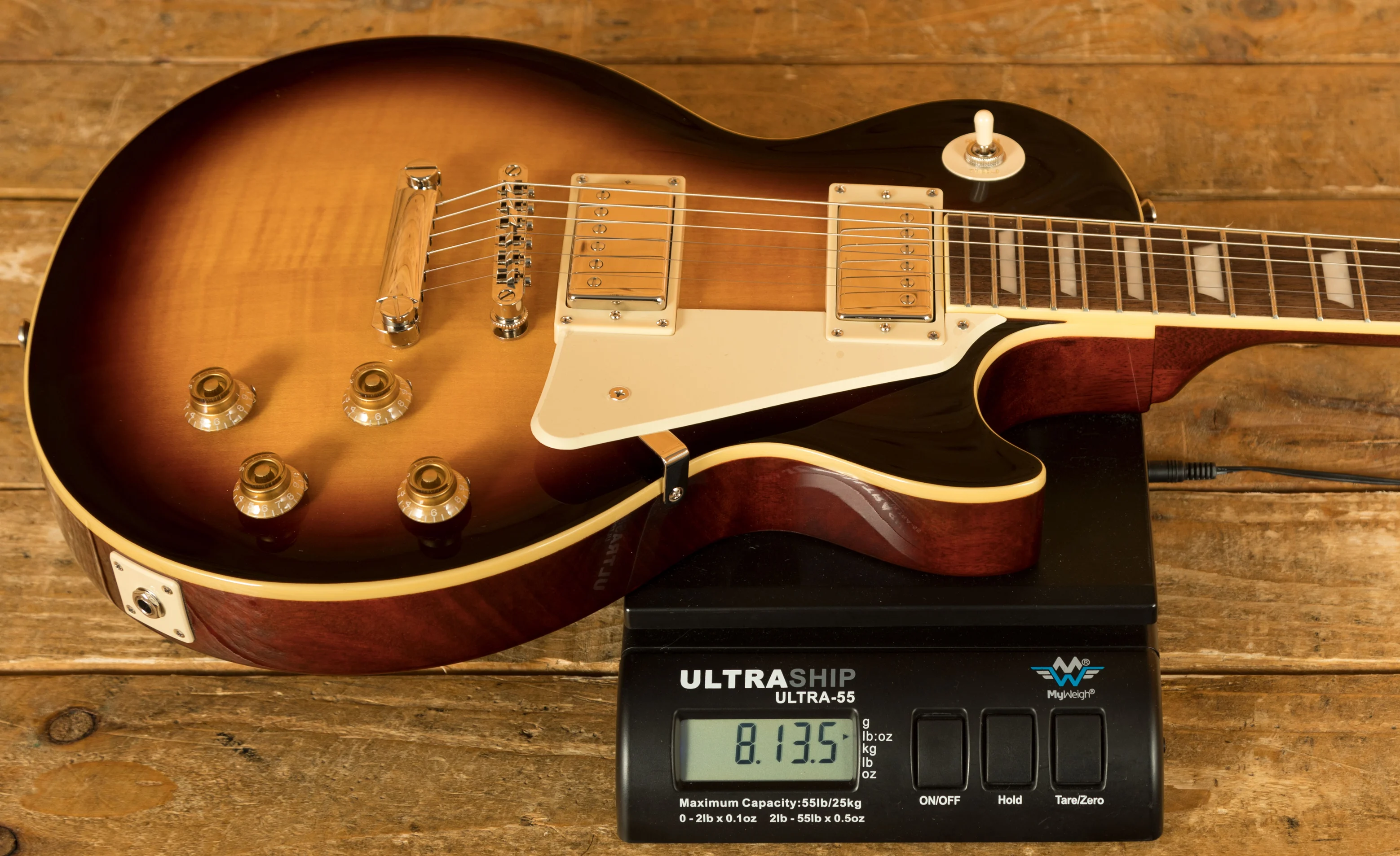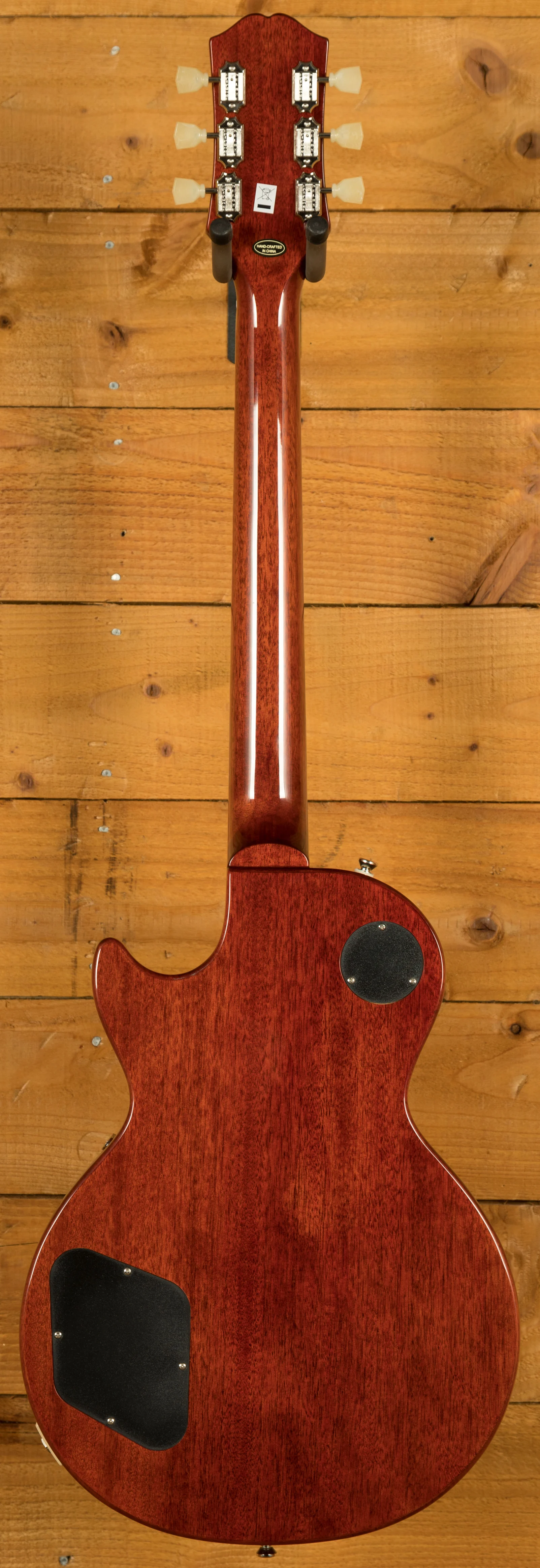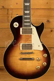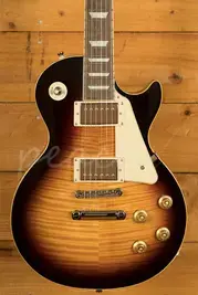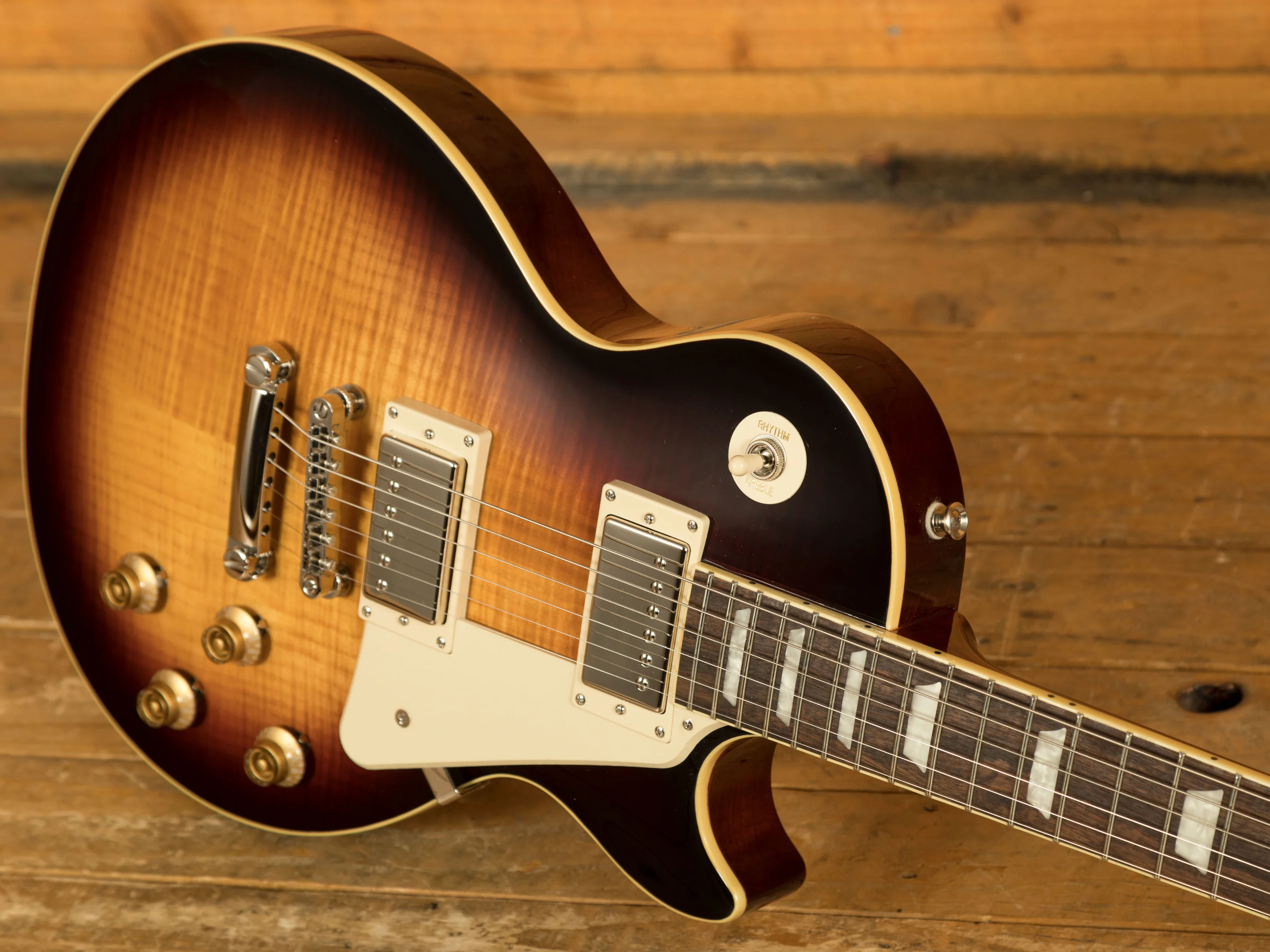 Step into the golden age of rock 'n' roll with the Epiphone Les Paul Standard 50s Figured in stunning Bourbon Burst—a modern tribute to the legendary 1950s Les Paul electric guitars that defined generations of music. Part of Epiphone's Inspired by Gibson Collection, this figured top beauty delivers the warm, sustaining humbucker growl and buttery playability that made the original Les Paul a studio and stage staple. Whether you're channeling Slash's solos, Jimmy Page's riffs, or crafting your own bluesy bends, this guitar's AAA flame maple veneer top over a solid mahogany body ensures rich, resonant tones that sing through any amp.