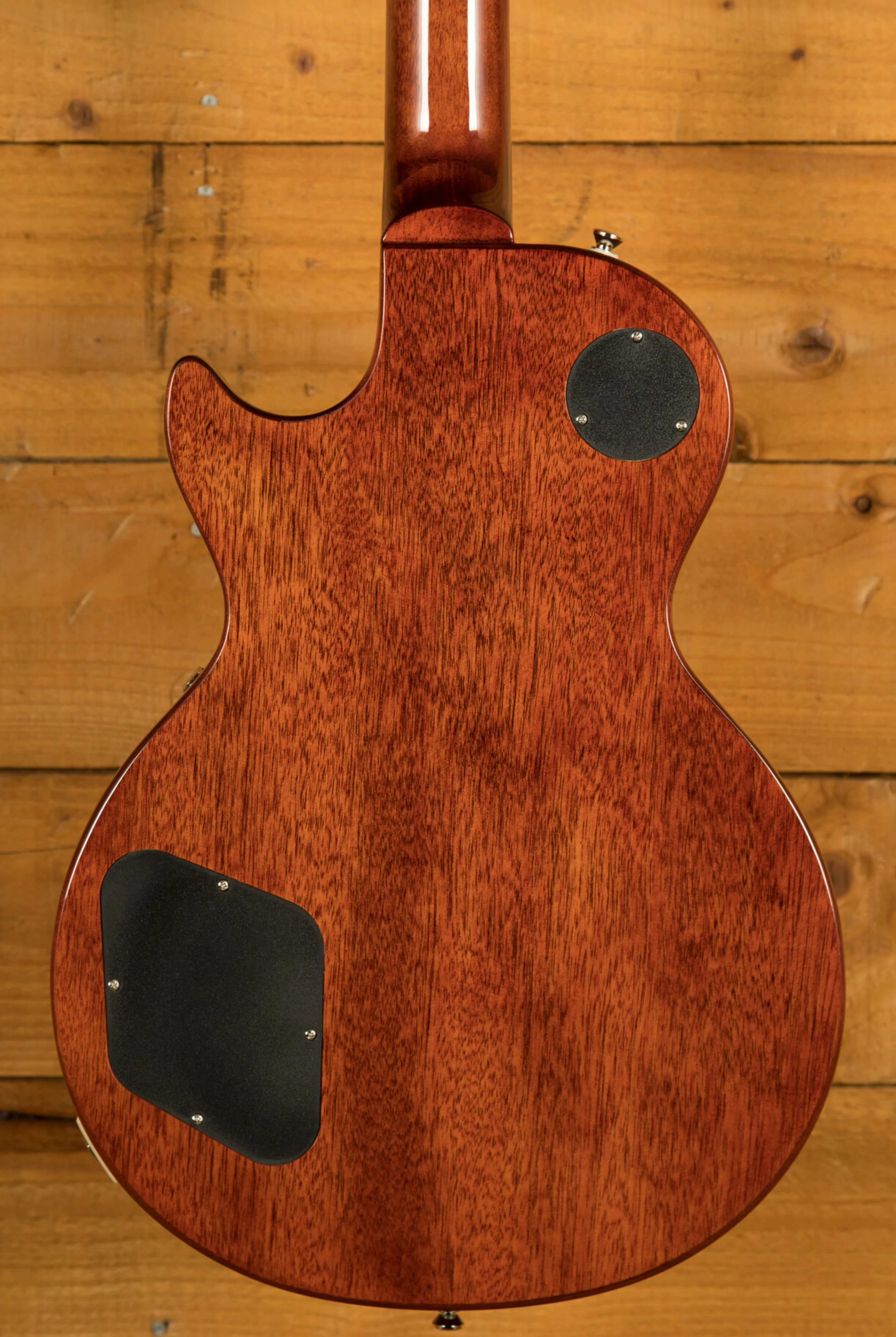 The body of the Les Paul Standard 50s is constructed from solid mahogany, a tonewood known for its warm, resonant sound, providing a solid foundation for rich, sustained tones. The top is adorned with an AAA Flame Maple veneer, adding both visual appeal and a touch of brightness to the overall tone