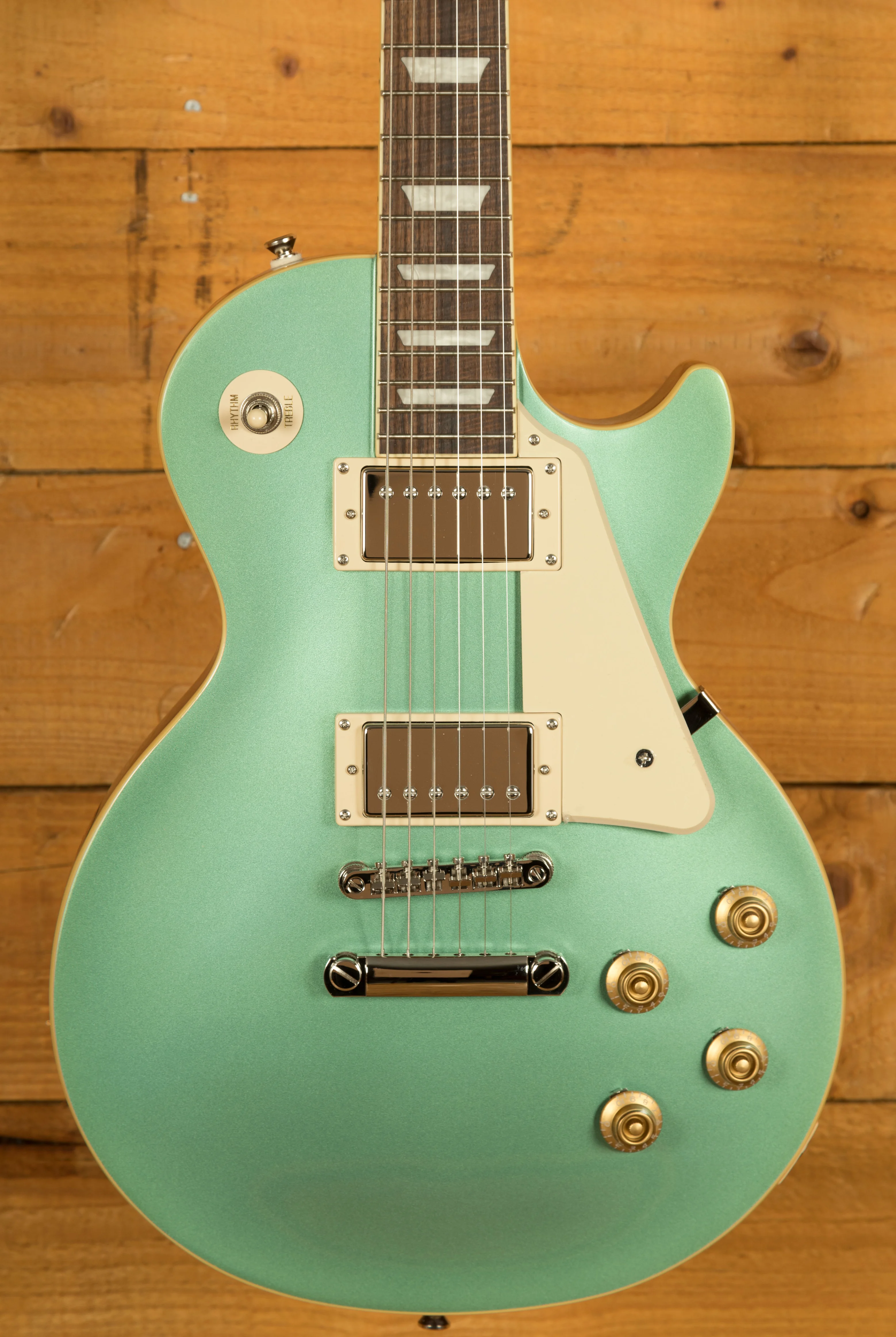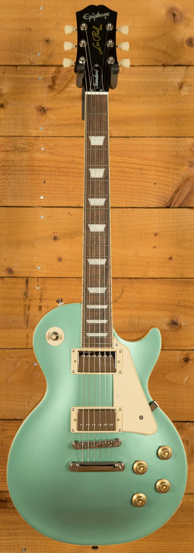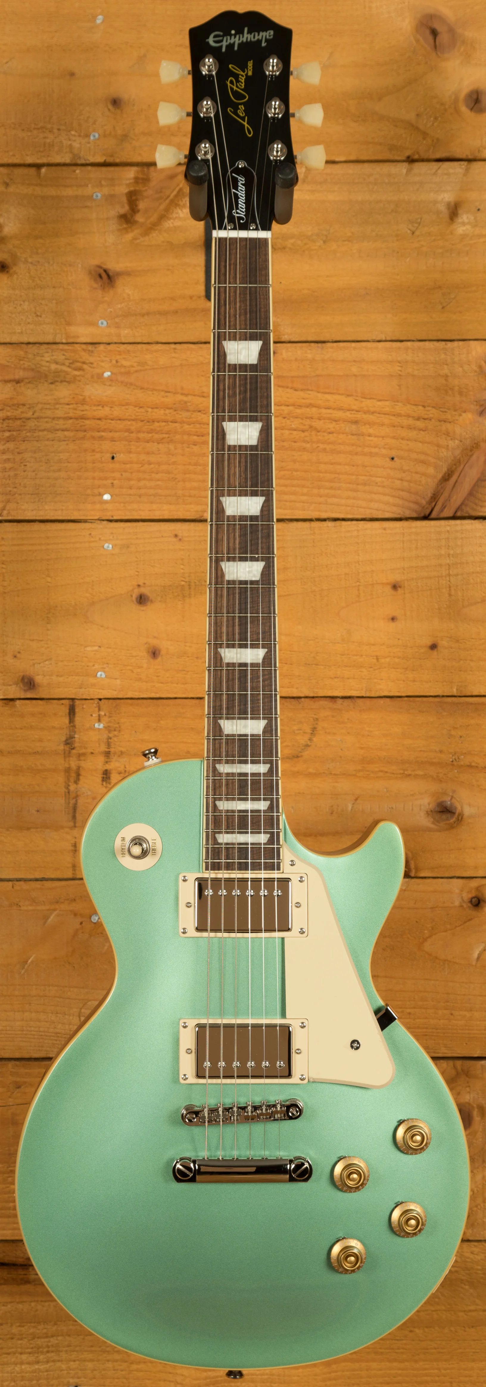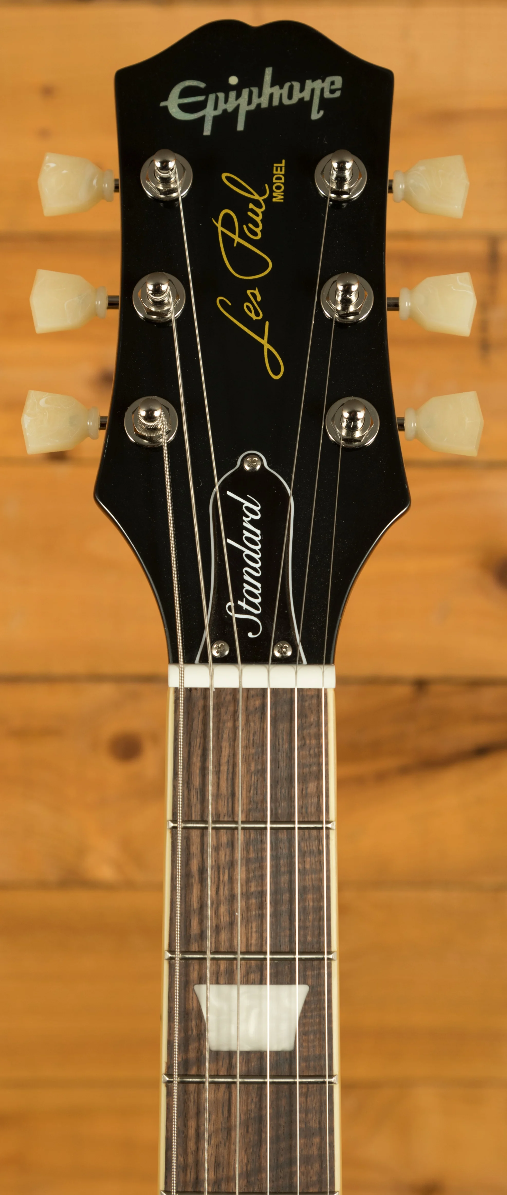 For pickups, the Les Paul Standard 50s is equipped with a ProBucker 1 in the neck position and a ProBucker 2 in the bridge, delivering a versatile range of vintage-inspired tones. These pickups are complemented by CTS potentiometers, allowing for precise control over your volume and tone settings. The guitar's hardware includes a LockTone ABR Tune-o-Matic bridge with a StopTail for solid intonation and sustain, and Epiphone Vintage Deluxe tuning machines for reliable and accurate tuning.