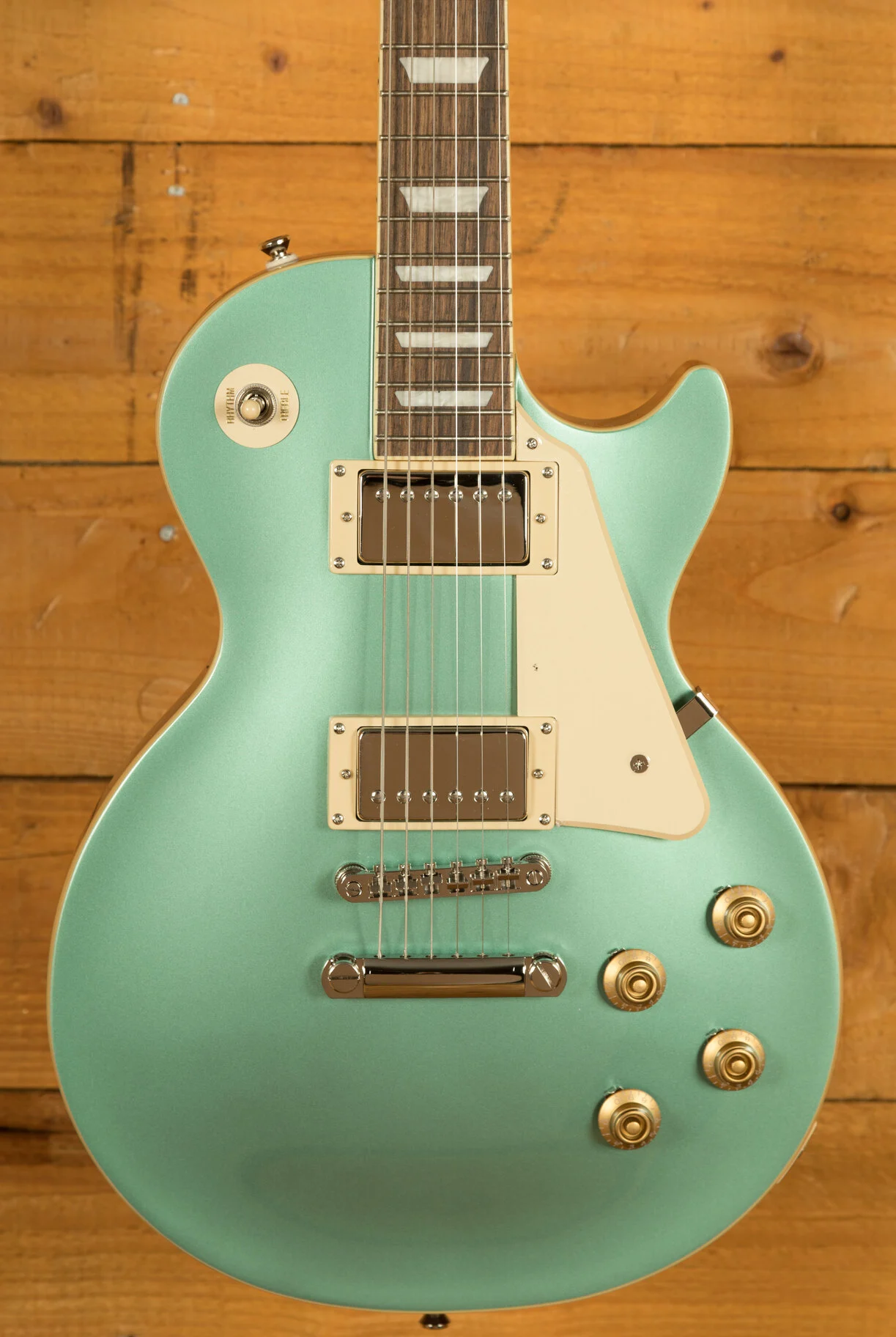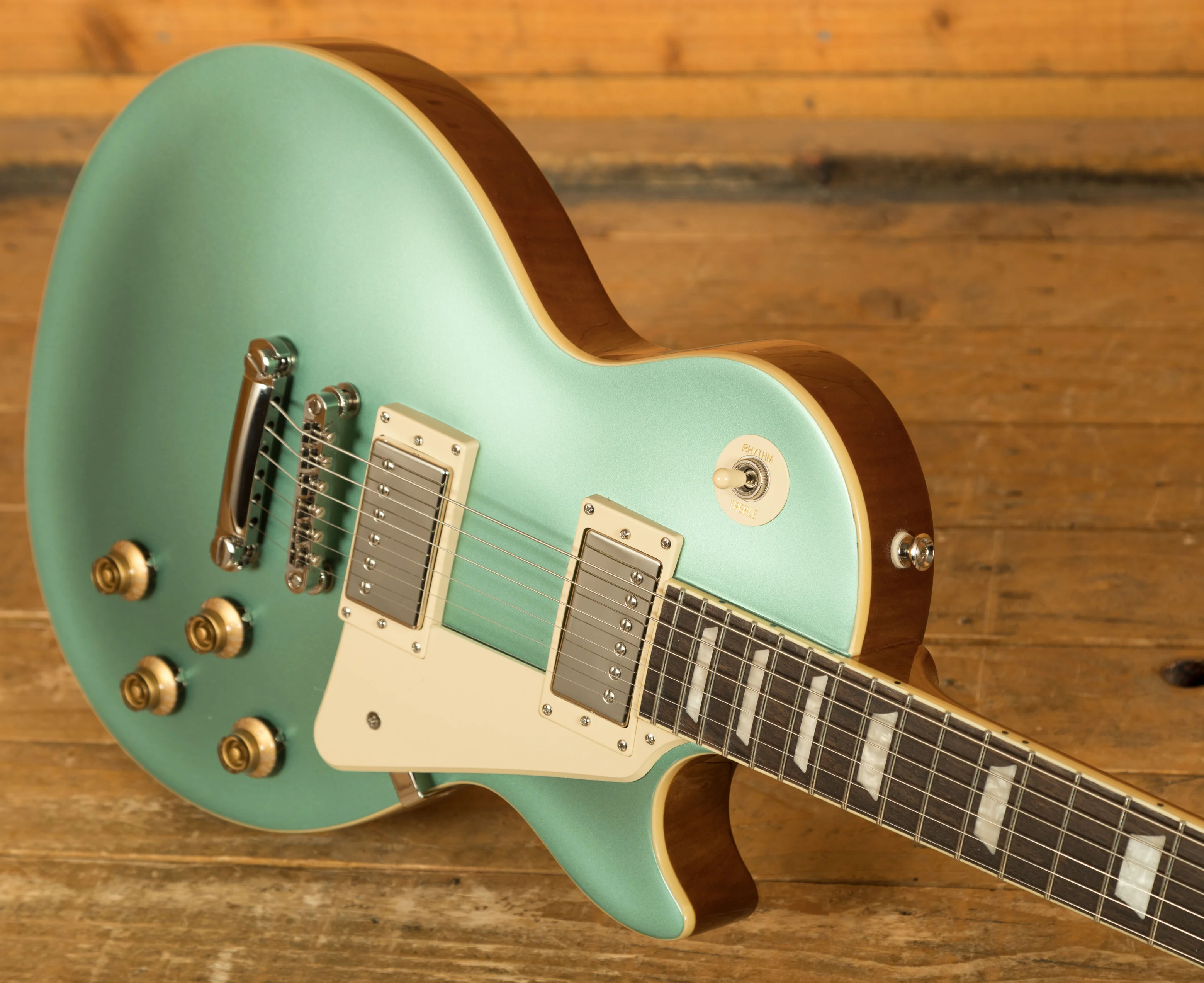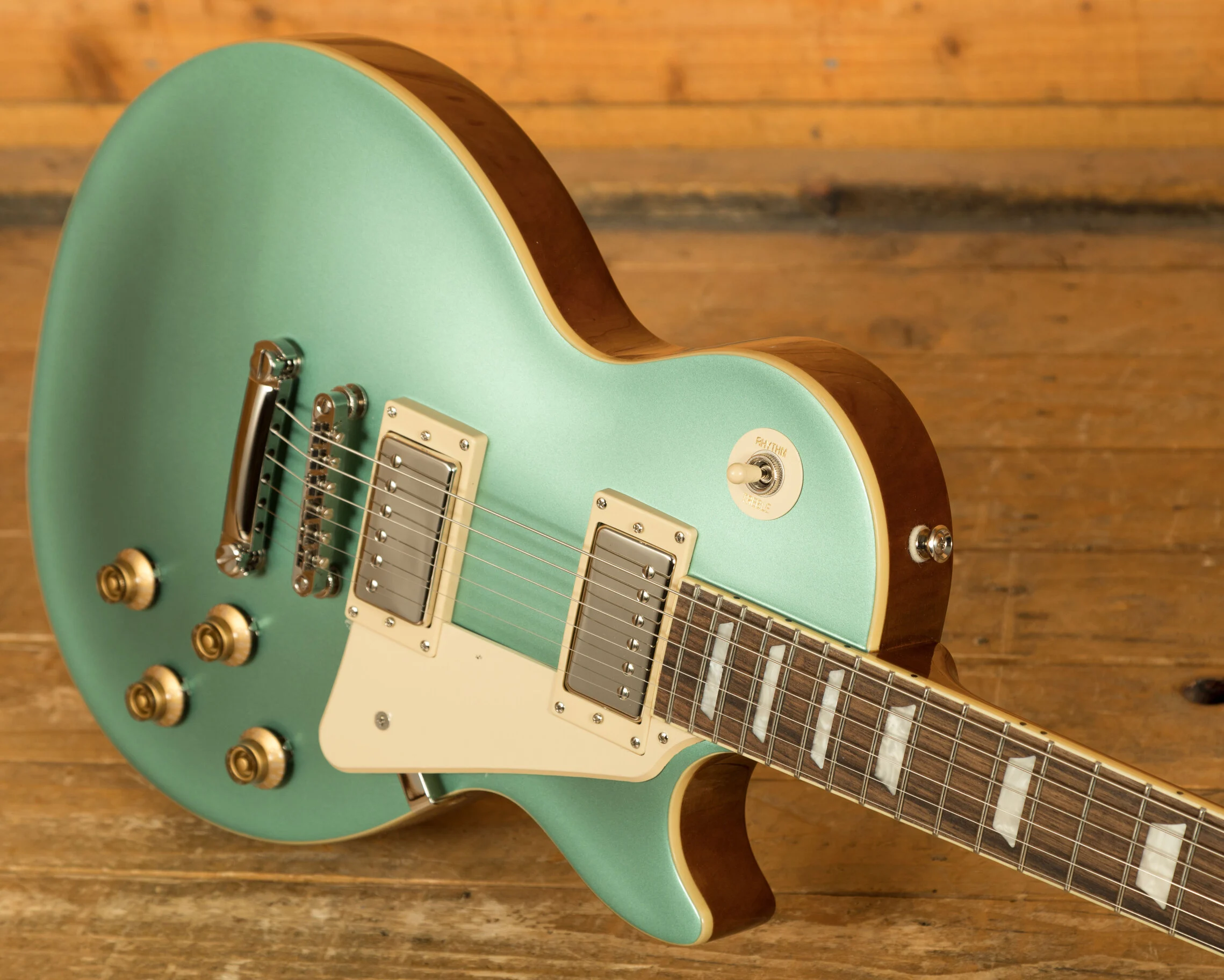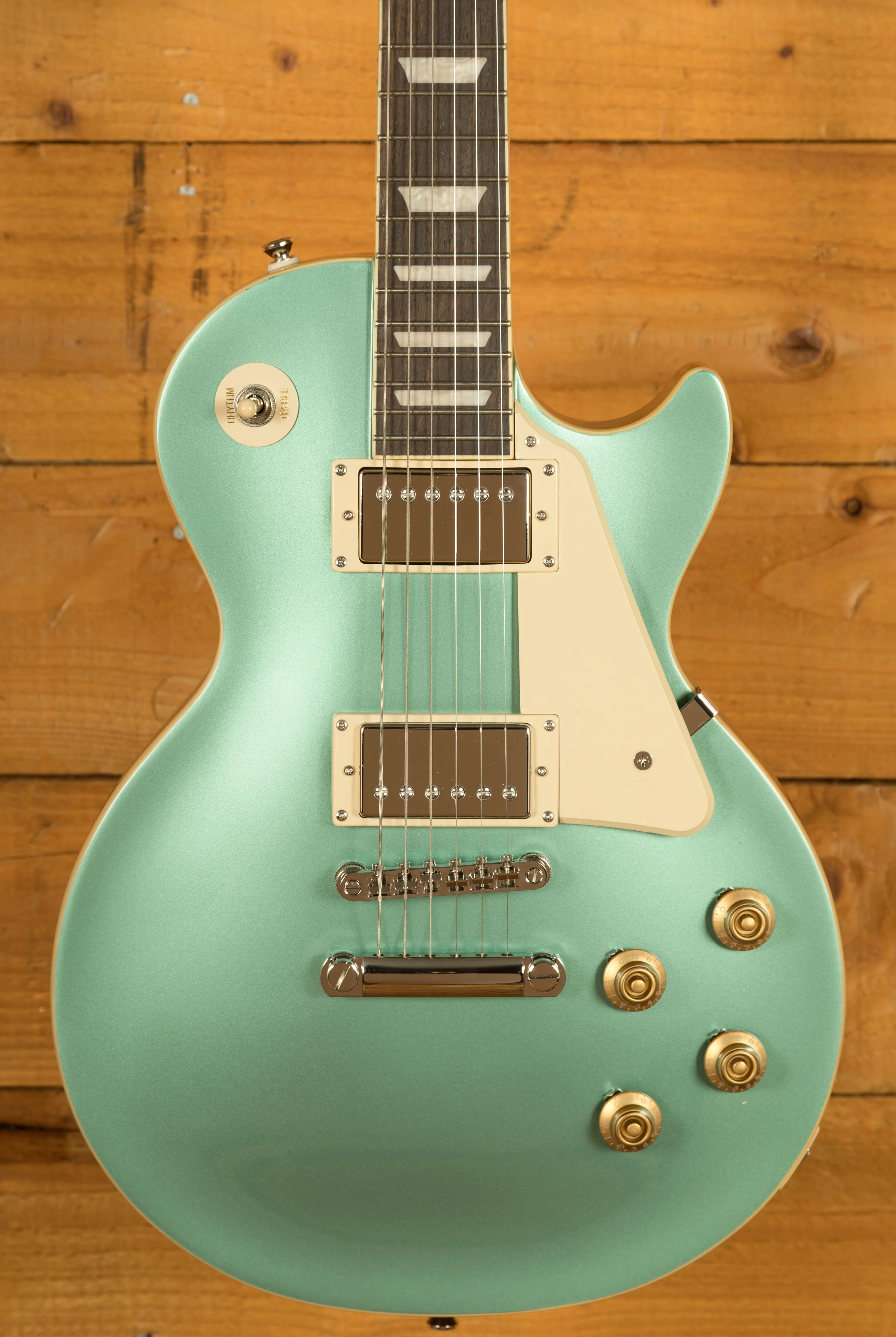 For pickups, the Les Paul Standard 50s is equipped with a ProBucker 1 in the neck position and a ProBucker 2 in the bridge, delivering a versatile range of vintage-inspired tones. These pickups are complemented by CTS potentiometers, allowing for precise control over your volume and tone settings. The guitar's hardware includes a LockTone ABR Tune-o-Matic bridge with a StopTail for solid intonation and sustain, and Epiphone Vintage Deluxe tuning machines for reliable and accurate tuning.