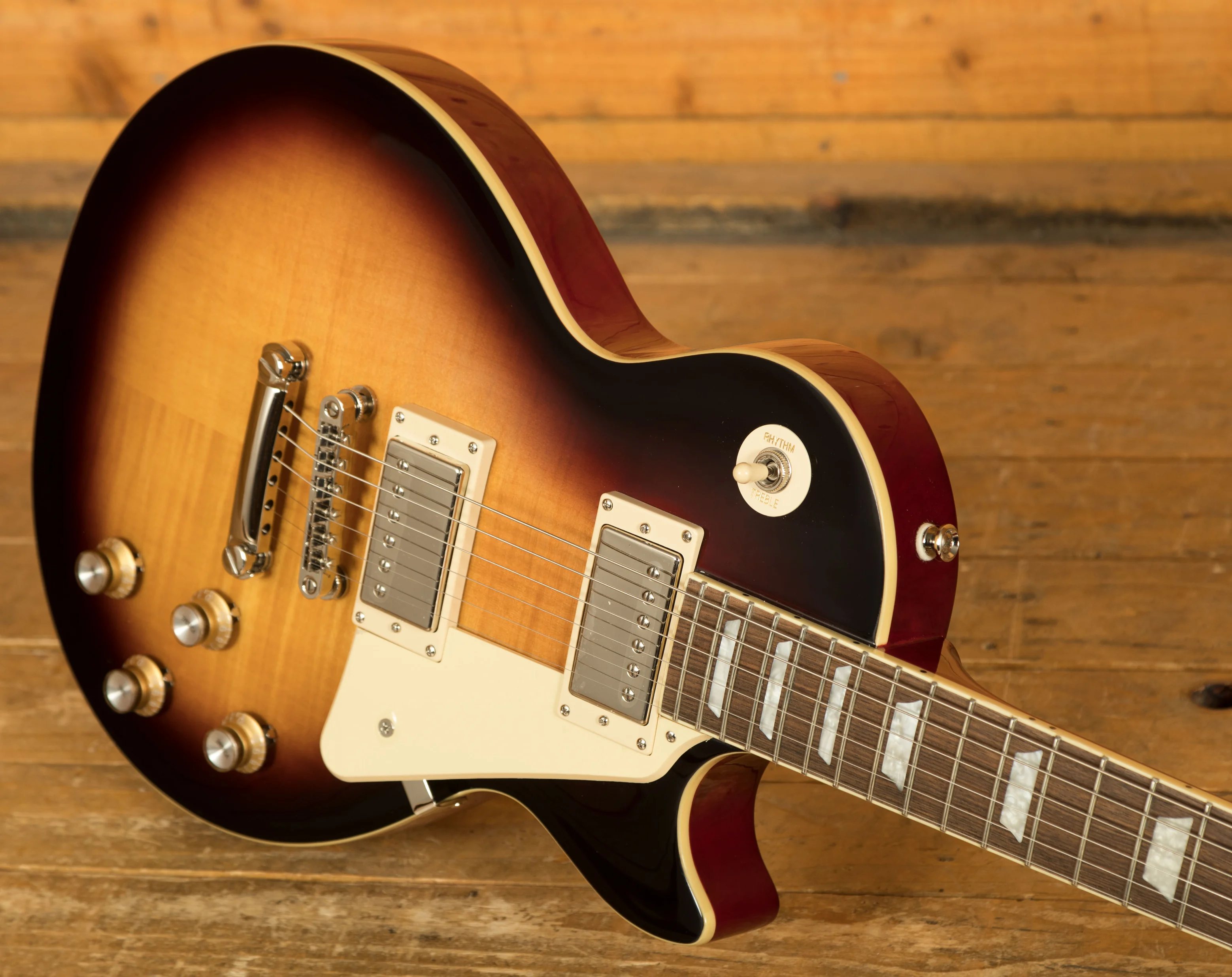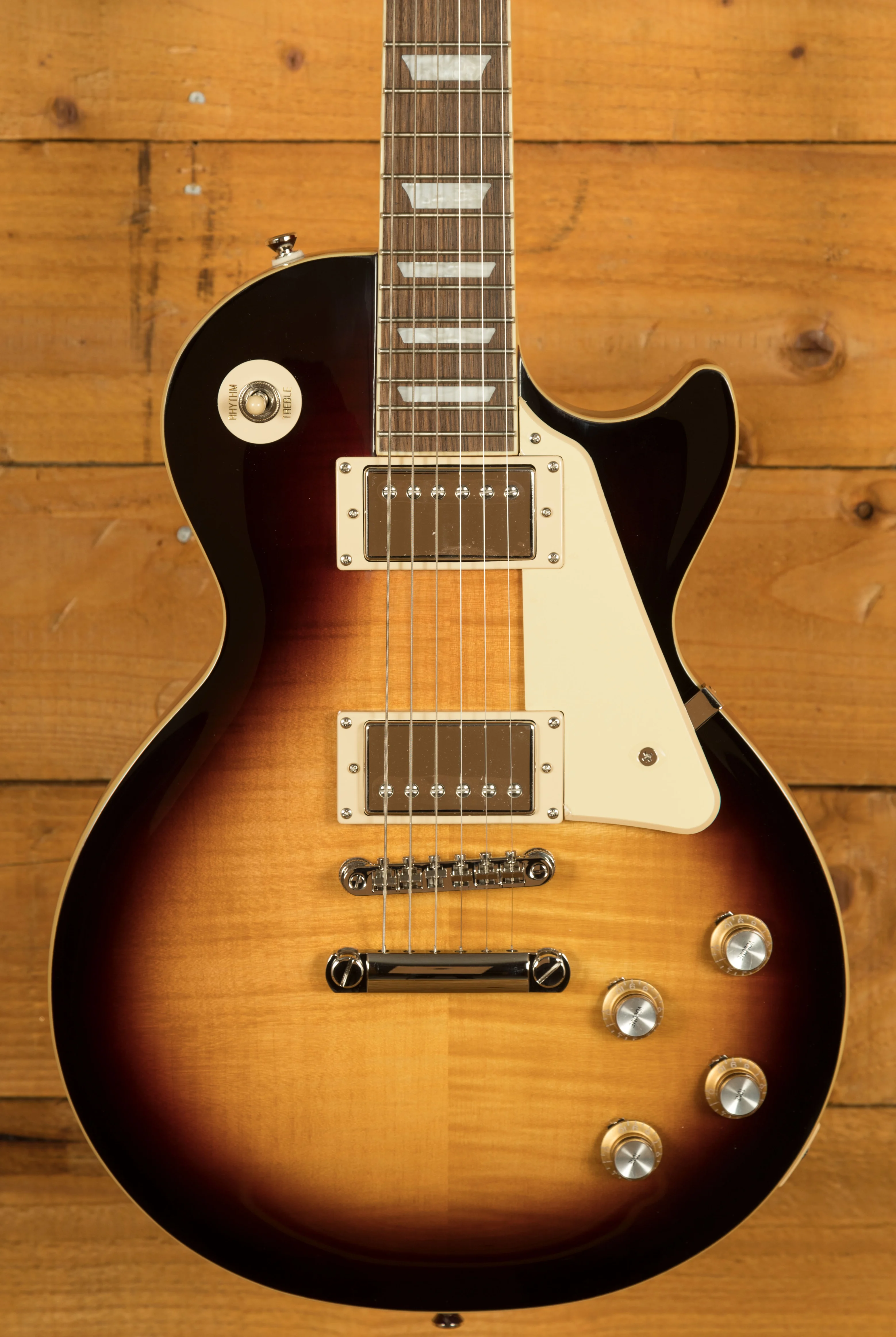 For pickups, the Les Paul Standard 60s is equipped with a ProBucker 2 in the neck position and a ProBucker 3 in the bridge, delivering a versatile range of vintage-inspired tones. These pickups are complemented by CTS potentiometers, allowing for precise control over your volume and tone settings. The guitar's hardware includes a LockTone ABR Tune-o-Matic bridge with a StopTail for solid intonation and sustain, and Grover Rotomatic 18:1 tuning machines for reliable and accurate tuning.