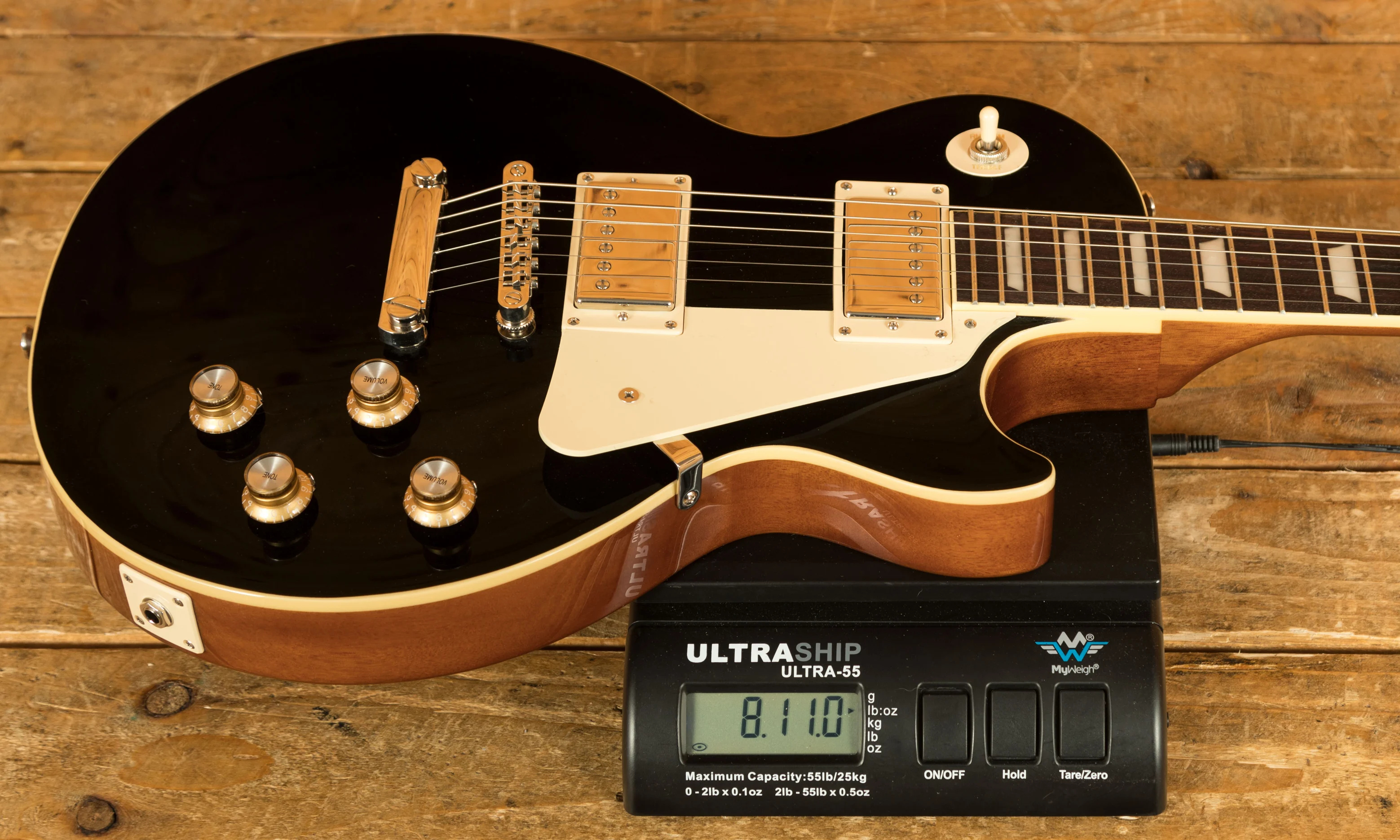 This guitar features the classic Les Paul body design, which is crafted from Mahogany and Maple. This is one of the most legendary tone wood pairings of all time thanks to it resonance and tonal properties. The Mahogany neck has a SlimTaper 60s C which feels really similar to the neck shape you’d find on an original Gibson Les Paul crafted in the early 60s. The Rosewood fingerboard is dark in colour and features a 43mm nut width, 24.75” scale length, 22 frets, and pearloid trapezoid inlays.
