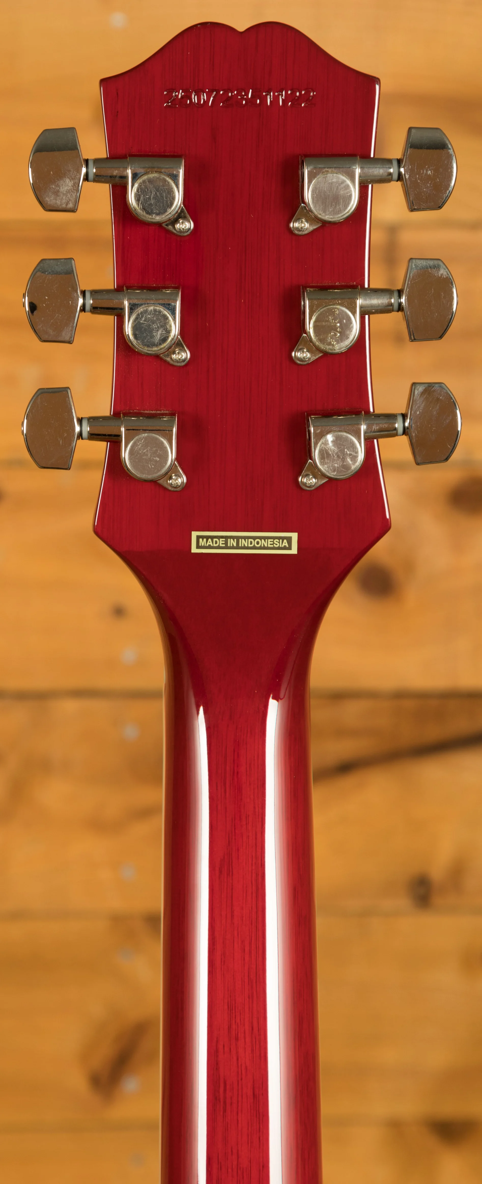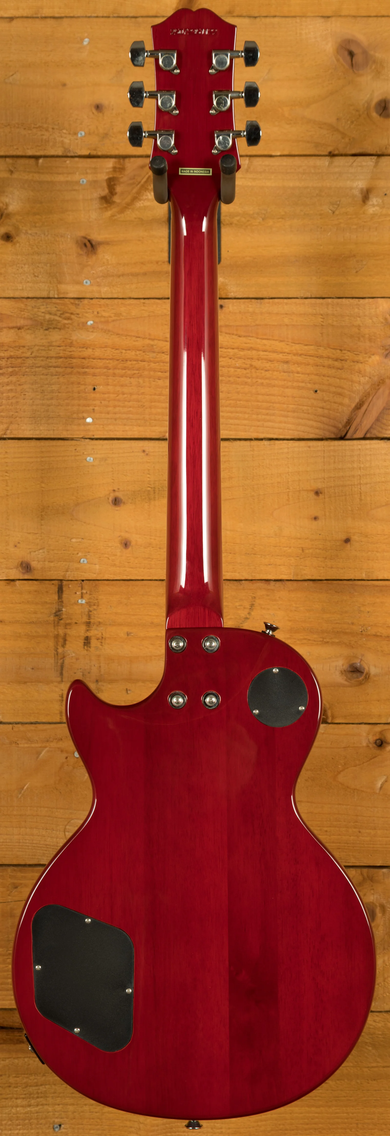 The Tribute Plus range adds a touch of flair to Epiphone's entry level guitars with the addition of a flame maple veneer top and vibrant colours. If you're a new player or on a lower budget then these are the perfect guitars for anyone who wants a classy mix of vintage and modern aesthetics. With a carved top mahogany body and bolt-on mahogany neck, you get that same rich, resonant tonewood pairing that Gibson has been using since the 50s. The neck is easy to play on thanks to the 60s SlimTaper Rounded "C" profile and tapered heel joint. The bound laurel fingerboard features a 12" radius with 22 medium jumbo frets for easier vibrato and legato - this Les Paul truly has a focus on ease of playing.