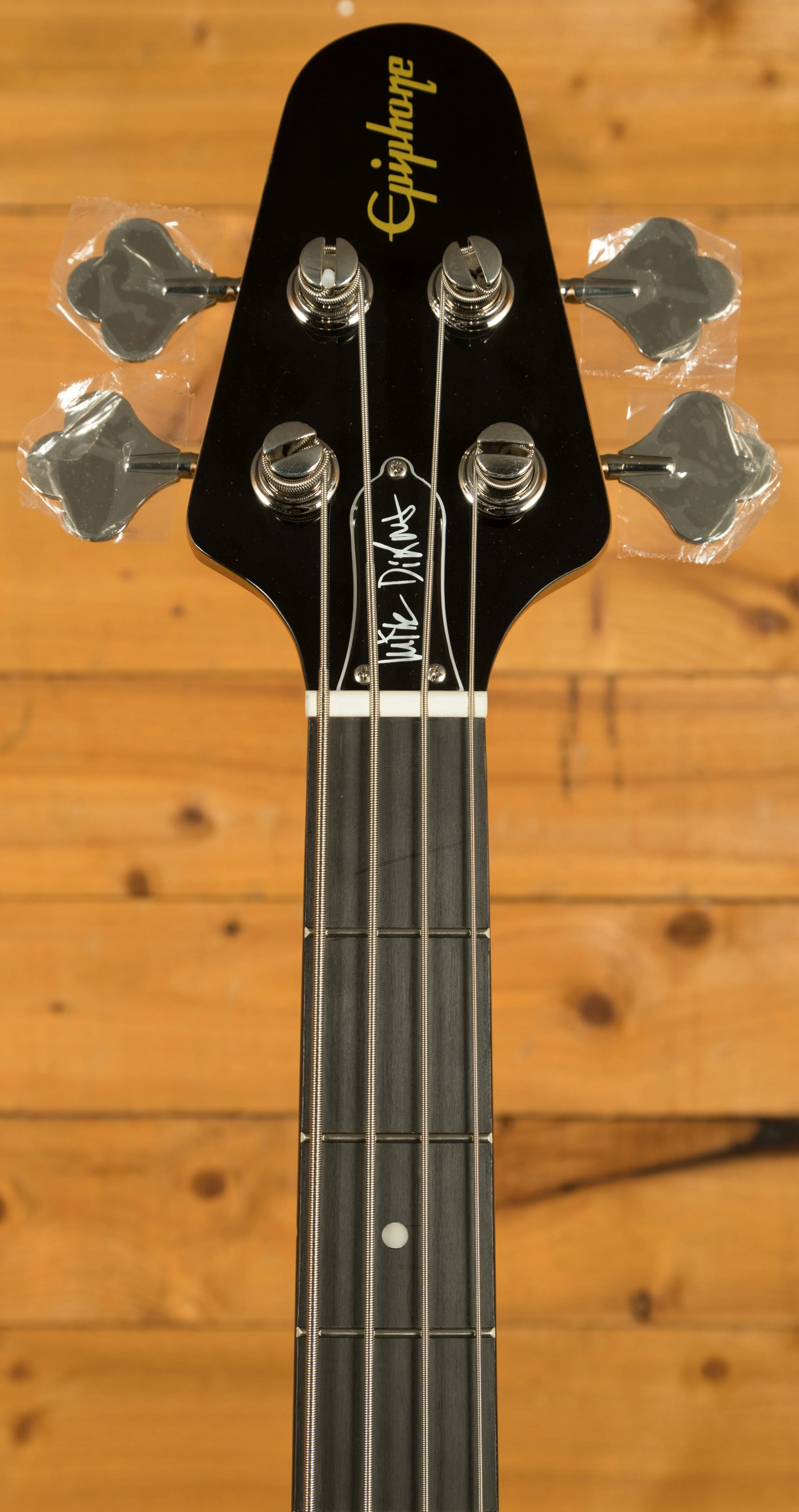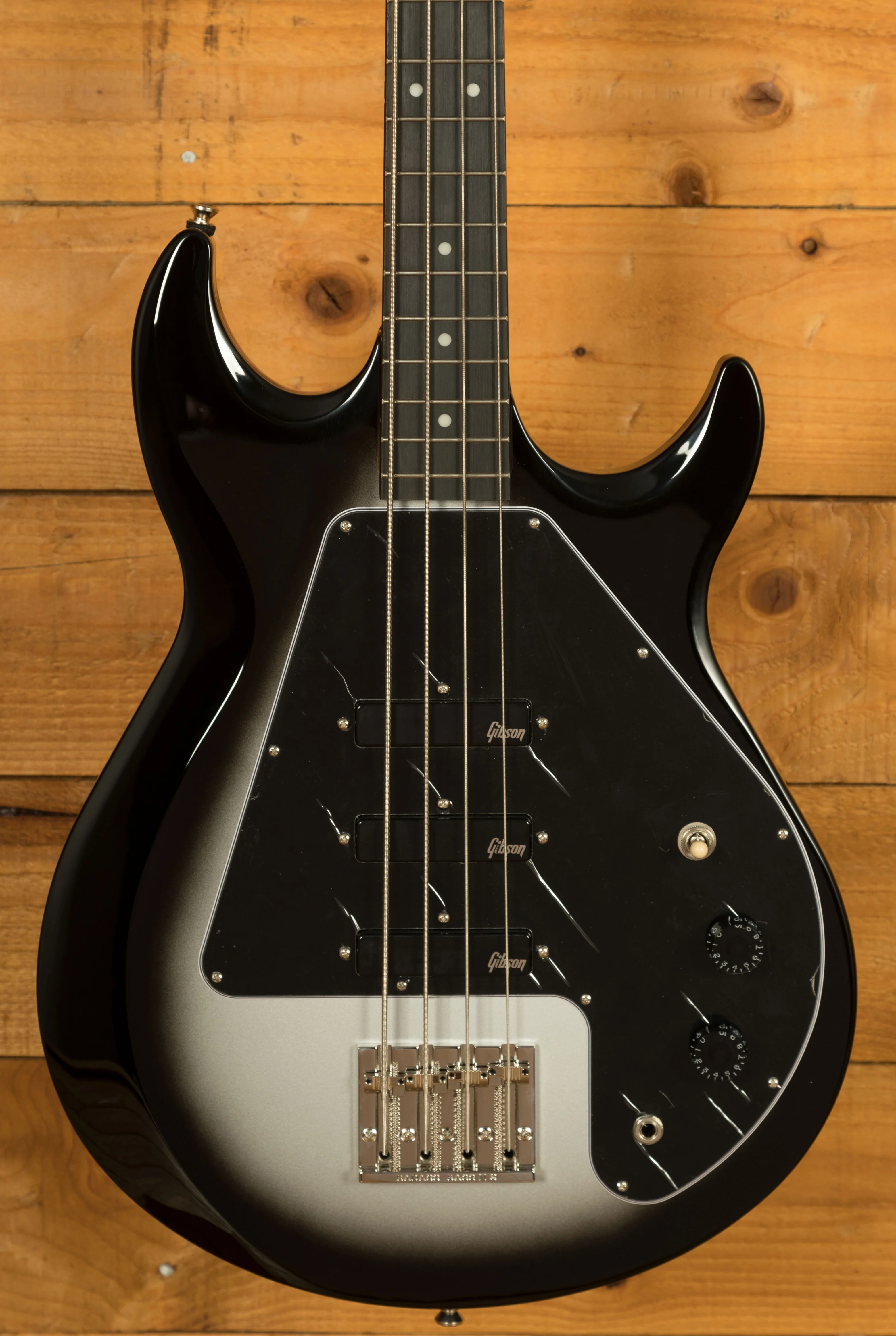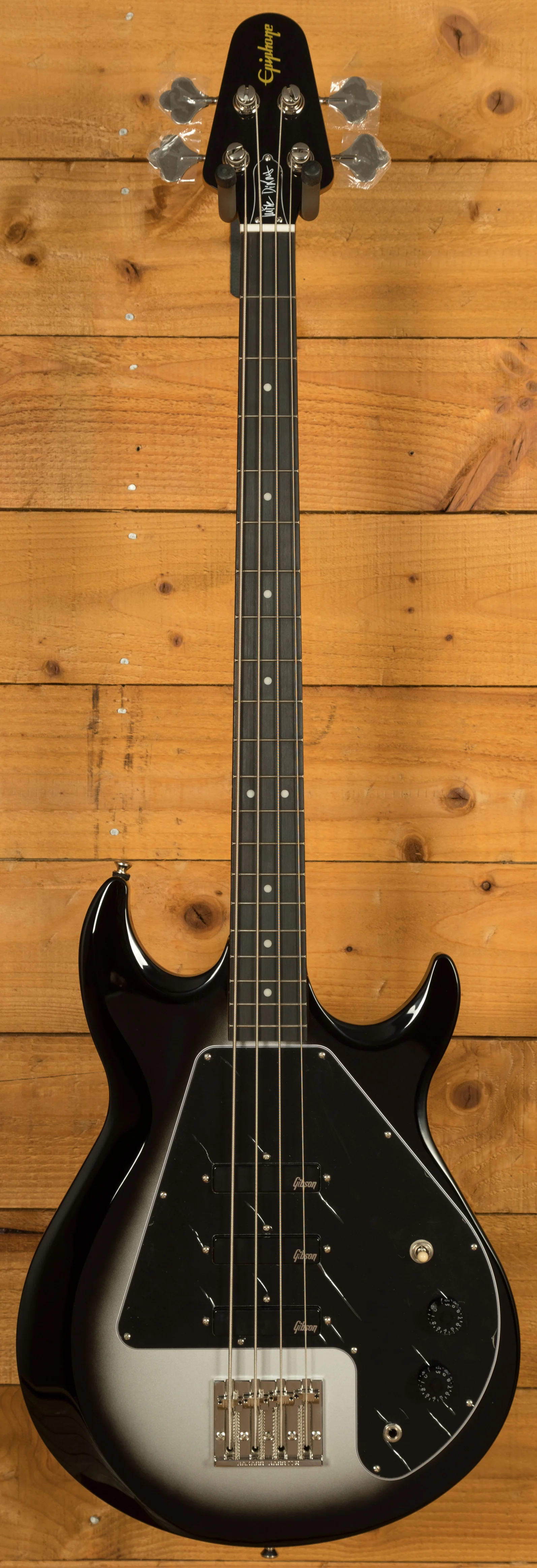 The Epiphone Mike Dirnt Grabber G-3 features a double cutaway Maple body, which is one of the most unique and important part of the Grabber. The Maple body really helps this bass cut through both live, and in a mix. The Silverburst finish looks super slick, its the perfect choice for a bass like this.