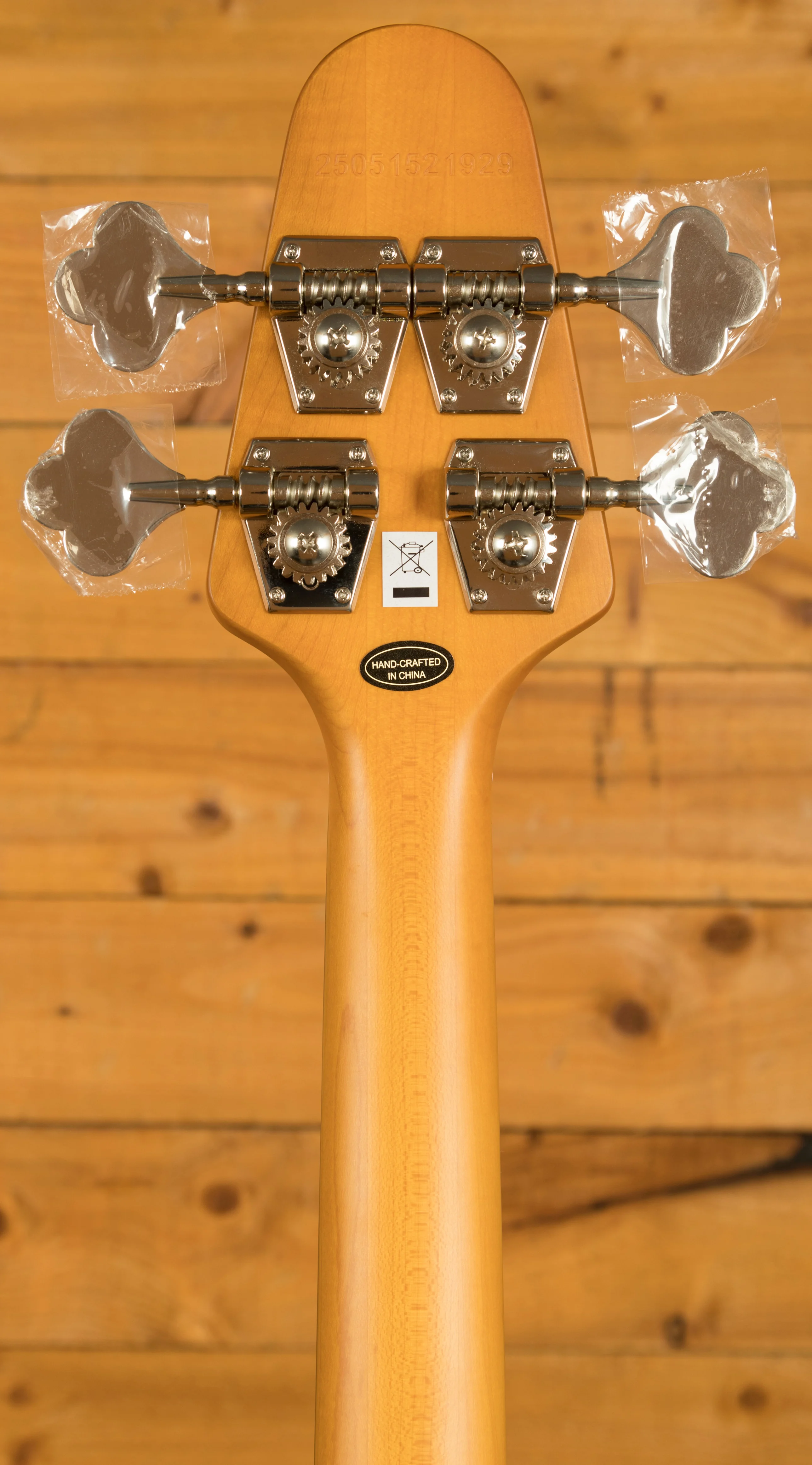 This grabber features a 3-piece Maple neck which has a really comfortable C shaped neck profile. The Ebony fingerboard features 20 frets, a 34 scale length, a 41mm nut width, and traditional dot inlays.