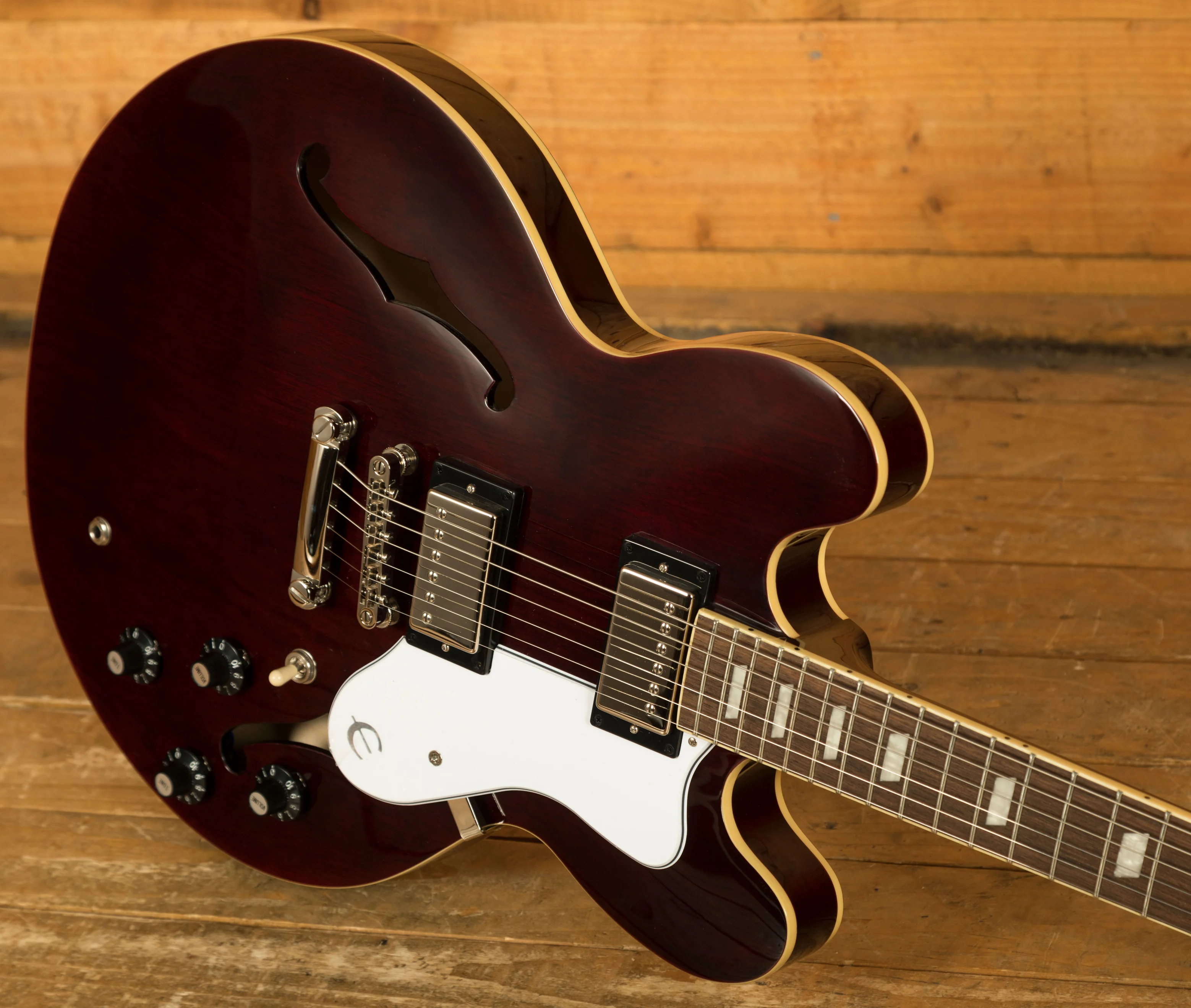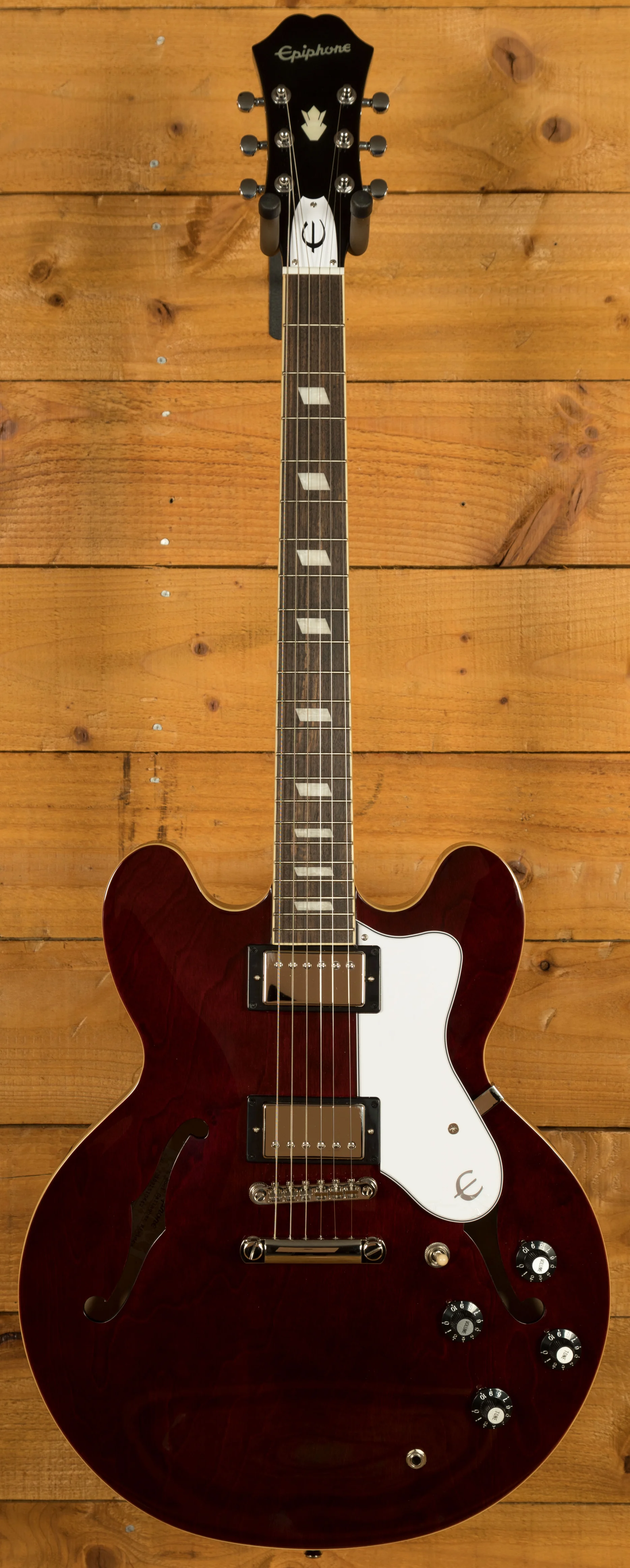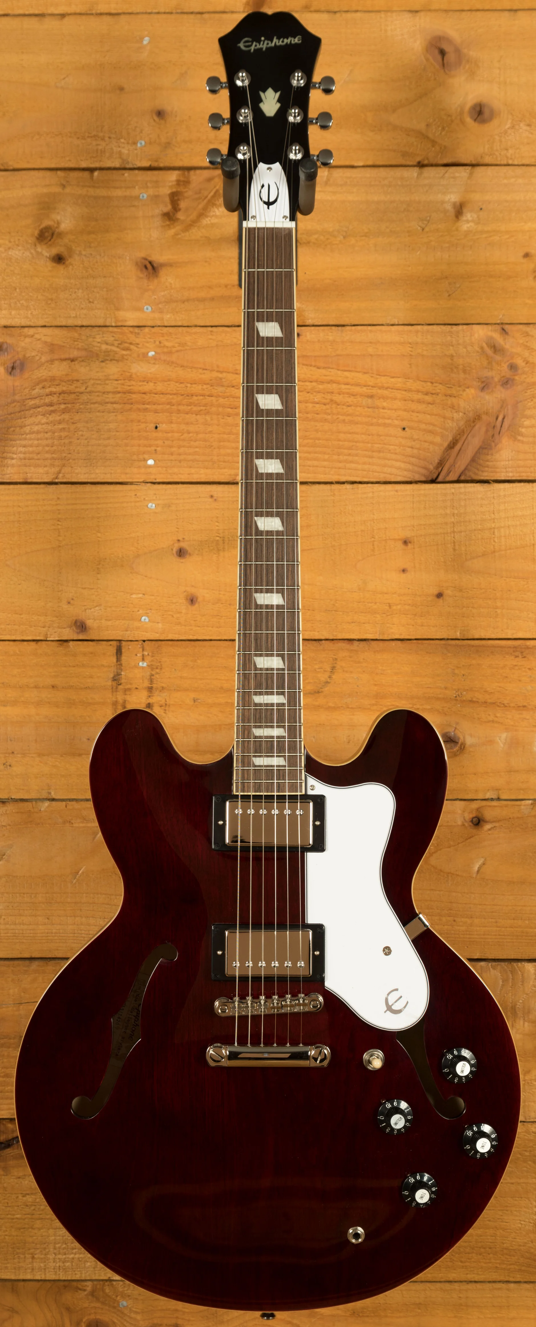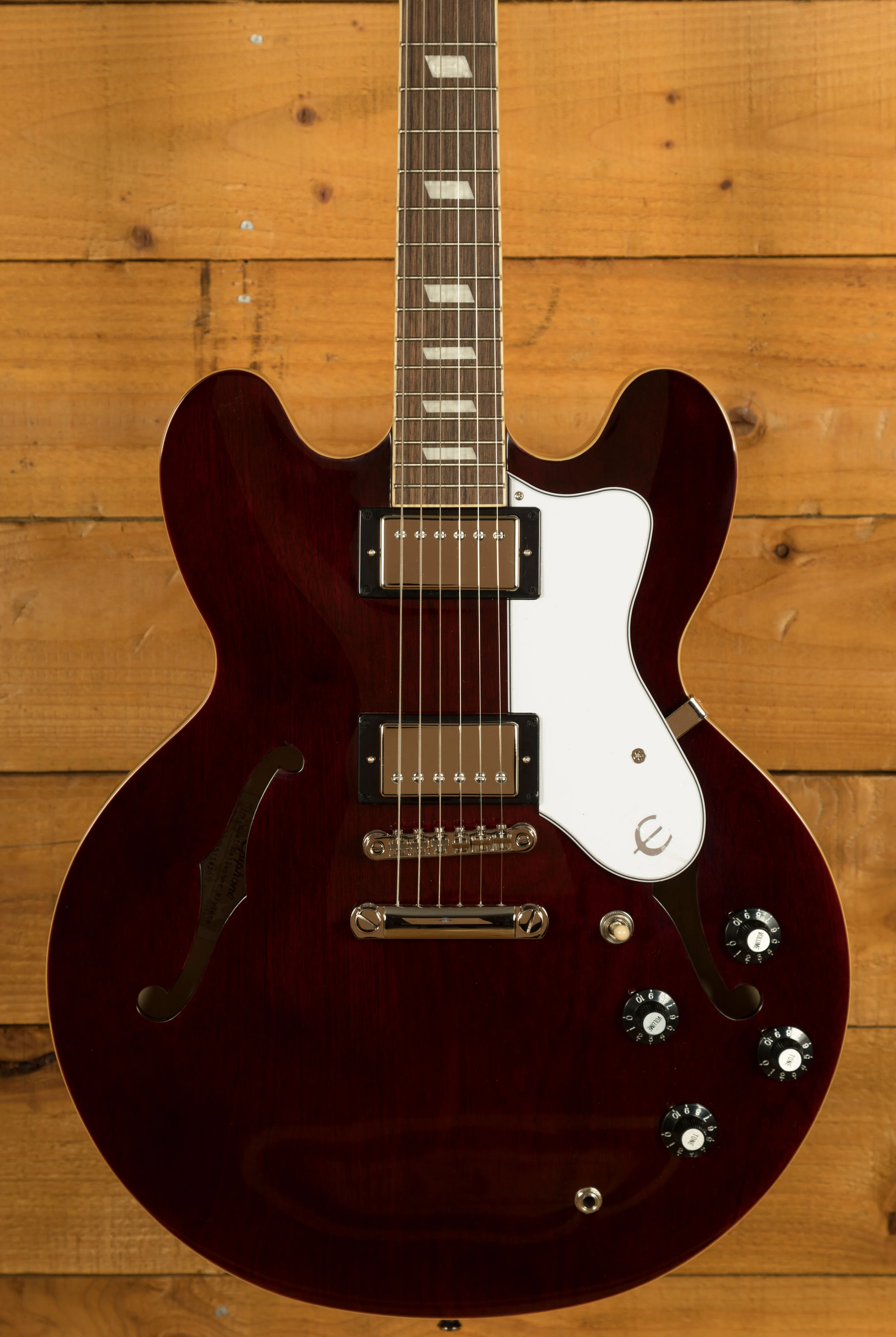 Crafted with meticulous attention to detail, the Epiphone Noel Gallagher Riviera captures the essence of those early '80s Epiphone Rivieras that captivated audiences around the world. Dressed in a stunning Dark Wine Red finish, this guitar exudes a timeless elegance that commands attention. The color and finish are artfully designed to closely match the original models from that era, evoking a sense of nostalgia and authenticity.