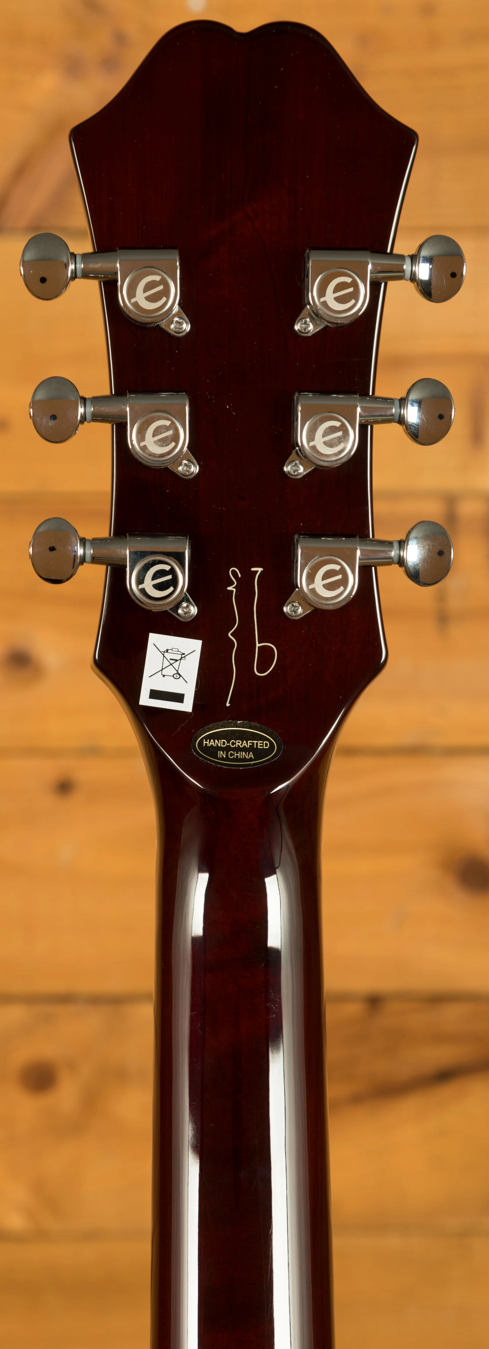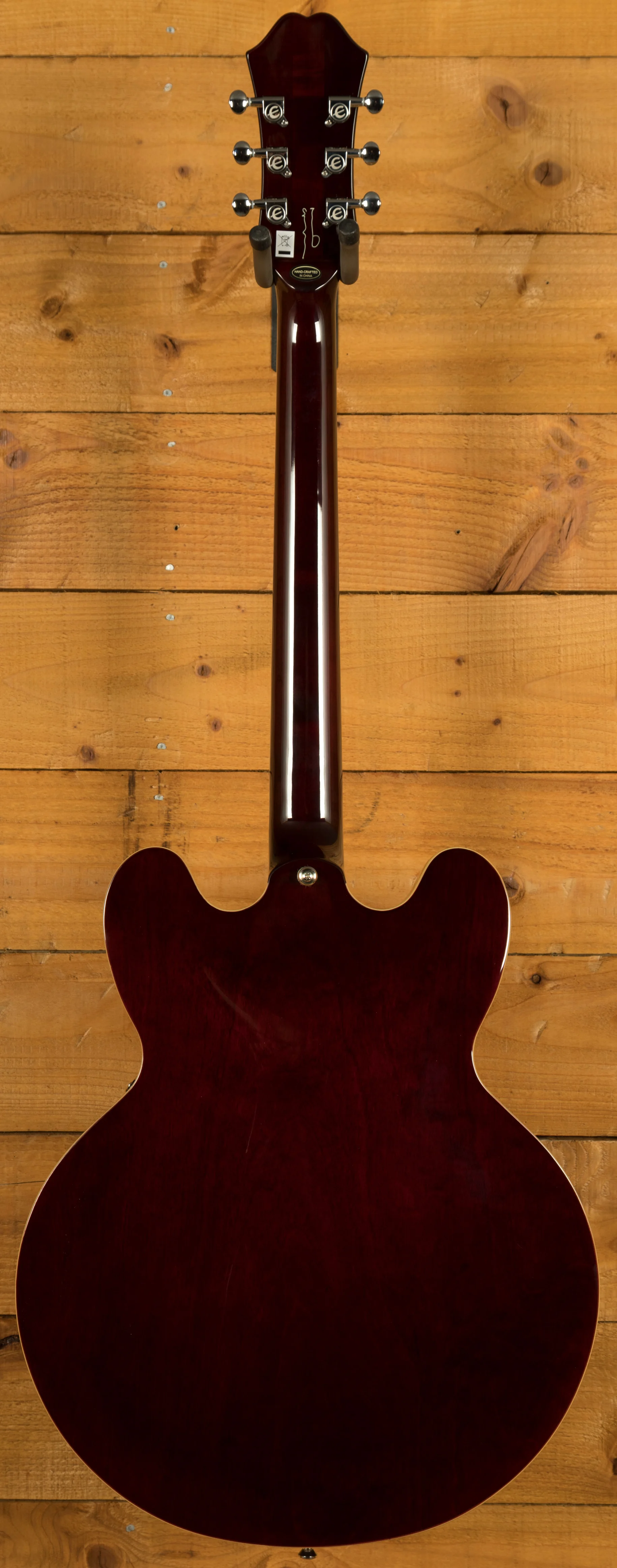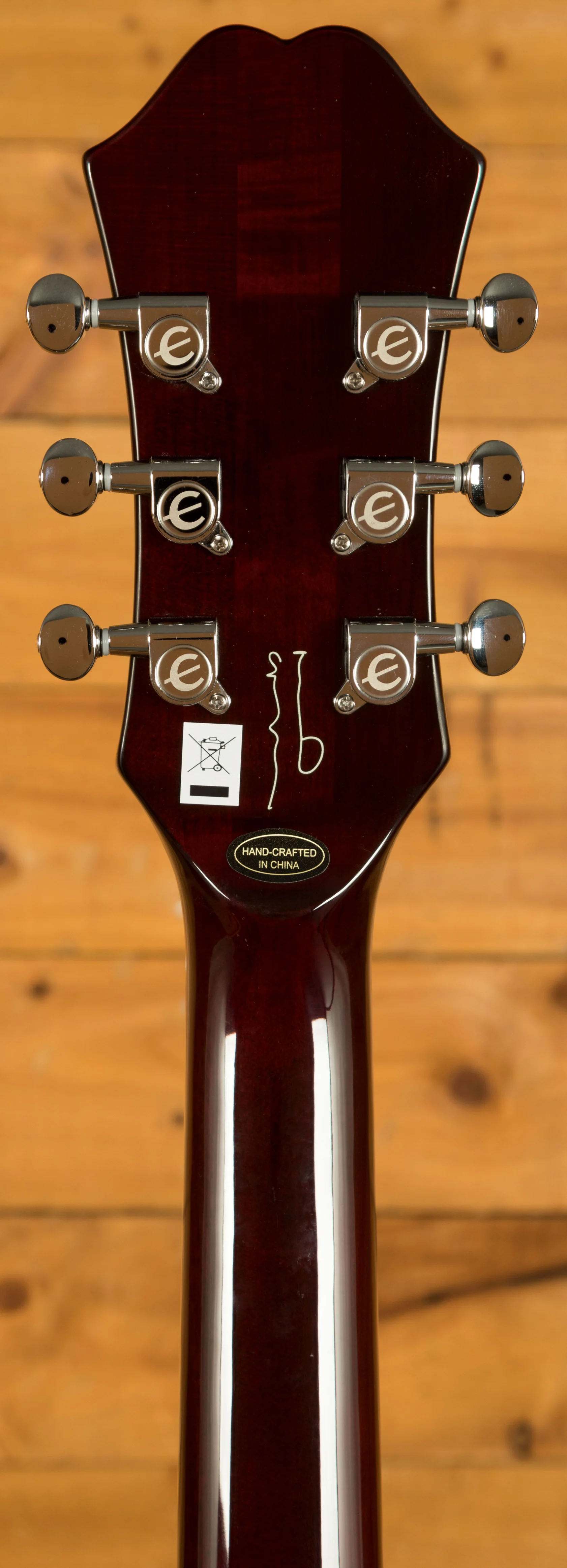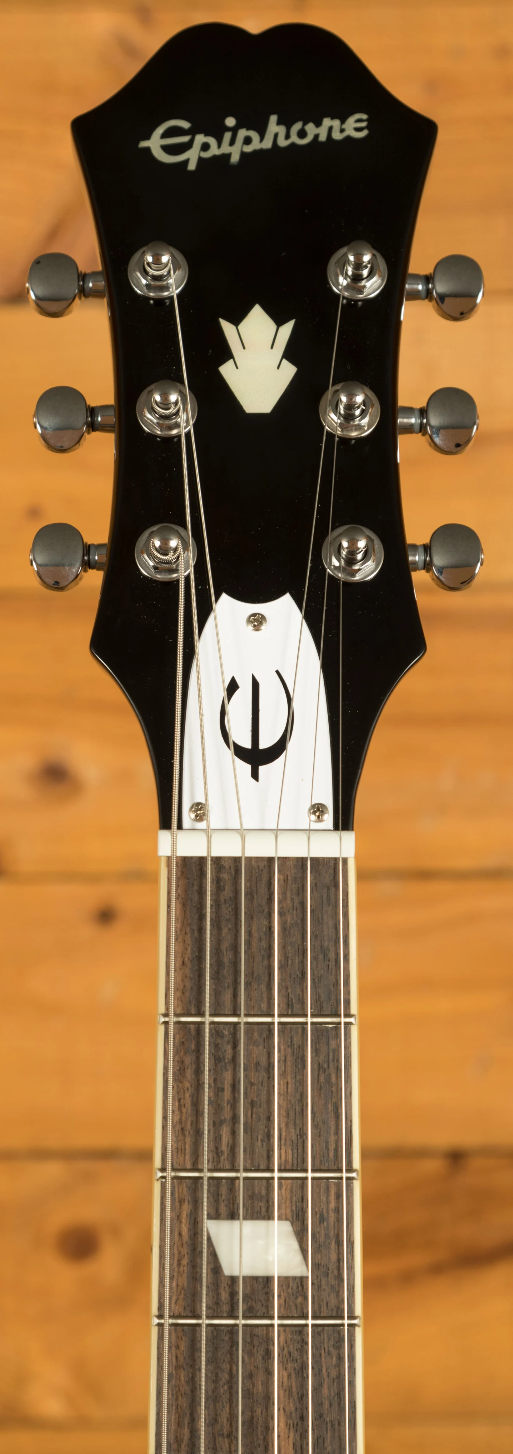Attention to detail is evident throughout this instrument. The historically accurate "E" appointments on the pickguard and truss rod cover, combined with a brown sound hole label, lend an authentic vintage vibe to the guitar. To top it off, the back of the headstock bears a replica artist signature, a testament to the partnership between Epiphone and Noel Gallagher.