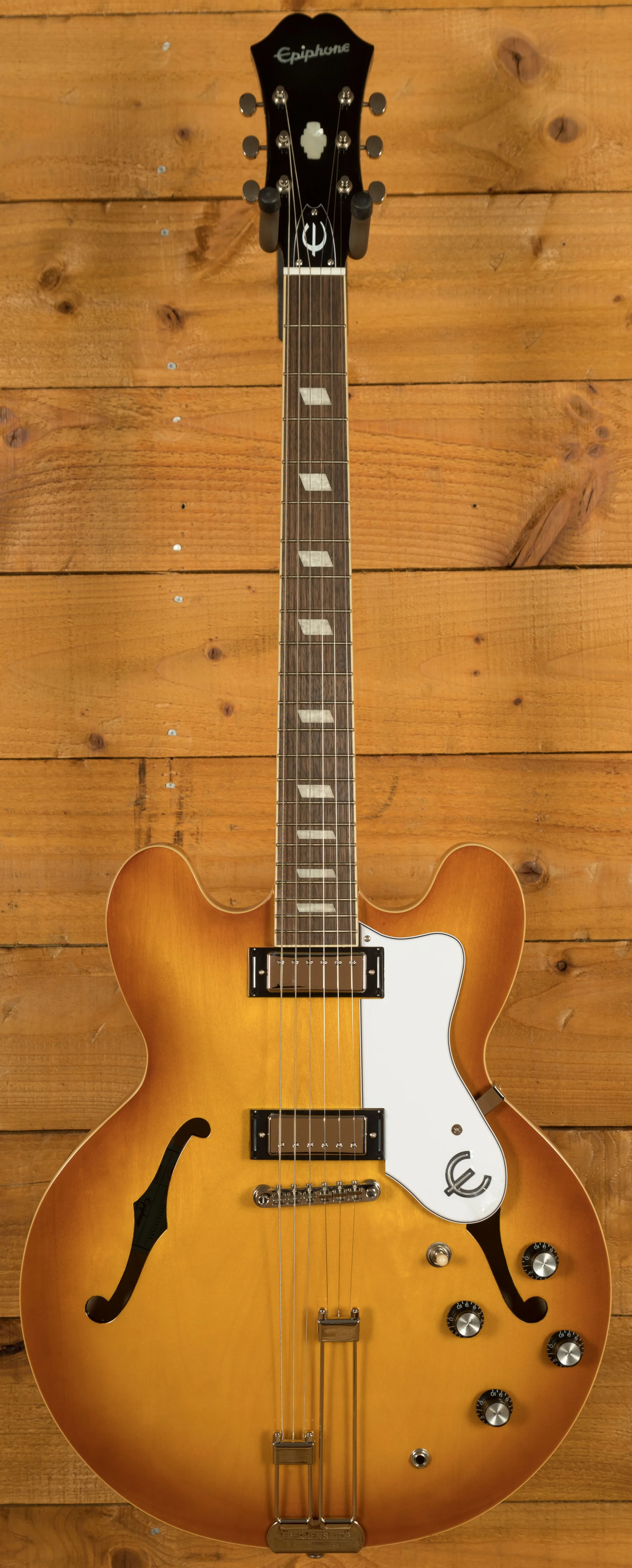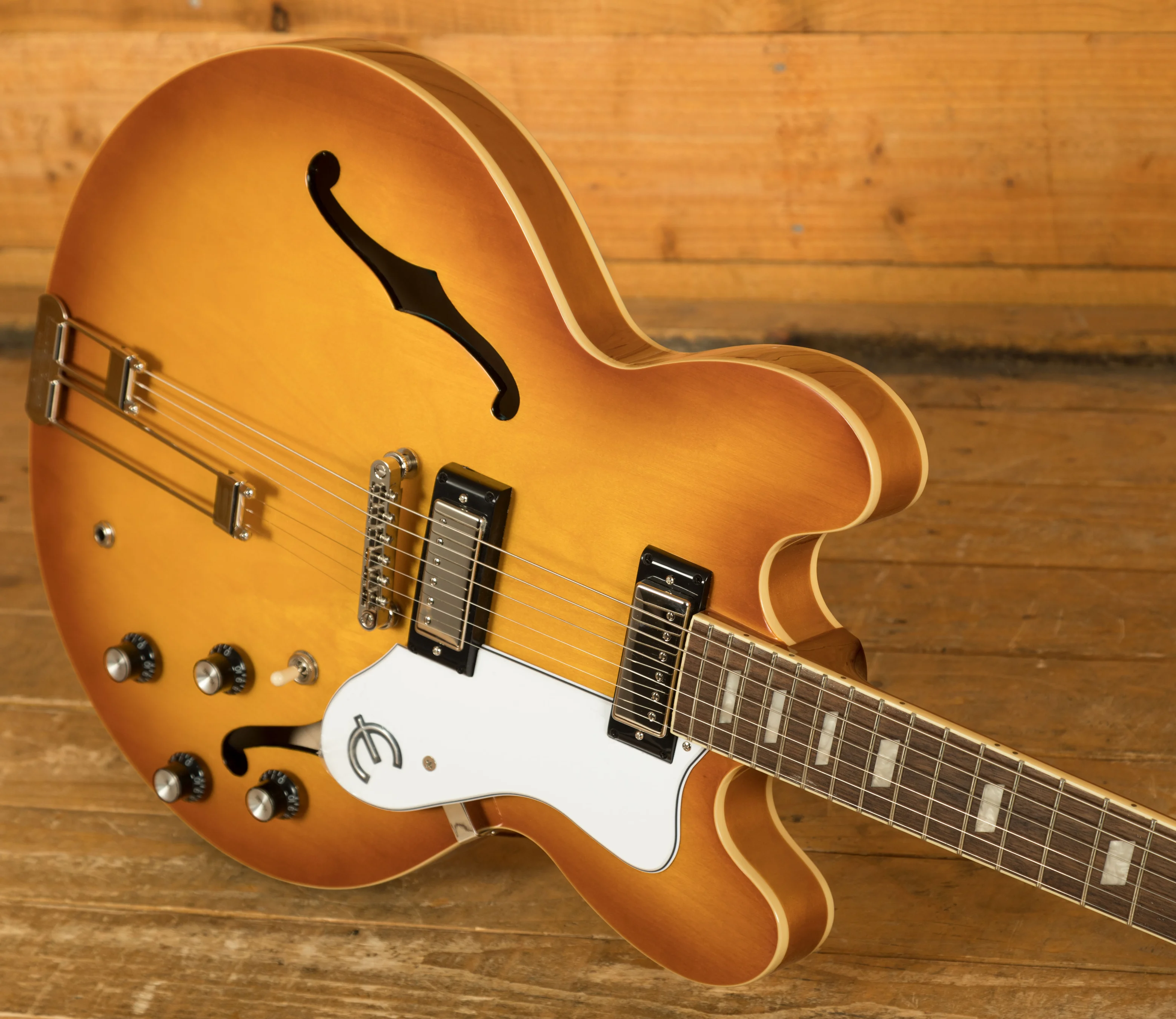 Introducing the Epiphone Riviera, a legendary masterpiece that has stood the test of time and captivated musicians for decades. Originally unveiled in the early '60s, this iconic guitar has now returned, revitalised and ready to redefine your musical journey. The Epiphone Riviera's semi-hollow design has garnered immense praise from musicians across genres and generations, establishing itself as a staple in the world of music. Renowned artists such as Robben Ford and Otis Rush, masters of the blues, as well as Lou Reed of the influential Velvet Underground and the talented Nick Valensi of The Strokes, have all discovered the magic that lies within the Riviera's legendary ES body shape, harnessing its unparalleled versatility and sonic capabilities.