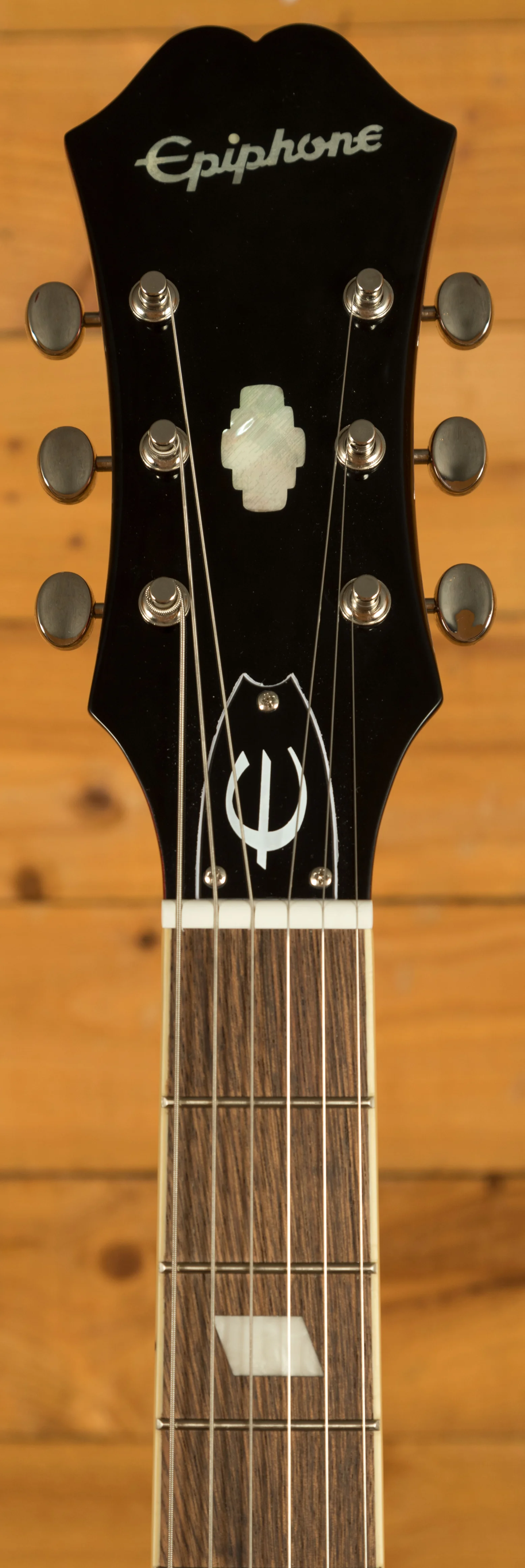 Introducing the Epiphone Riviera, a legendary masterpiece that has stood the test of time and captivated musicians for decades. Originally unveiled in the early '60s, this iconic guitar has now returned, revitalised and ready to redefine your musical journey. The Epiphone Riviera's semi-hollow design has garnered immense praise from musicians across genres and generations, establishing itself as a staple in the world of music. Renowned artists such as Robben Ford and Otis Rush, masters of the blues, as well as Lou Reed of the influential Velvet Underground and the talented Nick Valensi of The Strokes, have all discovered the magic that lies within the Riviera's legendary ES body shape, harnessing its unparalleled versatility and sonic capabilities.