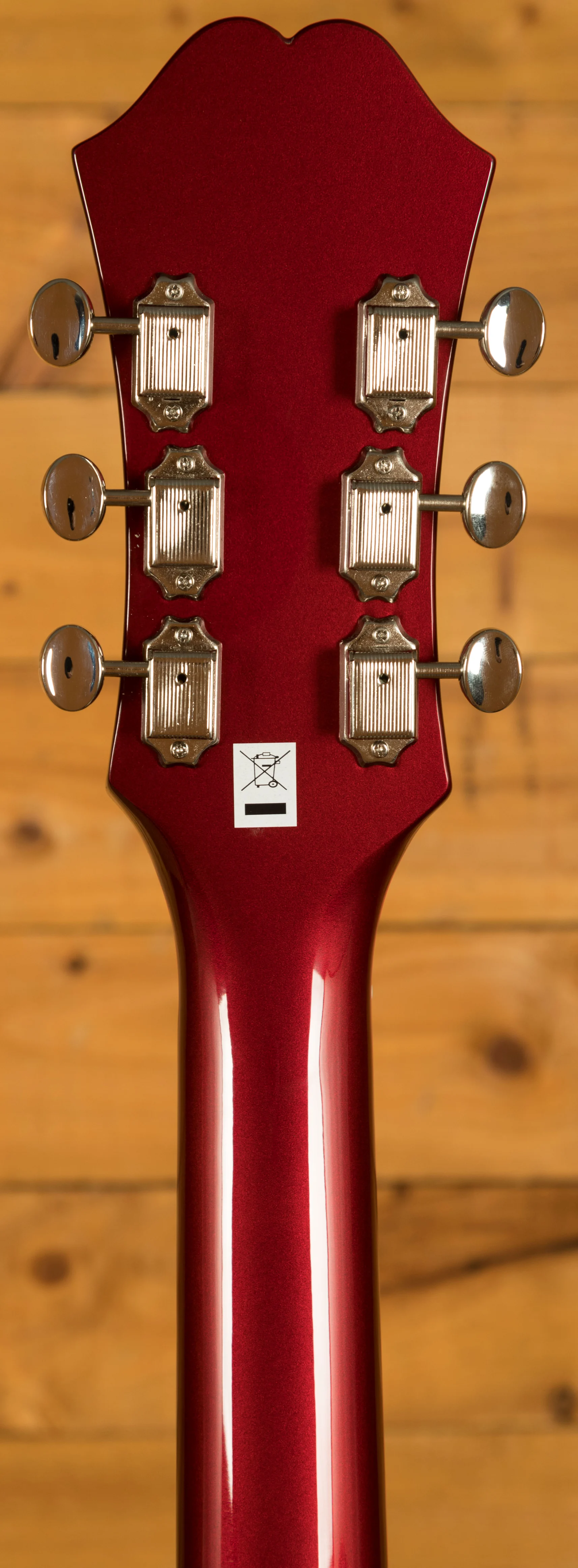 Crafted with meticulous attention to detail, the Epiphone Riviera features a captivating layered maple top, back, and sides, exuding elegance and ensuring superior resonance. Its maple centreblock enhances sustain and eliminates unwanted feedback, granting you complete control over your sound. The instrument proudly dons a stunning 3-layer pickguard adorned with the iconic metal Epiphone "E," serving as a testament to its heritage and craftsmanship. To further elevate its performance, the Riviera is equipped with Epiphone's innovative LockTone Tune-O-Matic adjustable bridge and Frequensator tailpiece, guaranteeing exceptional intonation and optimal string tension.