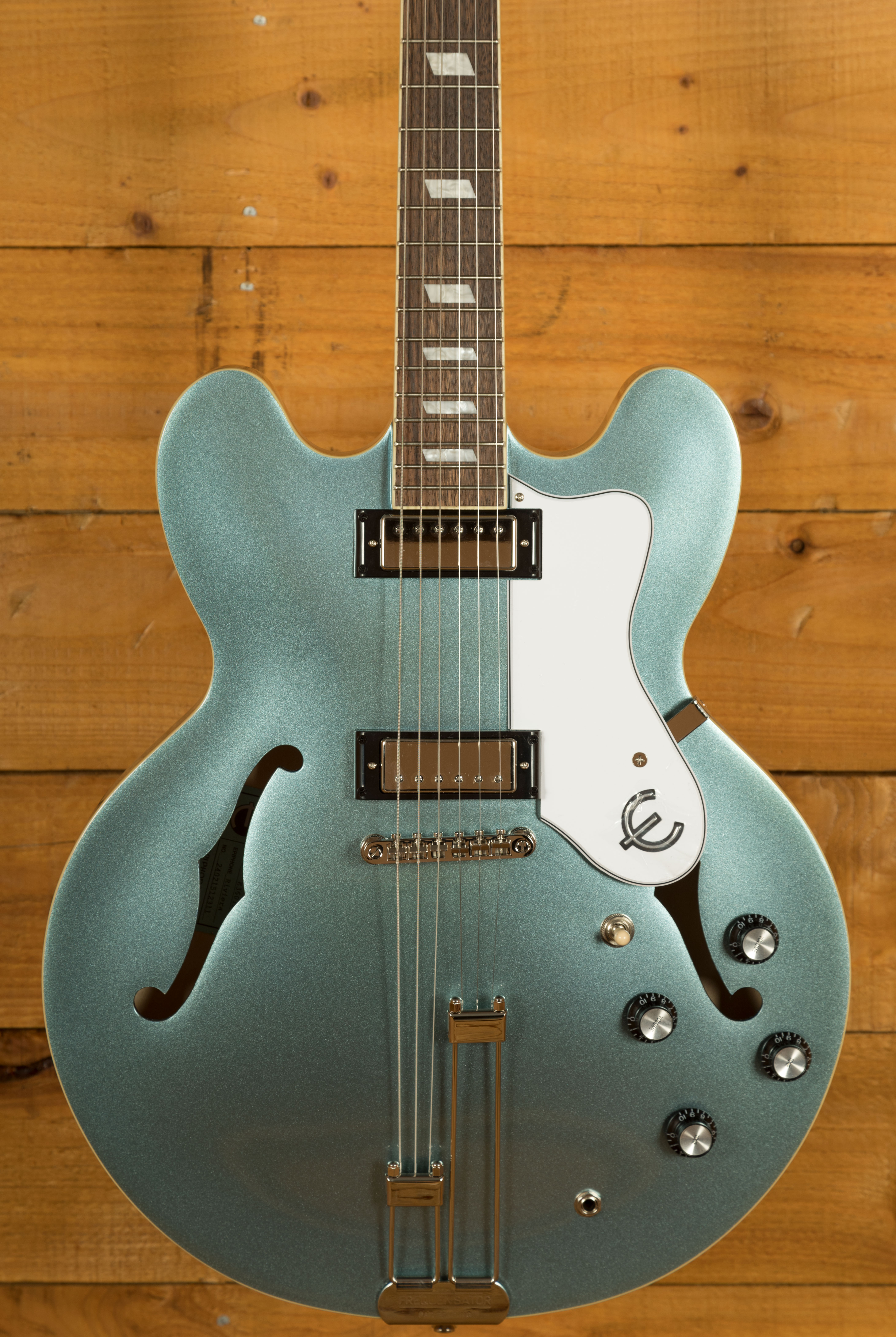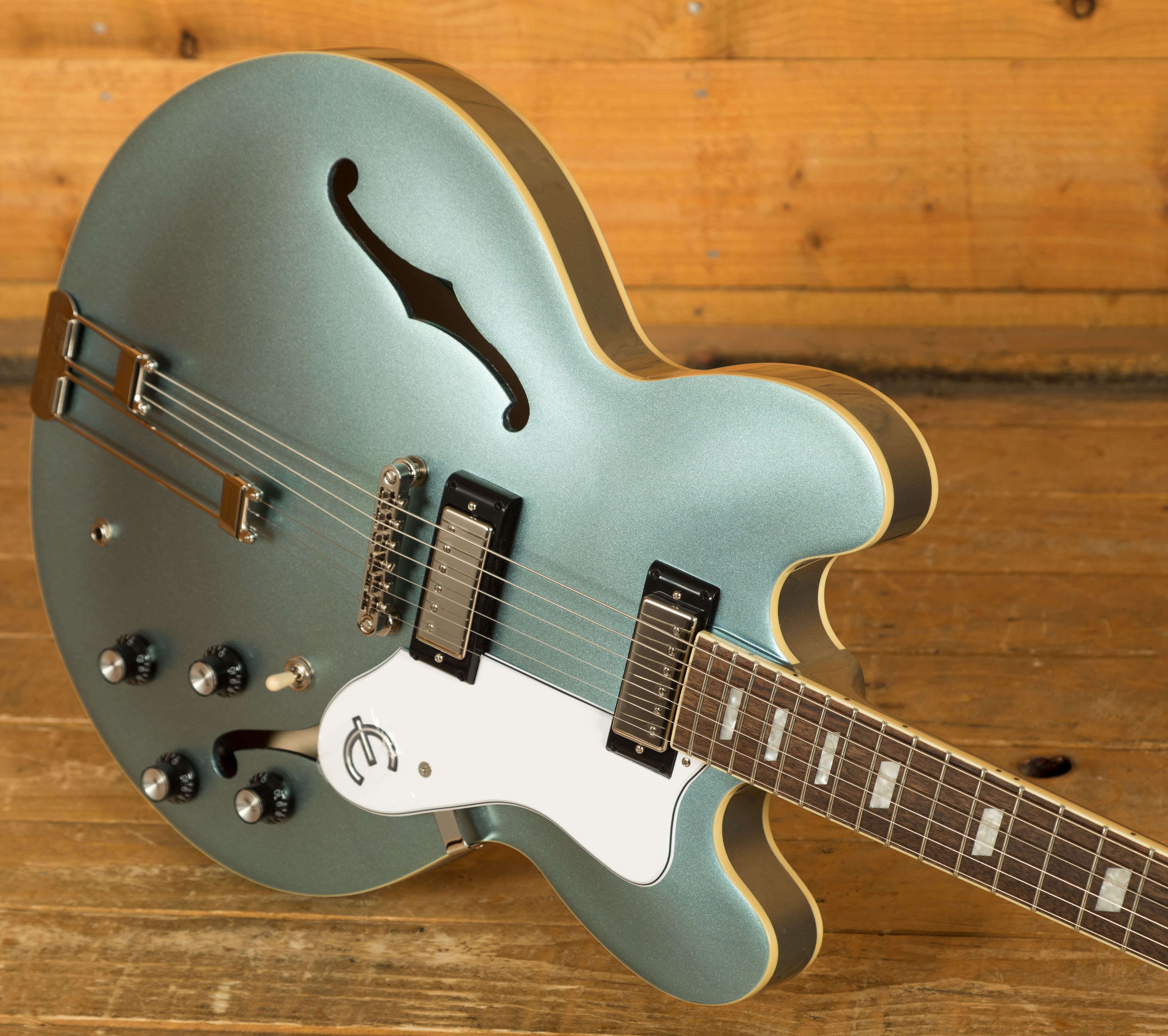 Introducing the Epiphone Riviera, a legendary masterpiece that has stood the test of time and captivated musicians for decades. Originally unveiled in the early '60s, this iconic guitar has now returned, revitalised and ready to redefine your musical journey. The Epiphone Riviera's semi-hollow design has garnered immense praise from musicians across genres and generations, establishing itself as a staple in the world of music. Renowned artists such as Robben Ford and Otis Rush, masters of the blues, as well as Lou Reed of the influential Velvet Underground and the talented Nick Valensi of The Strokes, have all discovered the magic that lies within the Riviera's legendary ES body shape, harnessing its unparalleled versatility and sonic capabilities.