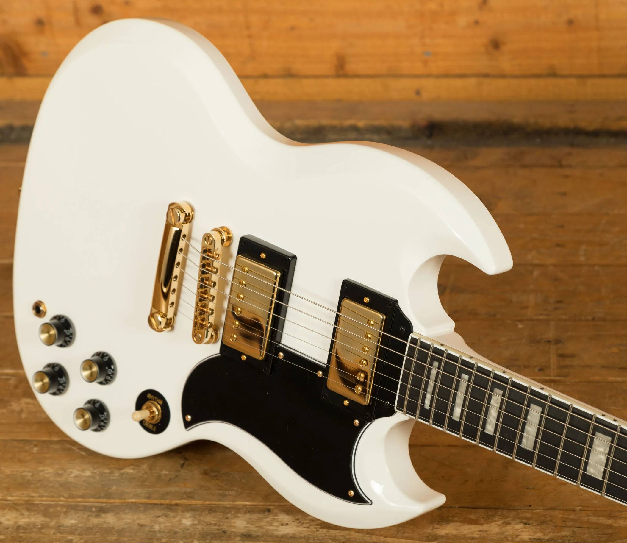 The neck of the SG Custom is crafted from mahogany and features a 1960 SlimTaper C profile, offering a comfortable and fast-playing experience. The 24.75-inch scale length and 12-inch fingerboard radius, combined with 22 medium jumbo frets and pearloid block inlays, make this guitar a joy to play, whether you're bending notes or playing complex chords. The Graph Tech nut ensures tuning stability and precision, while the 43mm nut width provides a familiar feel for Les Paul enthusiasts.