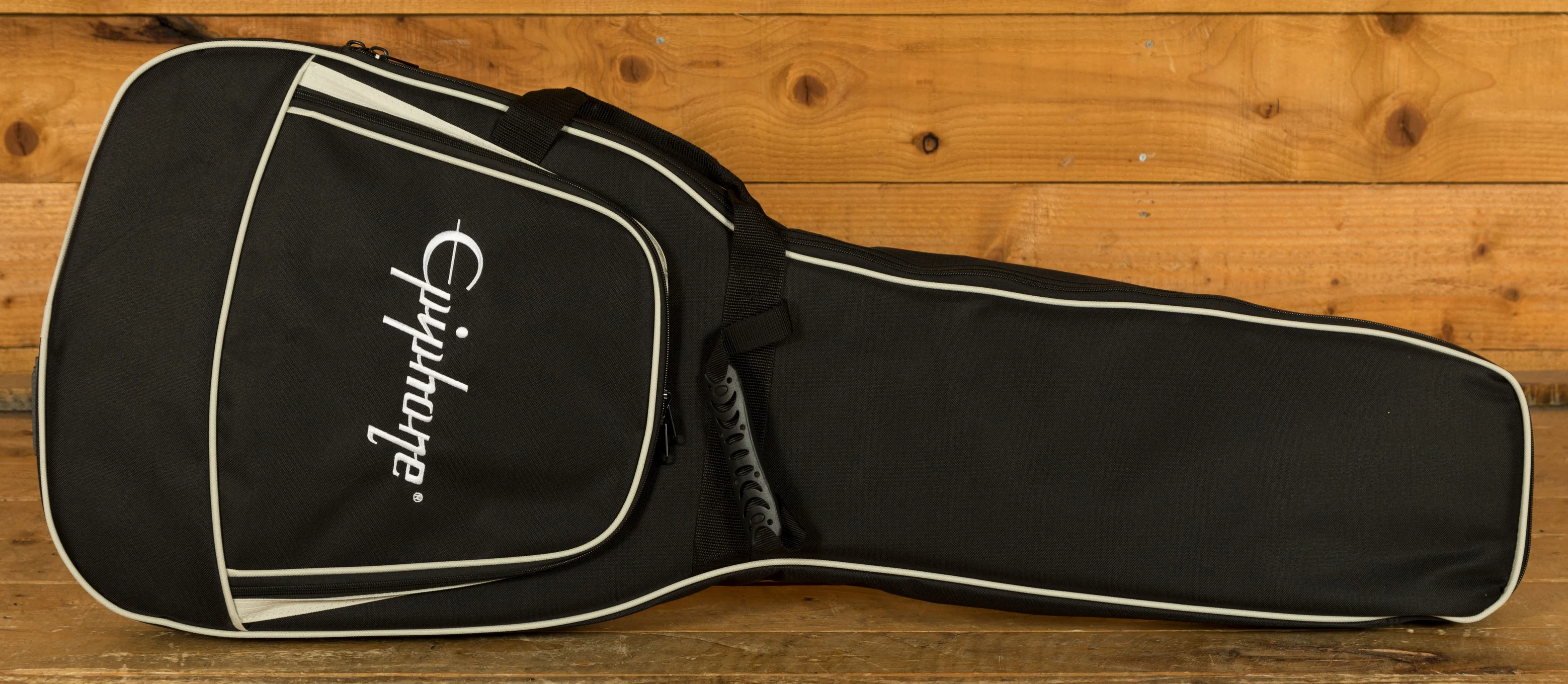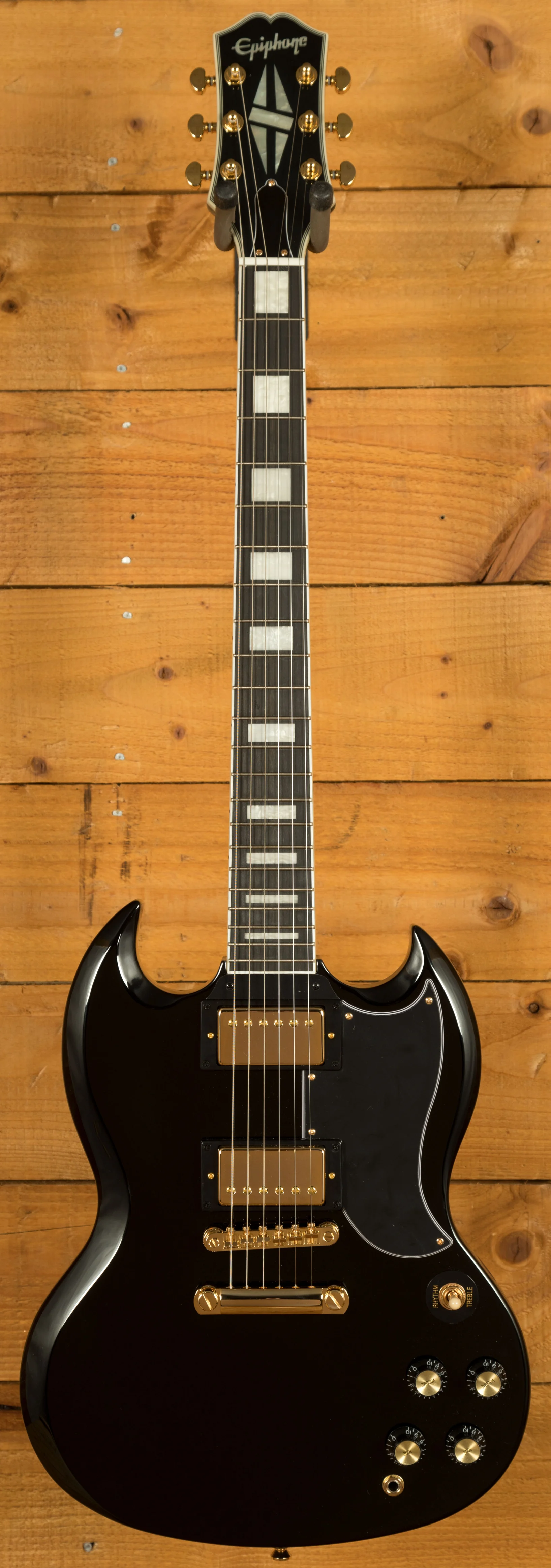 The body of the Epiphone SG Custom is constructed from solid mahogany, a tonewood known for its warm, resonant sound, providing a solid foundation for rich, sustained tones. The iconic double-cutaway design of course delivers unprecedented access to the entire fingerboard, allowing you to solo no matter the situation.