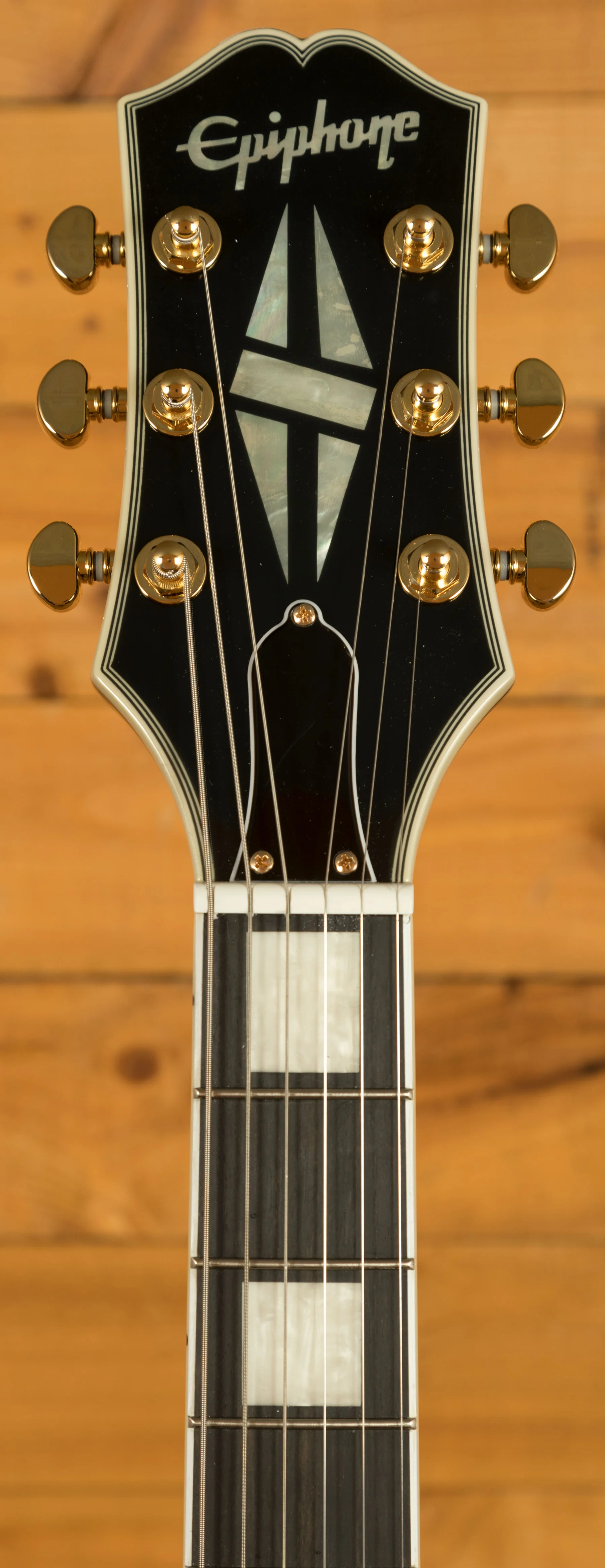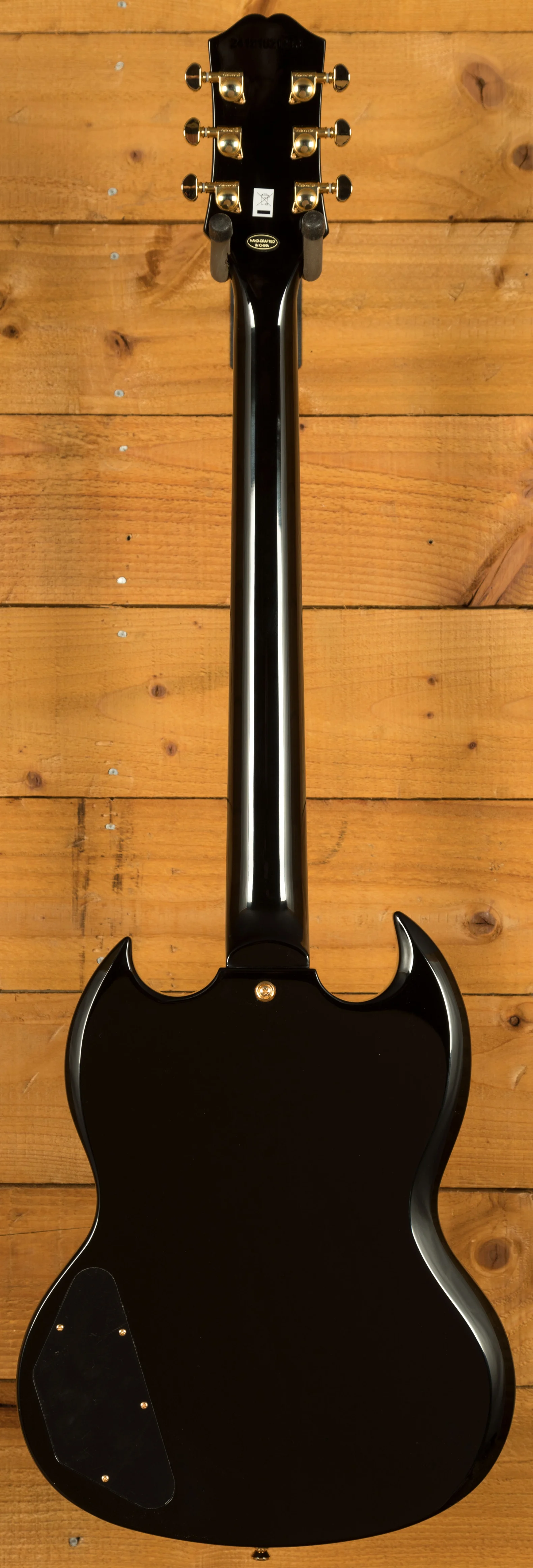 For pickups, the SG Custom is equipped with a pair of Epiphone Probucker Custom humbuckers, which deliver a versatile range of vintage-inspired tones. The guitar's hardware includes a LockTone ABR Tune-o-Matic bridge with a StopTail for solid intonation and sustain, and Grover Rotomatic tuning machines for reliable and accurate tuning.