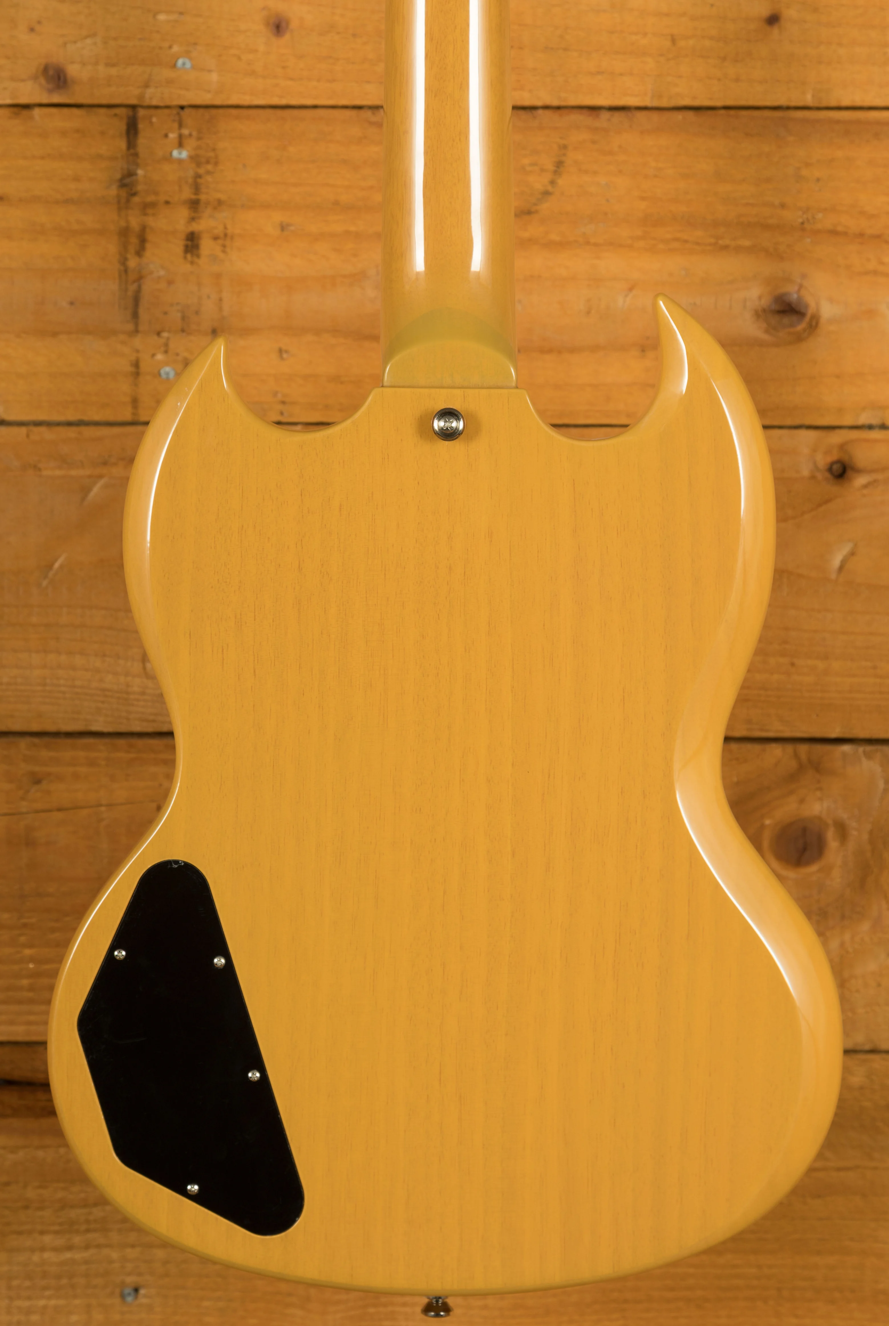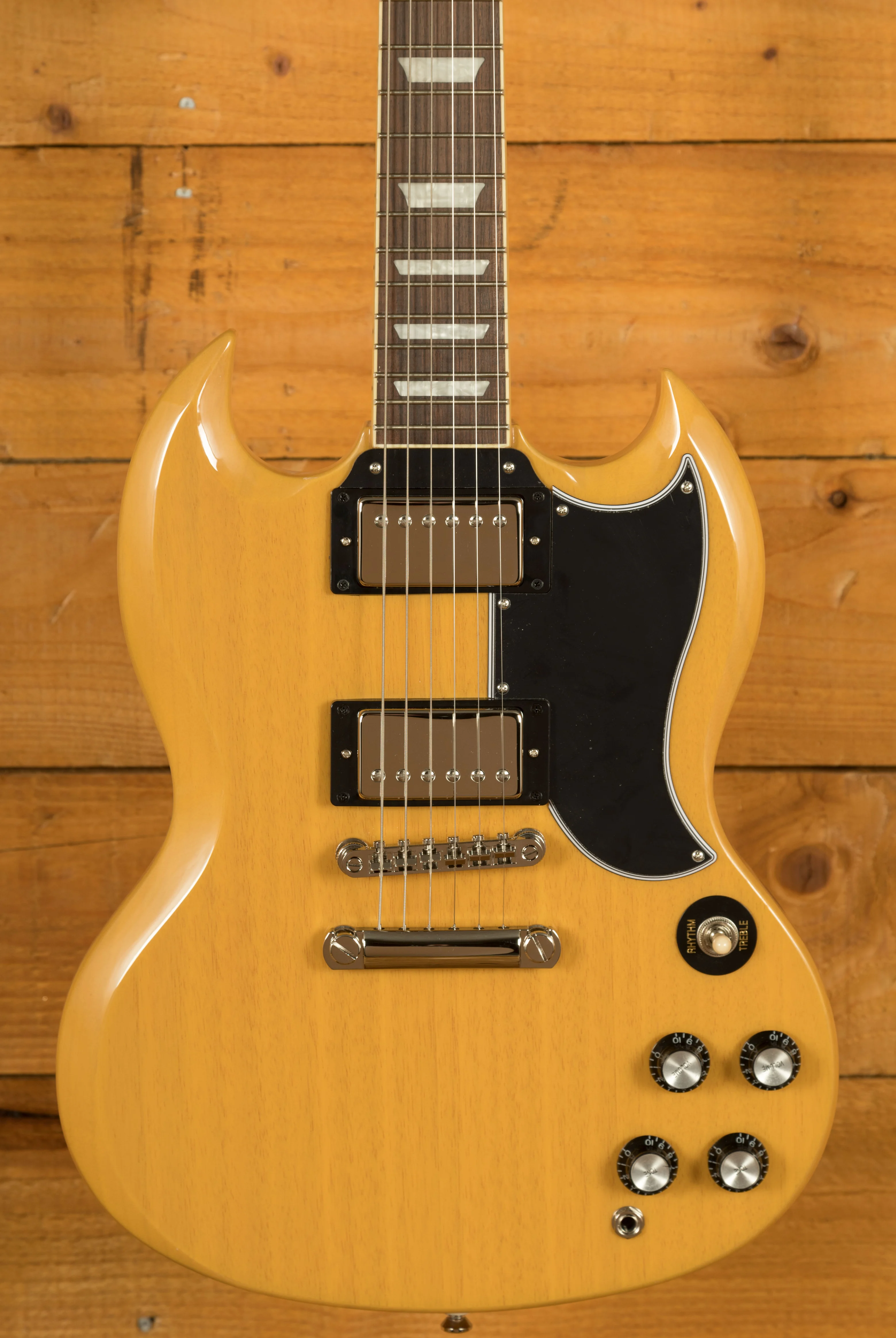 The Epiphone SG Standard 60s is a great value electric guitar that delivers classic tone and modern reliability at an accessible price point. Its body and neck are crafted from solid mahogany, providing a warm, resonant tone with excellent sustain. The SlimTaper C-shaped neck profile offers a comfortable, fast-playing feel, ideal for players who prefer a sleek and ergonomic design.