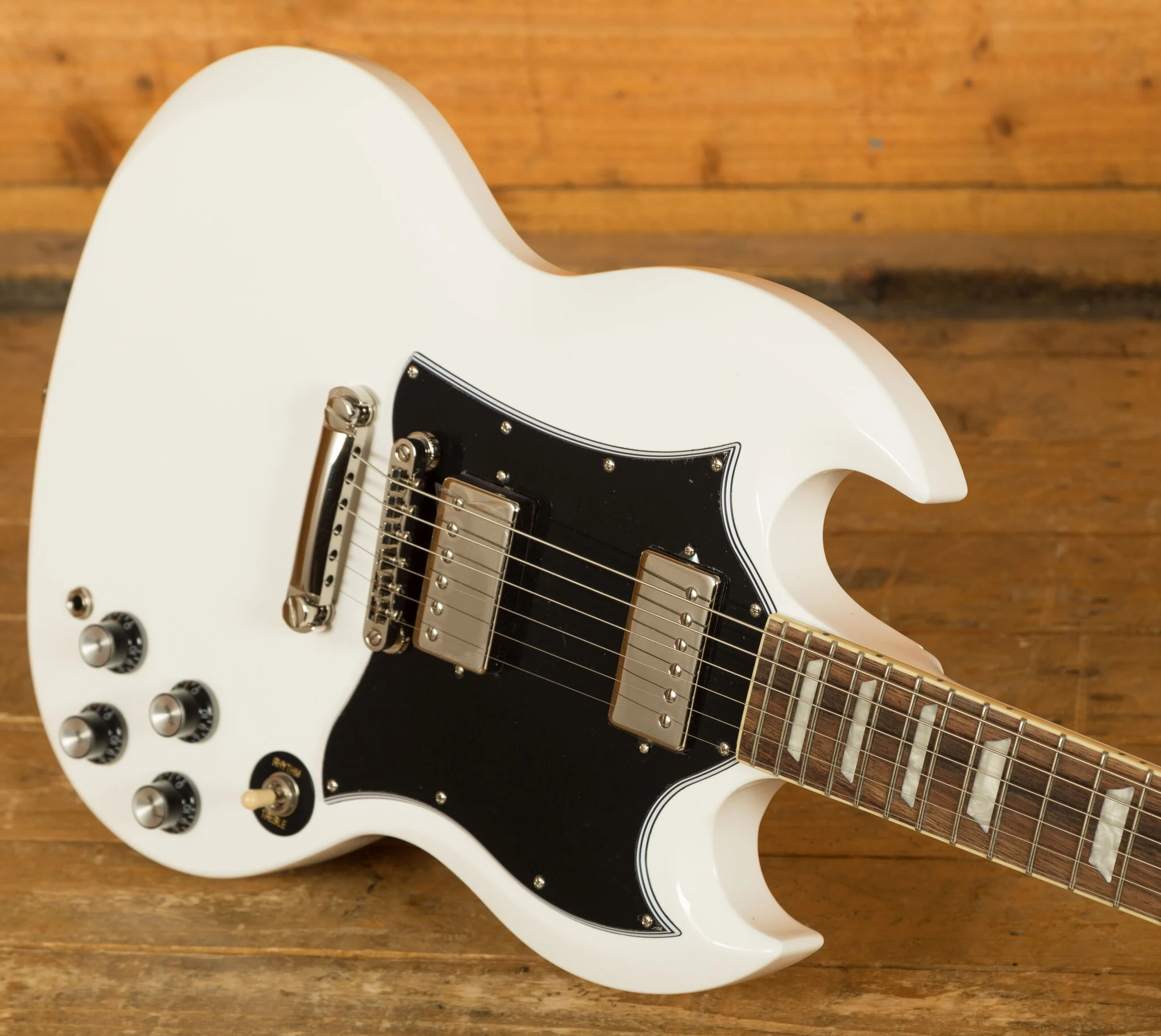 Unleash your inner rock god and experience the timeless allure of the Epiphone SG Standard from the Inspired by Gibson Collection. With its legendary heritage, impeccable craftsmanship, and exceptional tonal capabilities, this guitar is ready to accompany you on your musical journey, empowering you to create your own iconic sound.
