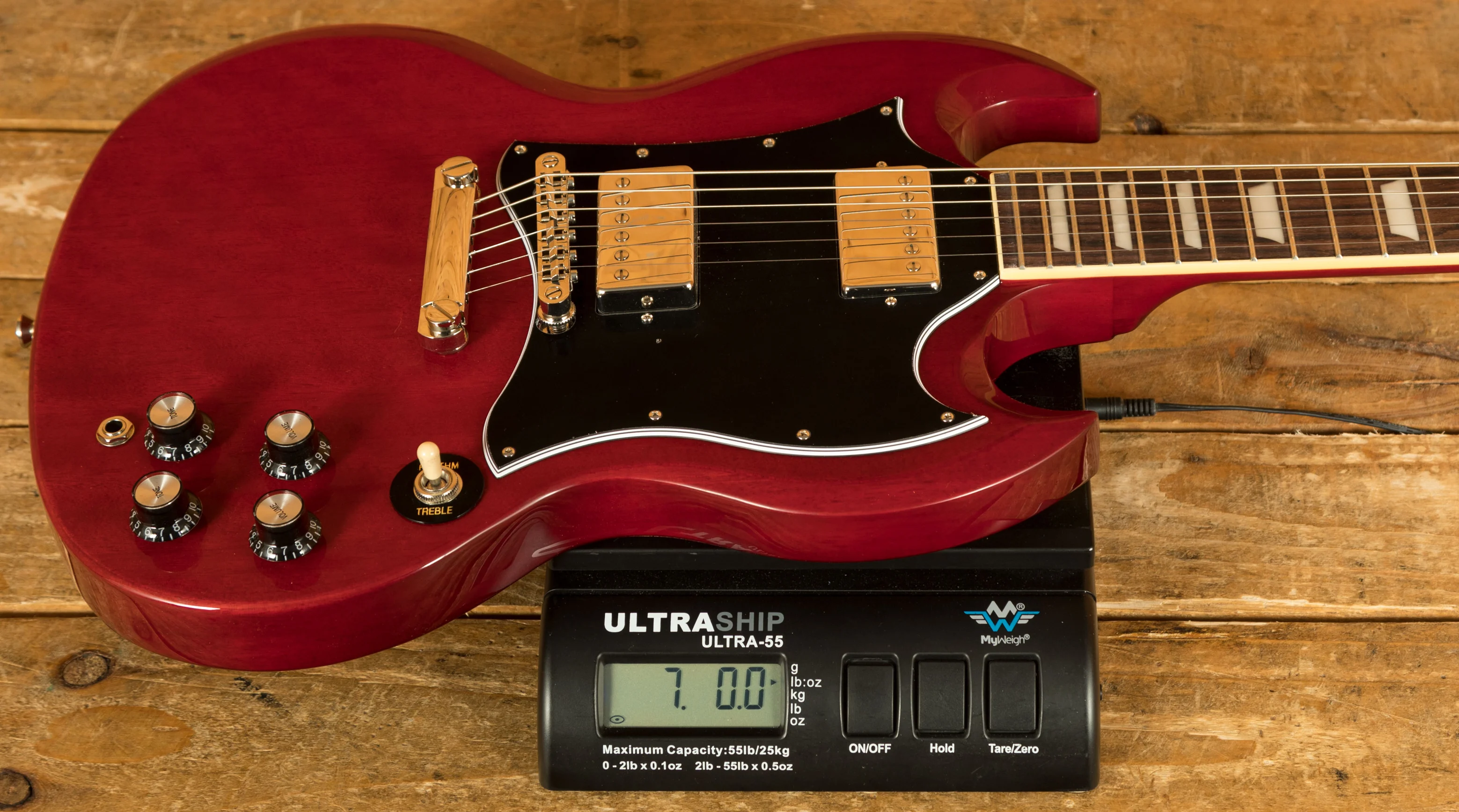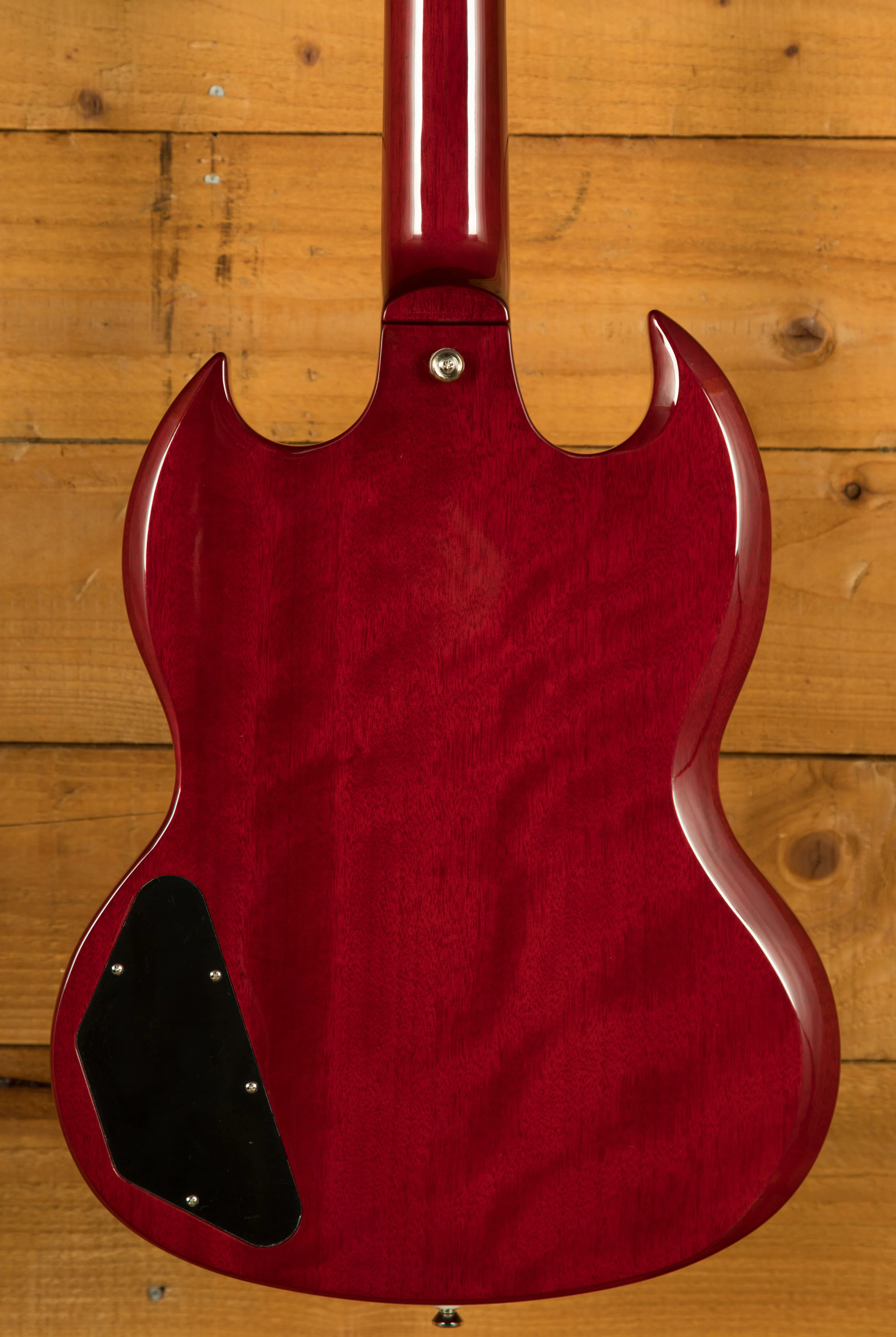 This model features the classic double cut SG body shape crafted from Mahogany. Mahogany has long been the wood of choice for Gibson models thanks to its resonance and incredible sustain. The Mahogany neck features a SlimTaper neck shape, which feels comfortable and gives this guitar a vintage feel. The Rosewood fingerboard features a 43mm nut width, 24.75" scale length, 22 frets, and pearloid dot inlays.