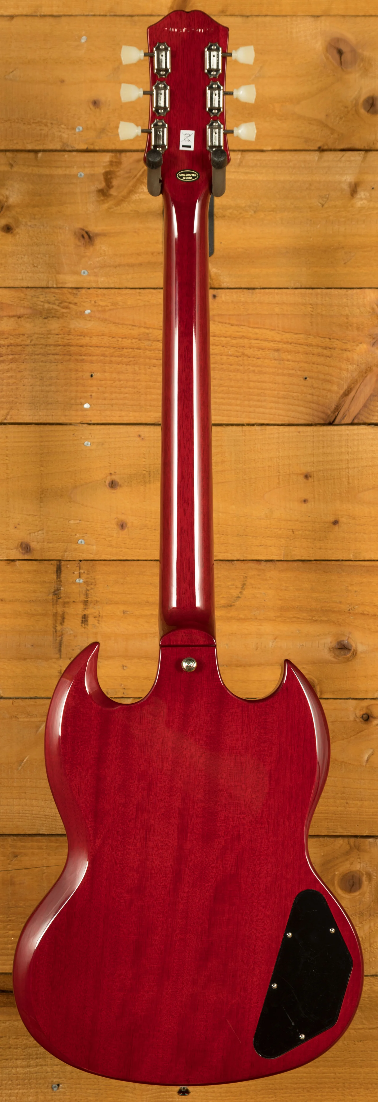 Introducing the Epiphone SG Standard from the highly acclaimed Inspired by Gibson Collection, a remarkable recreation of the iconic 1960s classic that revolutionised the world of hard rock and heavy metal. This magnificent instrument pays homage to the legendary SG that powered the explosive sound of bands like The Who, Cream, AC/DC, and Black Sabbath, establishing itself as an emblem of rock music's raw energy and rebellious spirit.