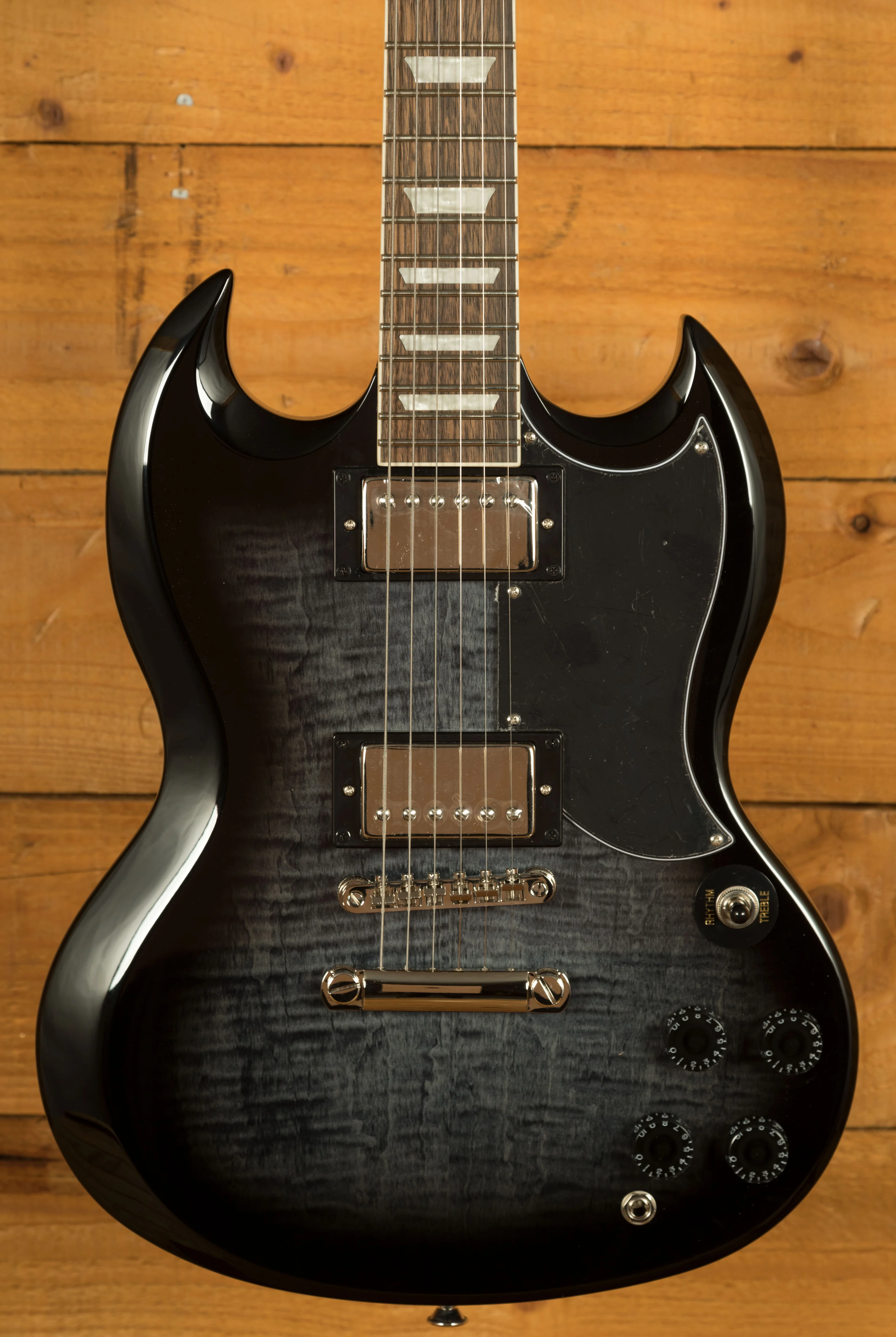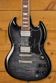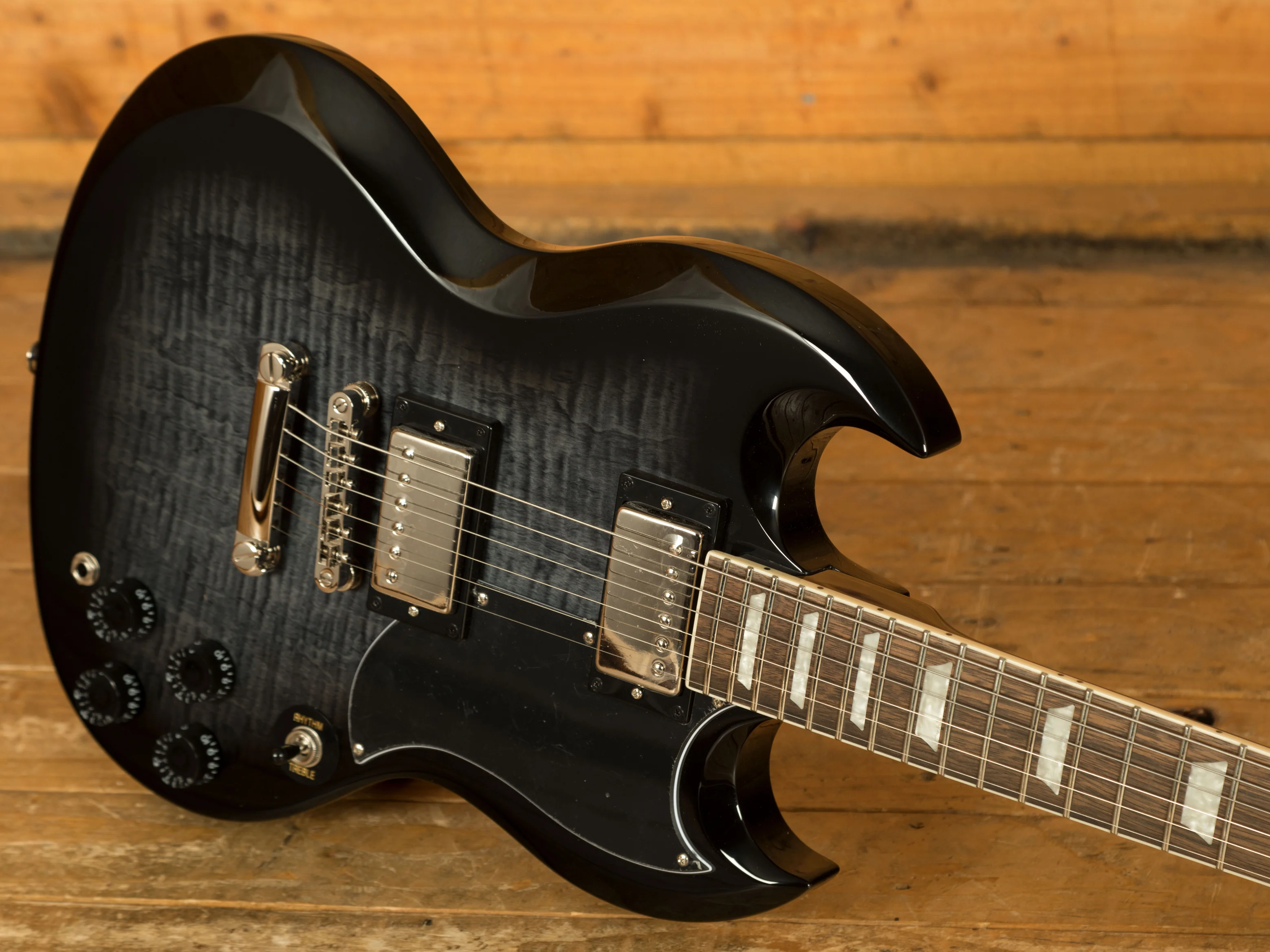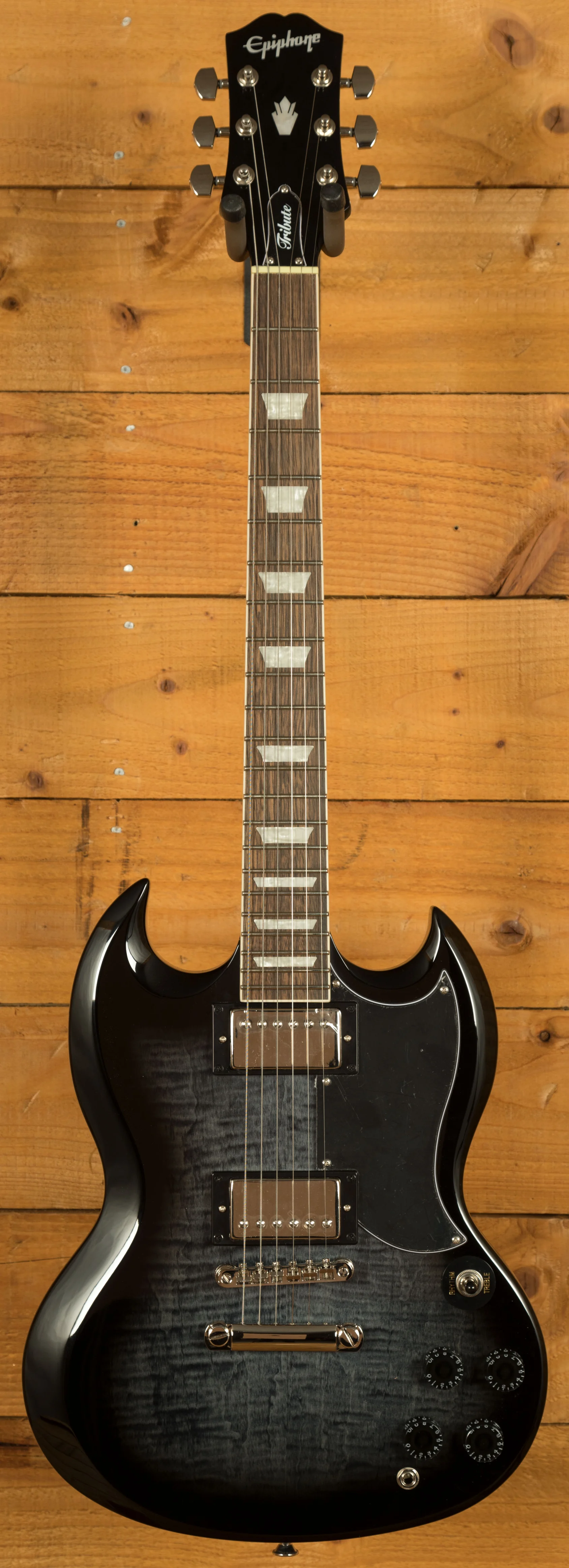 The Tribute Plus range adds a touch of flair to Epiphone's entry level guitars with the addition of a flame maple veneer top and vibrant colours. If you're a new player or on a lower budget then these are the perfect guitars for anyone who wants a classy mix of vintage and modern aesthetics. With a mahogany body and bolt-on mahogany neck, you get that same rich, resonant tonewood pairing that Gibson has been using since the 50s. The neck is easy to play on thanks to the 60s SlimTaper Rounded "C" profile and unrestrictive fret access of the SG. The bound laurel fingerboard features a 12" radius with 22 medium jumbo frets for easier vibrato and legato. Extra features like the pearloid trapeze inlays and tapered heel joint show Epiphone's attention to detail to make this a great looking guitar with a focus on ease of play.