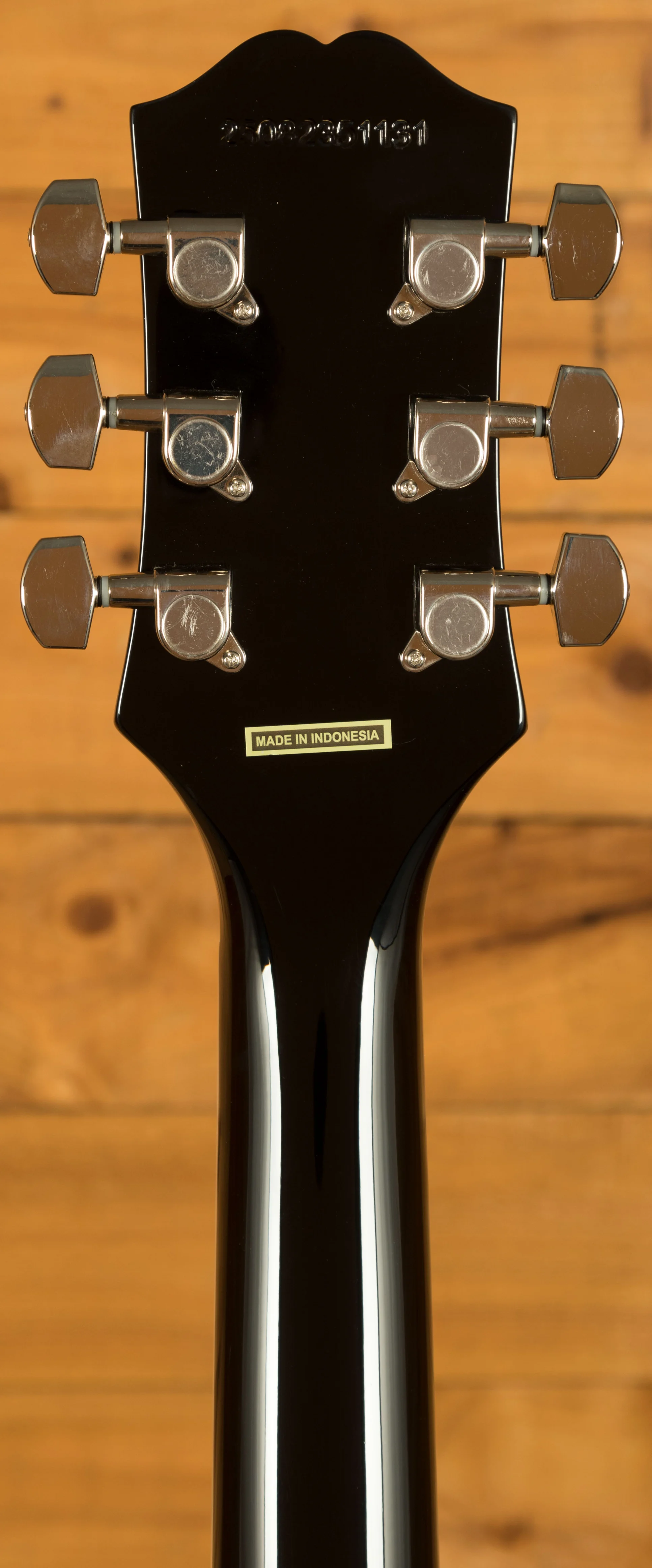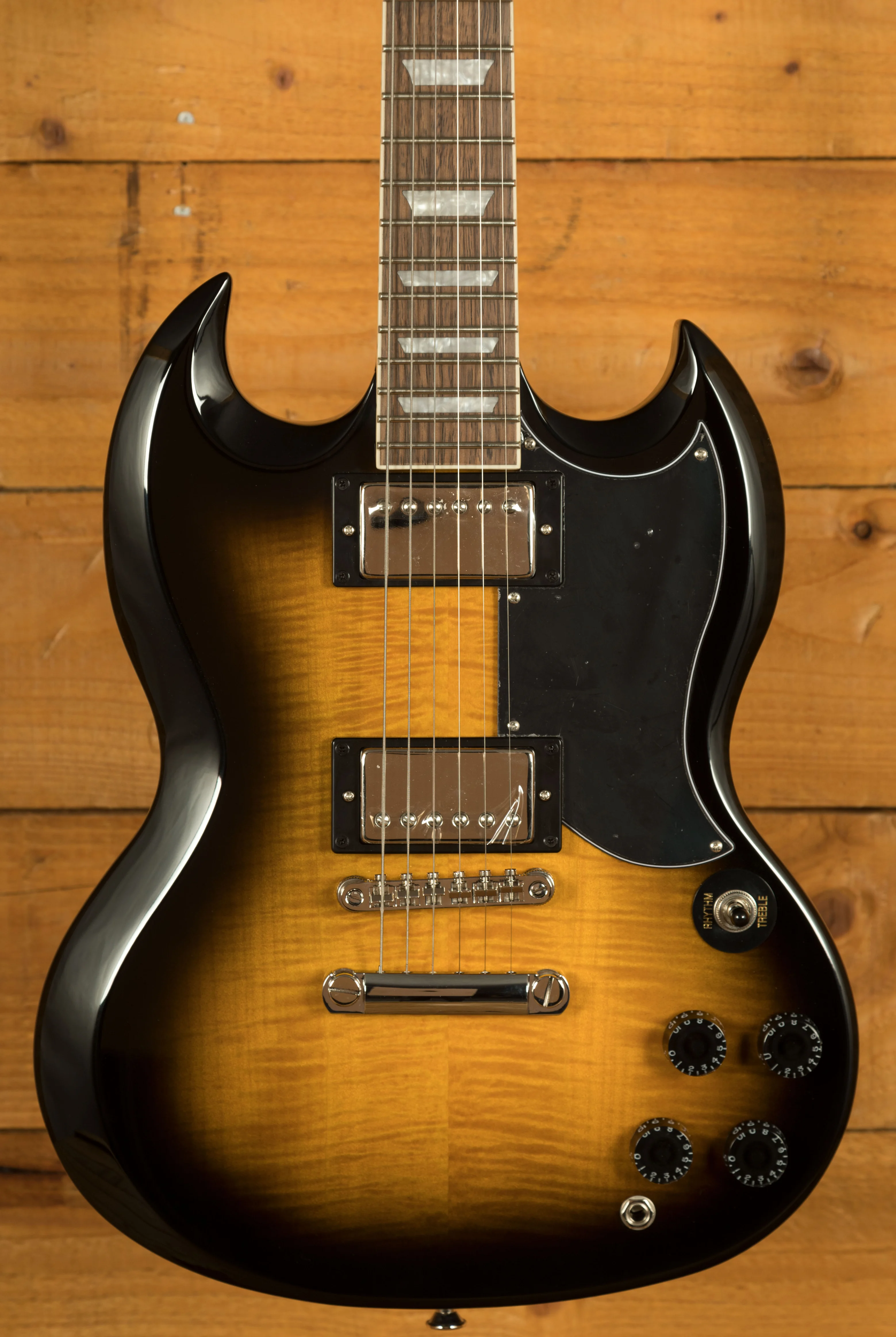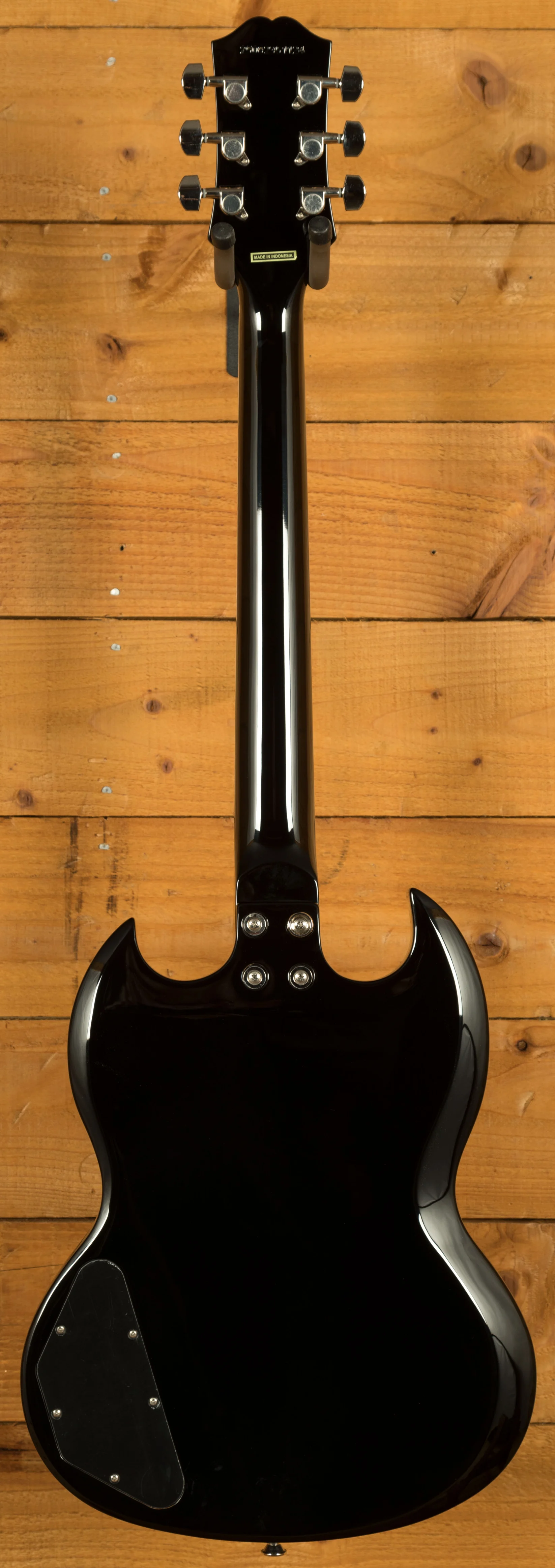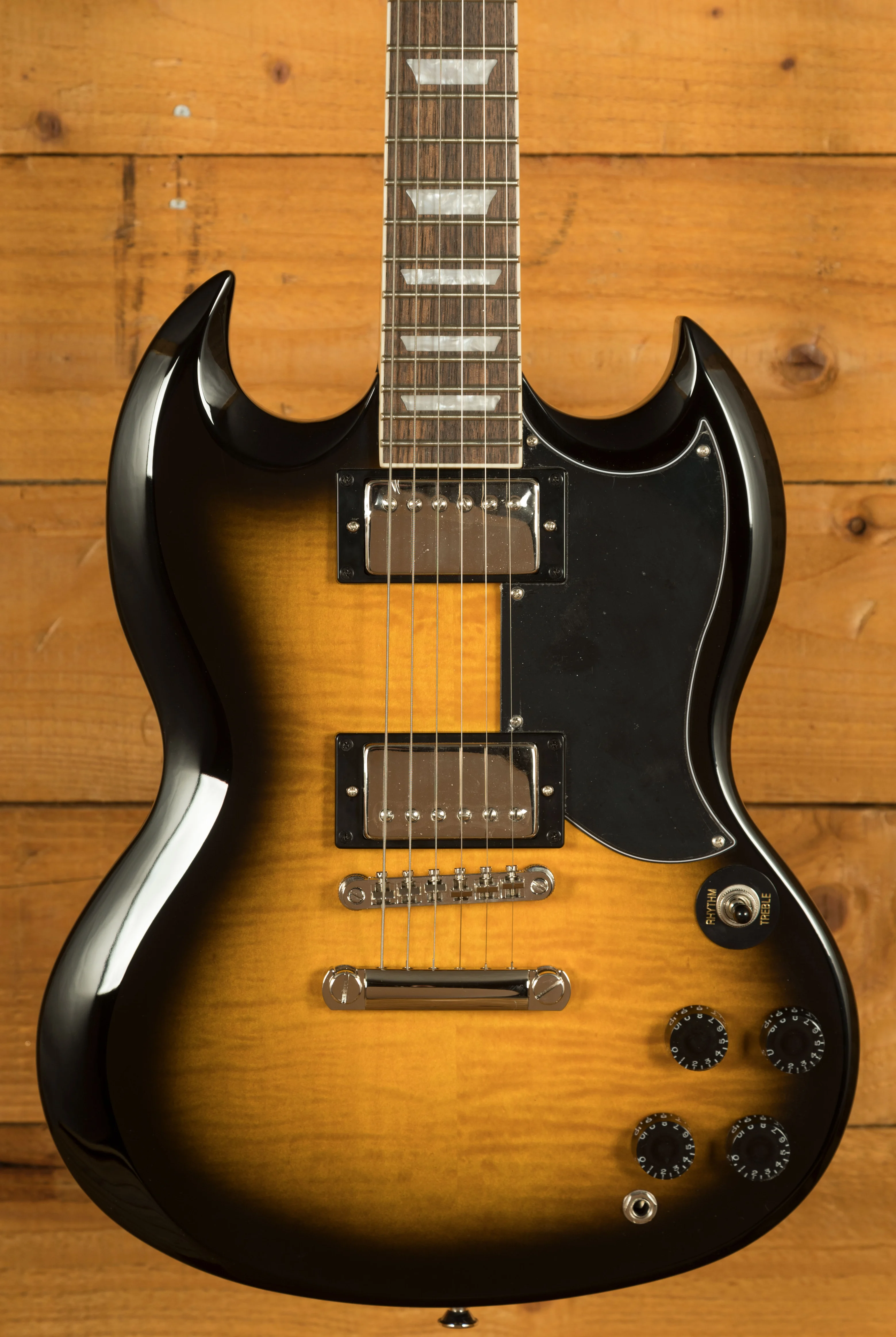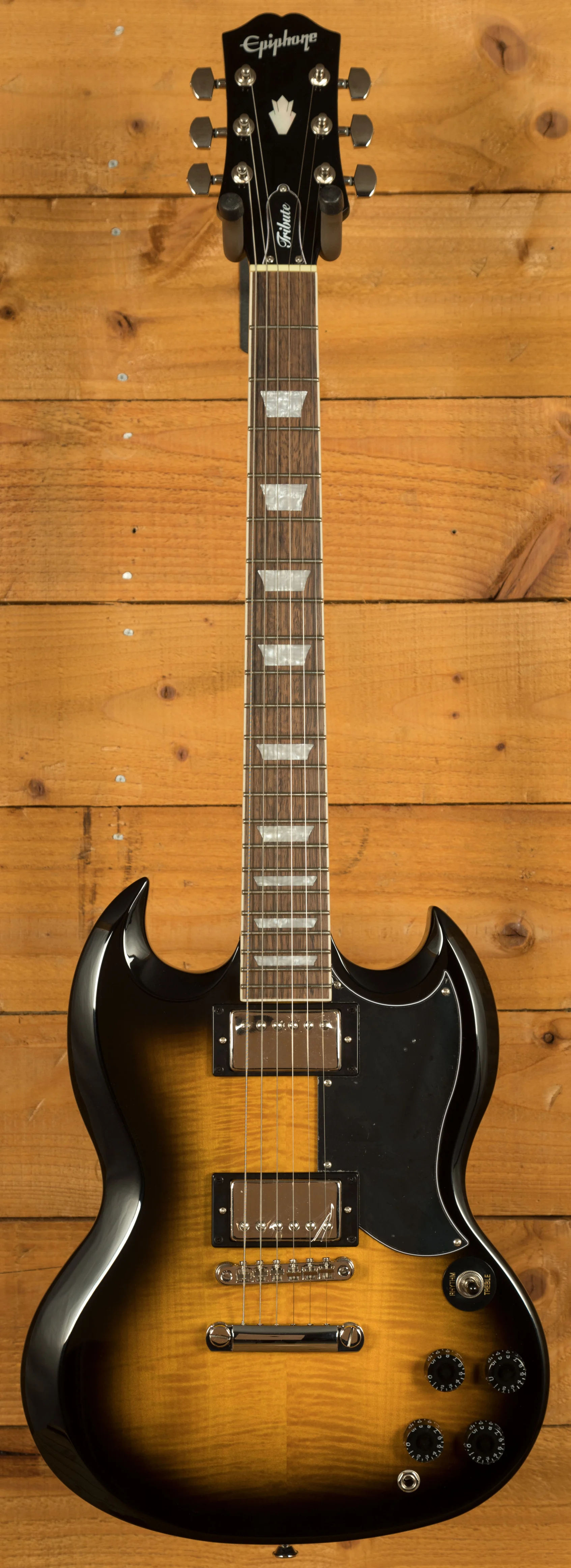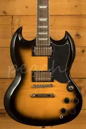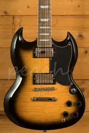 The Tribute Plus range adds a touch of flair to Epiphone's entry level guitars with the addition of a flame maple veneer top and vibrant colours. If you're a new player or on a lower budget then these are the perfect guitars for anyone who wants a classy mix of vintage and modern aesthetics. With a mahogany body and bolt-on mahogany neck, you get that same rich, resonant tonewood pairing that Gibson has been using since the 50s. The neck is easy to play on thanks to the 60s SlimTaper Rounded "C" profile and unrestrictive fret access of the SG. The bound laurel fingerboard features a 12" radius with 22 medium jumbo frets for easier vibrato and legato. Extra features like the pearloid trapeze inlays and tapered heel joint show Epiphone's attention to detail to make this a great looking guitar with a focus on ease of play.