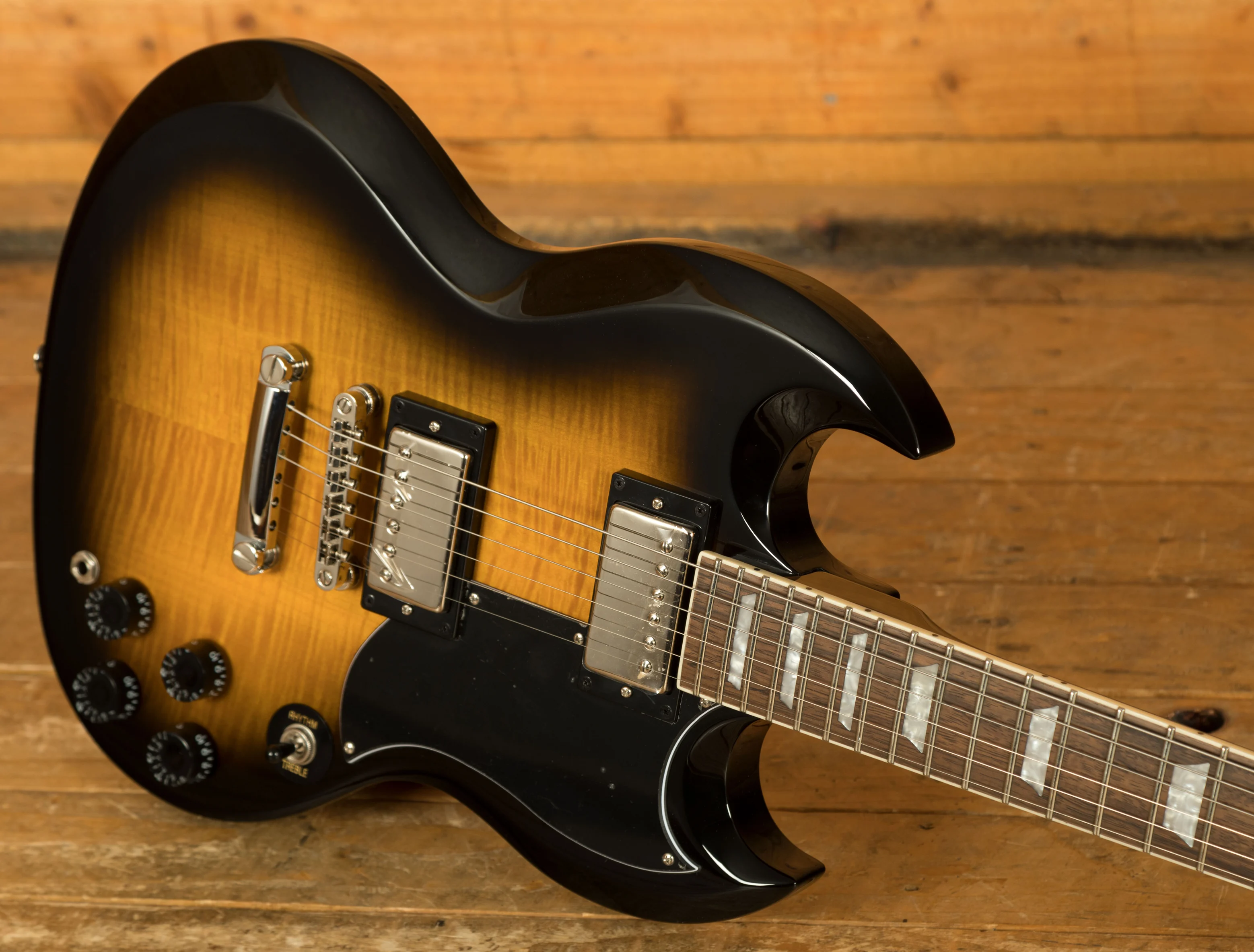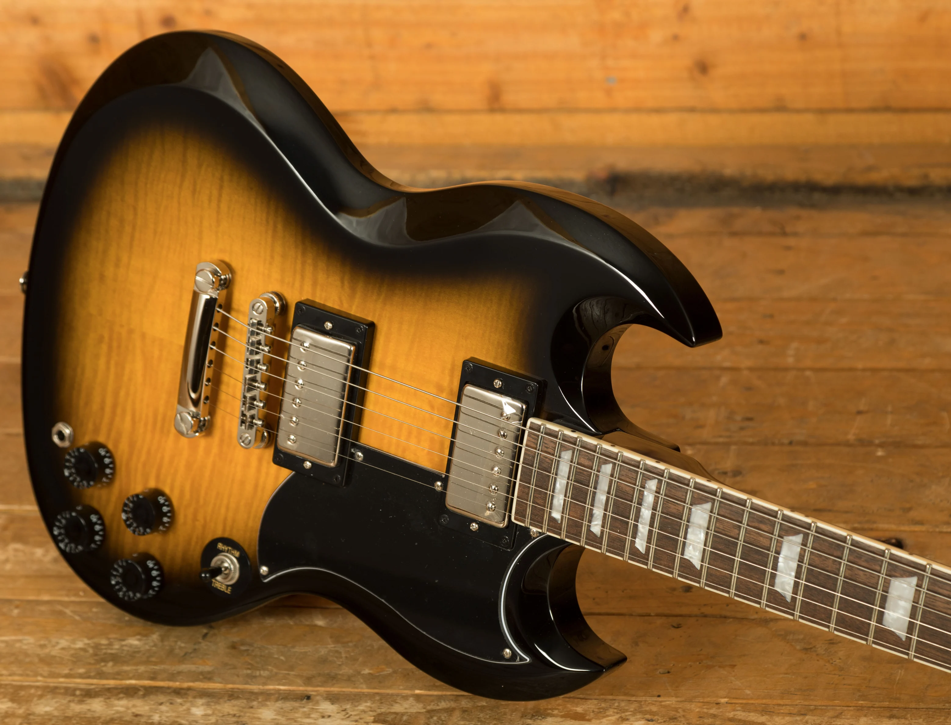 When it comes to electronics, the SG Tribute Plus is loaded with a pair of ceramic magnet humbuckers. With plenty of output and attack, the 650R and 700T pickups are perfect for cutting through the mix and have no trouble pushing an amp into higher gain territories playing rock and more. With LockTone Tune-O-Matic bridge and stop bar and quality die-cast tuners, you get accurate and consistent tuning and intonation so that you can focus on playing without hindrance.
