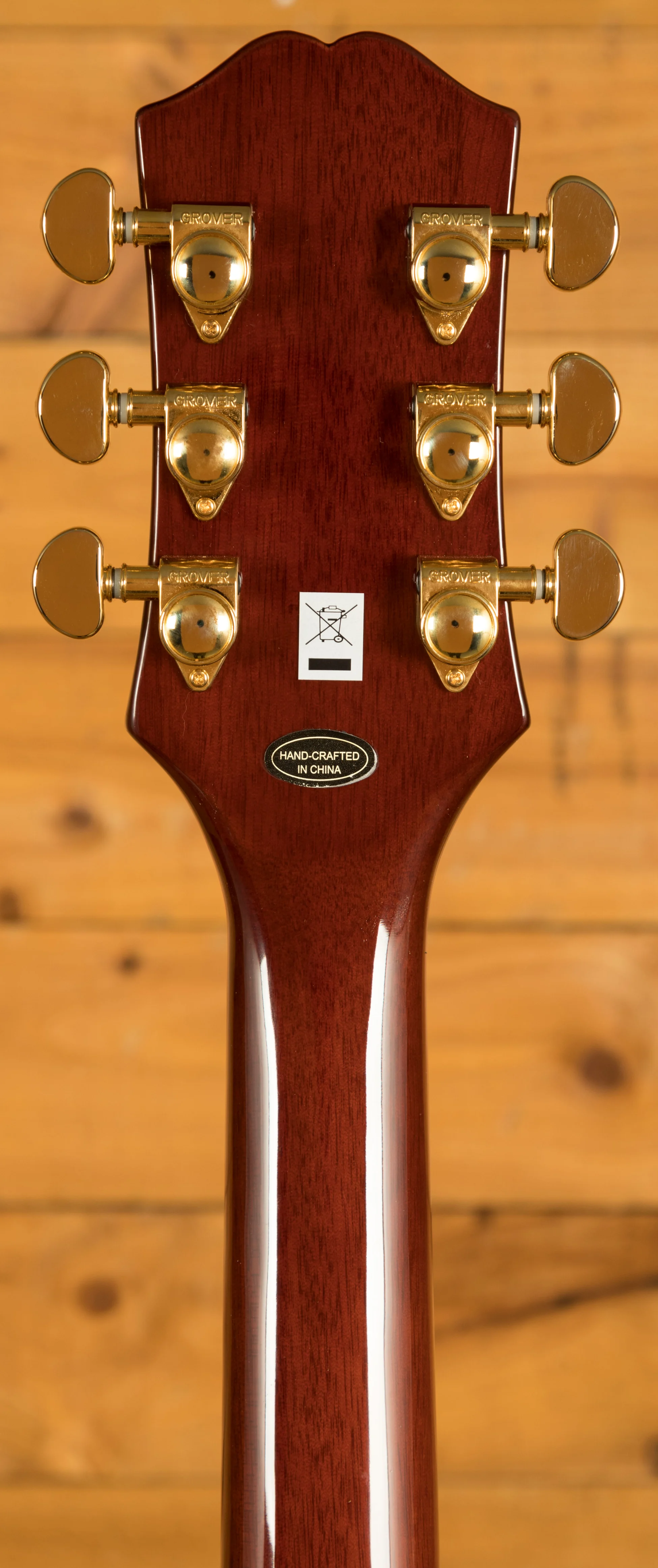 The hardware is built for reliability and vintage appeal. A LockTone Tune-O-Matic bridge ensures solid intonation and sustain, while the Frequensator Split Trapeze tailpiece enhances string resonance. Wilkinson tuners provide smooth tuning adjustments and stability. Gold hardware throughout the guitar adds a classic touch to its design.