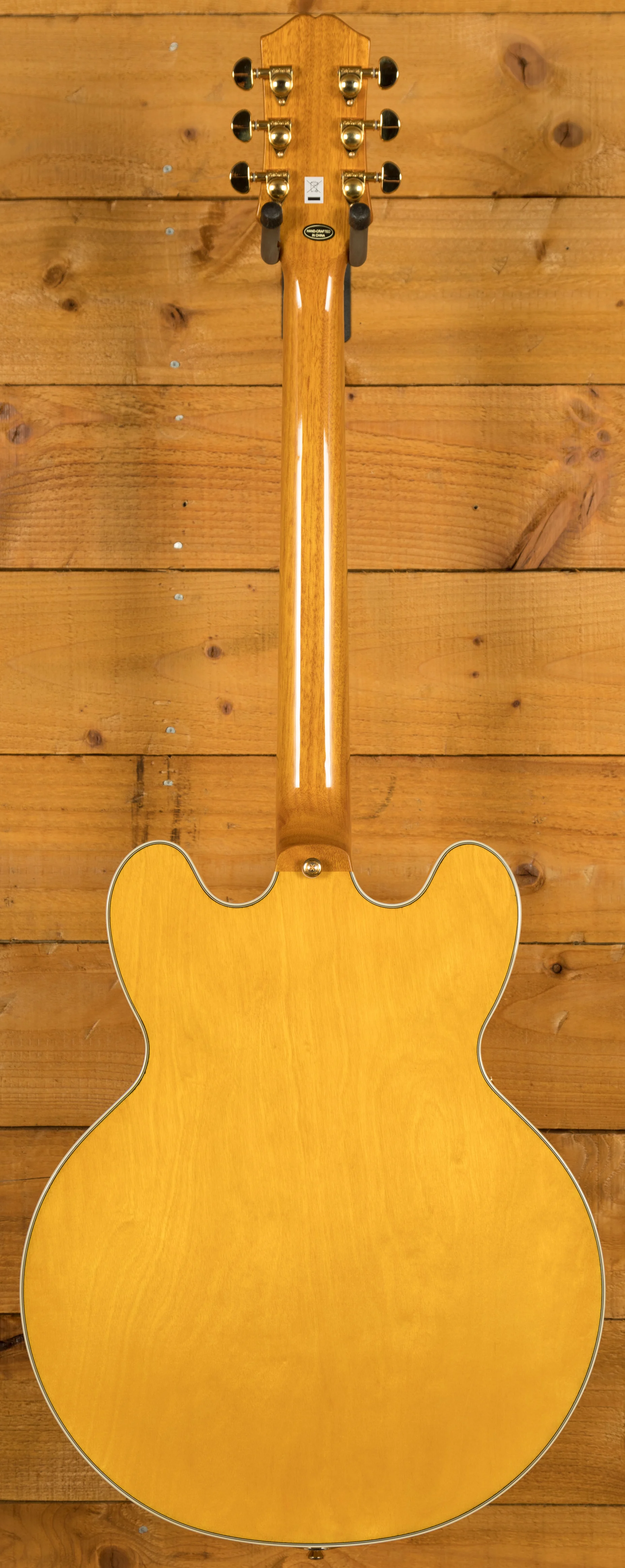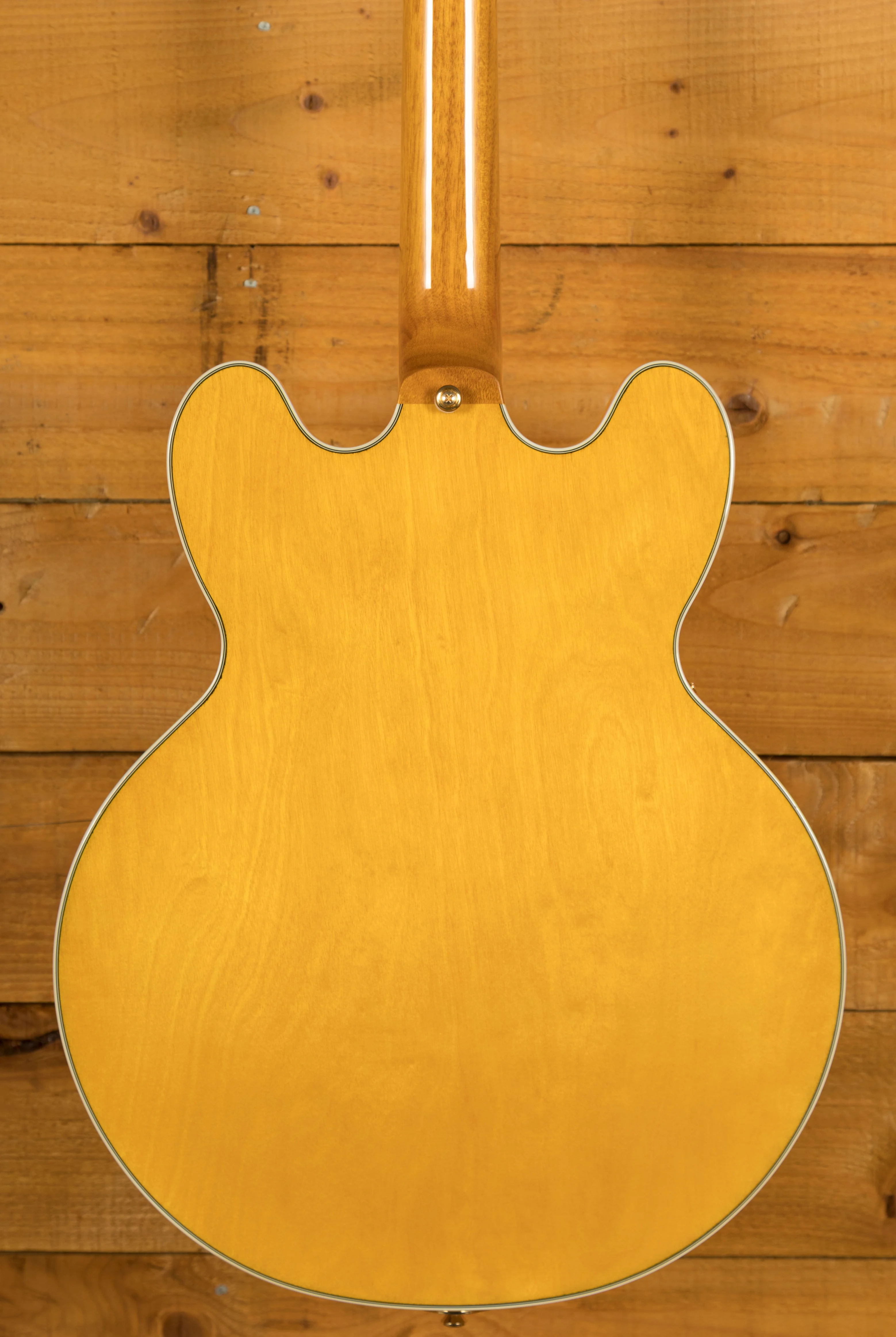 The Epiphone Sheraton boasts a semi-hollow body meticulously crafted from layered maple, resulting in a resonant and balanced tone that is nothing short of extraordinary. To ensure optimal feedback resistance and sustain, a maple centreblock has been strategically incorporated into the design. This innovative feature allows you to unleash your creativity without worrying about unwanted noise interfering with your performance.
