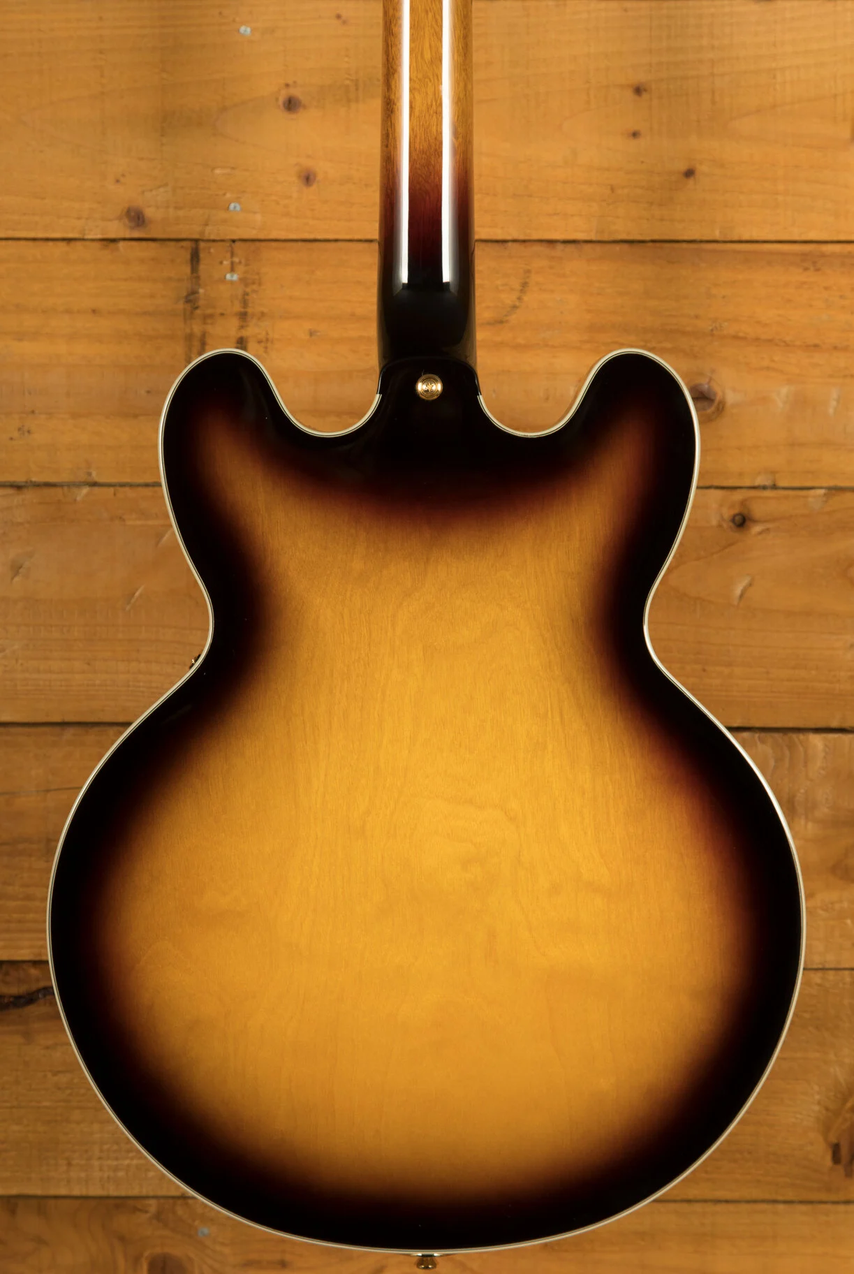 The Epiphone Sheraton boasts a semi-hollow body meticulously crafted from layered maple, resulting in a resonant and balanced tone that is nothing short of extraordinary. To ensure optimal feedback resistance and sustain, a maple centreblock has been strategically incorporated into the design. This innovative feature allows you to unleash your creativity without worrying about unwanted noise interfering with your performance.