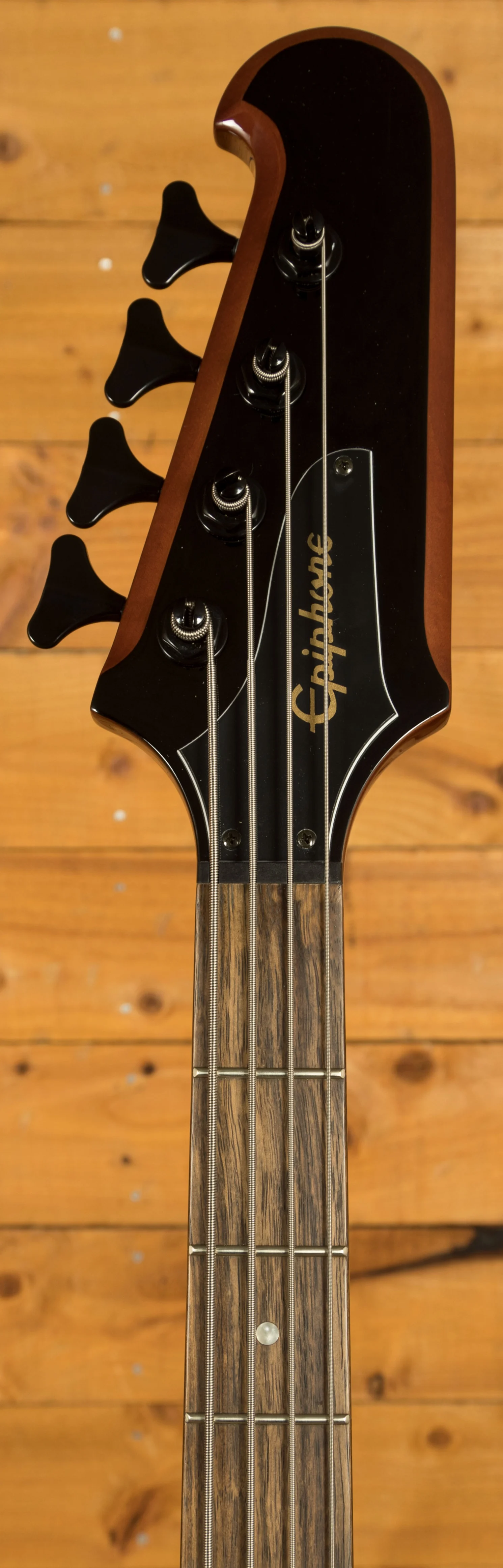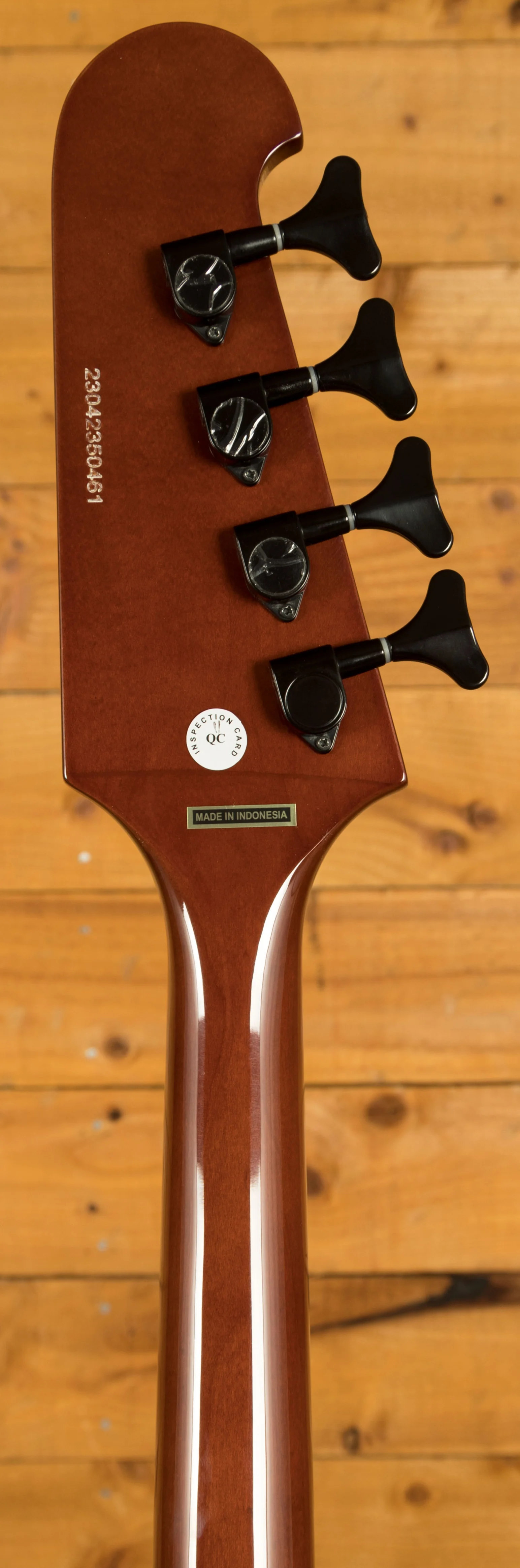 Equipped with Epiphone TB Plus Bass Humbuckers, the Thunderbird E1 delivers a powerful, punchy sound with excellent clarity and sustain. The bass features independent volume controls for the neck and bridge pickups, along with a master tone control, allowing for precise tonal adjustments. The 3-point fully adjustable bridge and premium ratio tuners ensure reliable tuning stability, precise intonation, and solid resonance, making the Thunderbird E1 a dependable choice for both studio recordings and live performances.