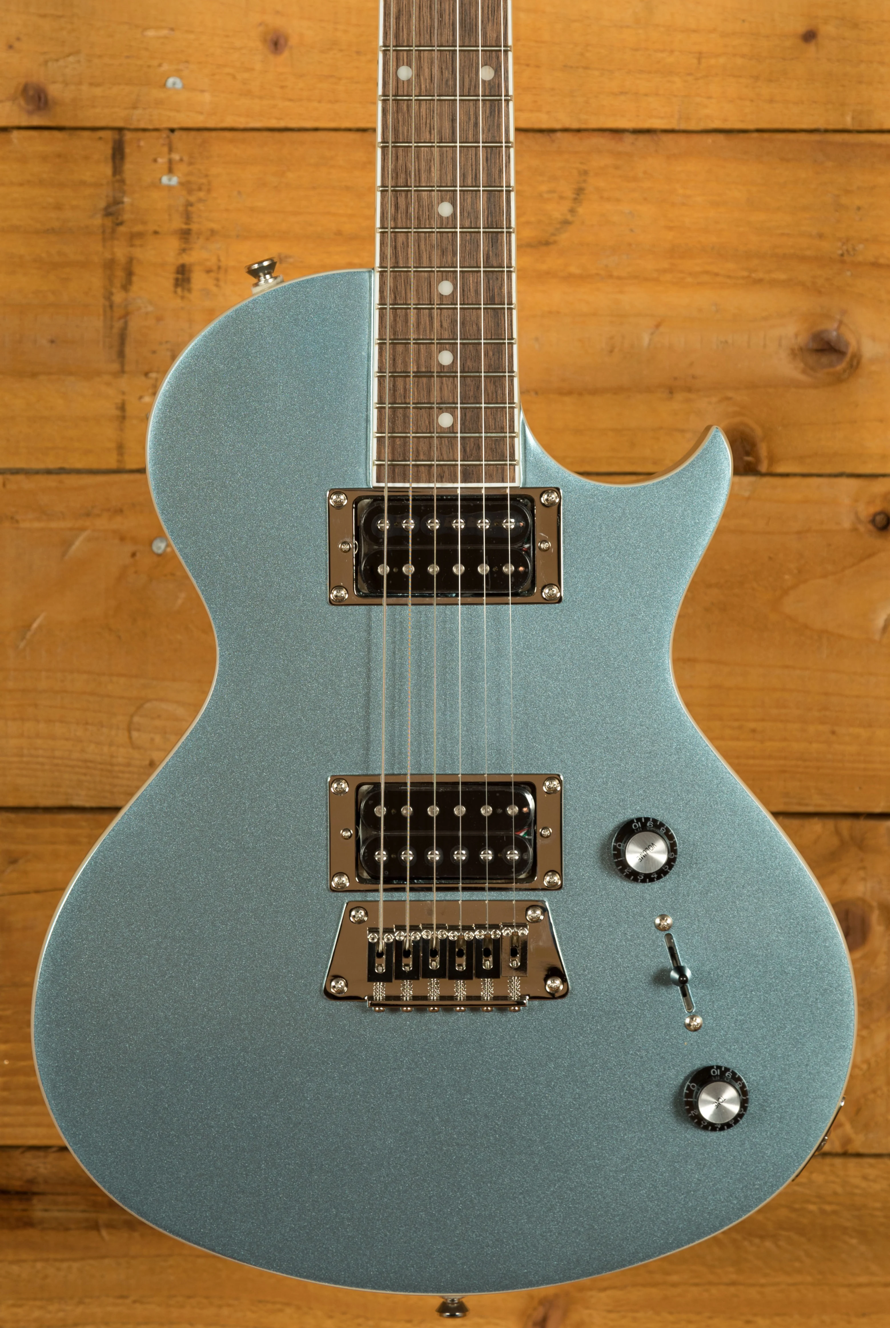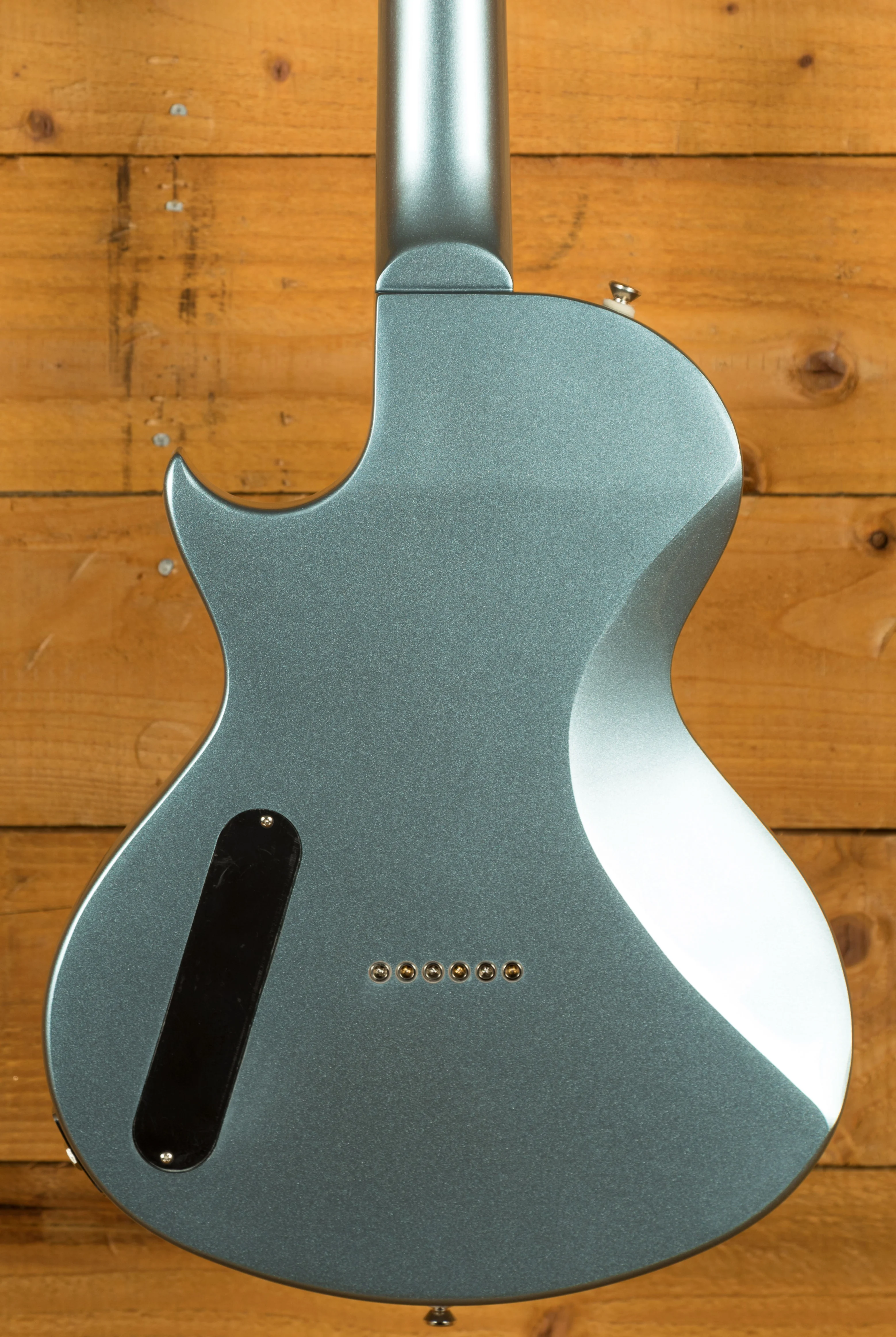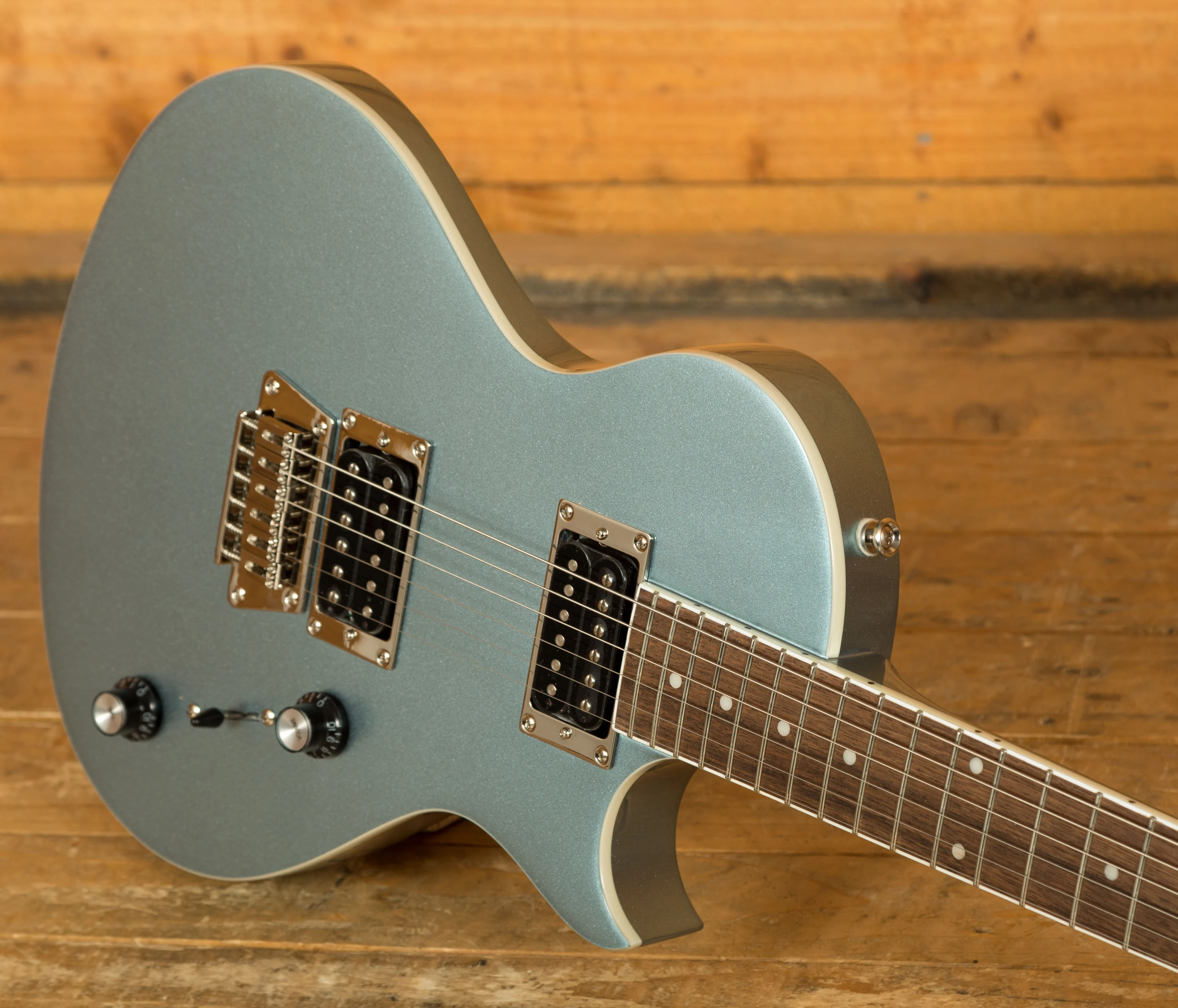 This Nighthawk studio begins with a classic Mahogany body finished with a metallic Pelham Blue finish. It’s super lightweight and thanks to the ergonomic body shape it feels great against the body.