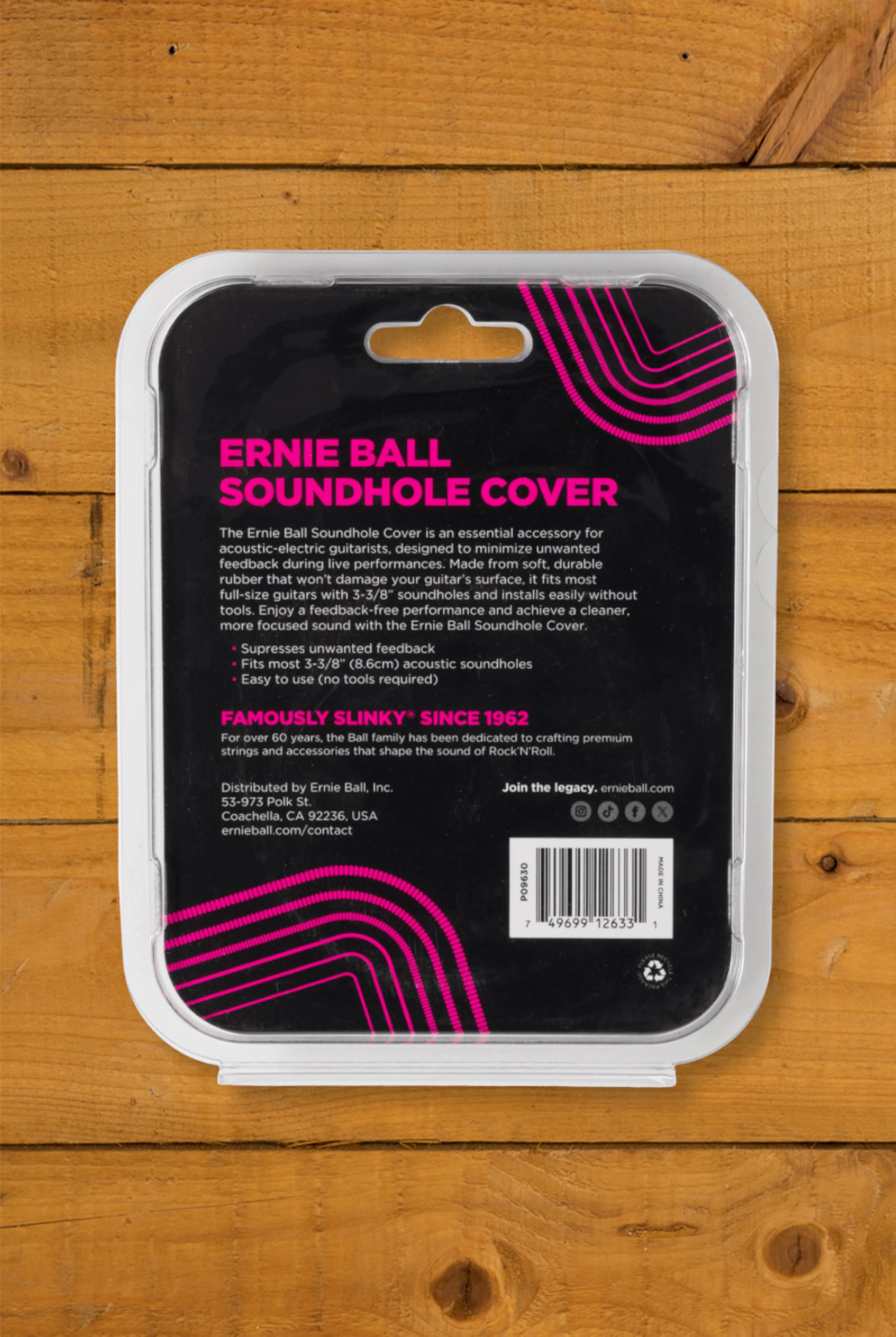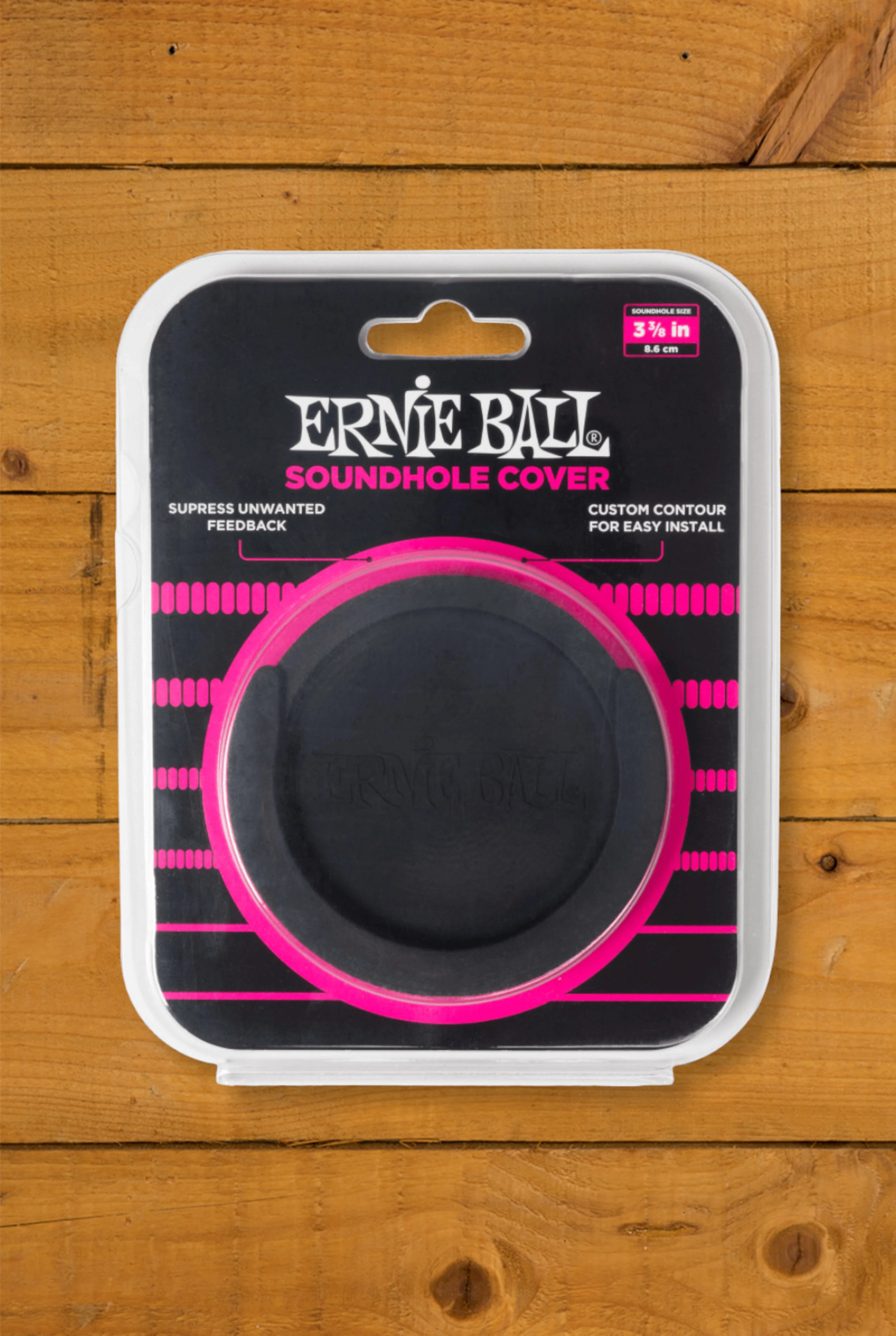 The Ernie Ball Acoustic Soundhole Cover is a simple and effective solution for controlling feedback during live performance. Designed to fit standard 3-3/8 inch (8.6 cm) diameter soundholes, it blocks unwanted resonance without affecting tone or playability.