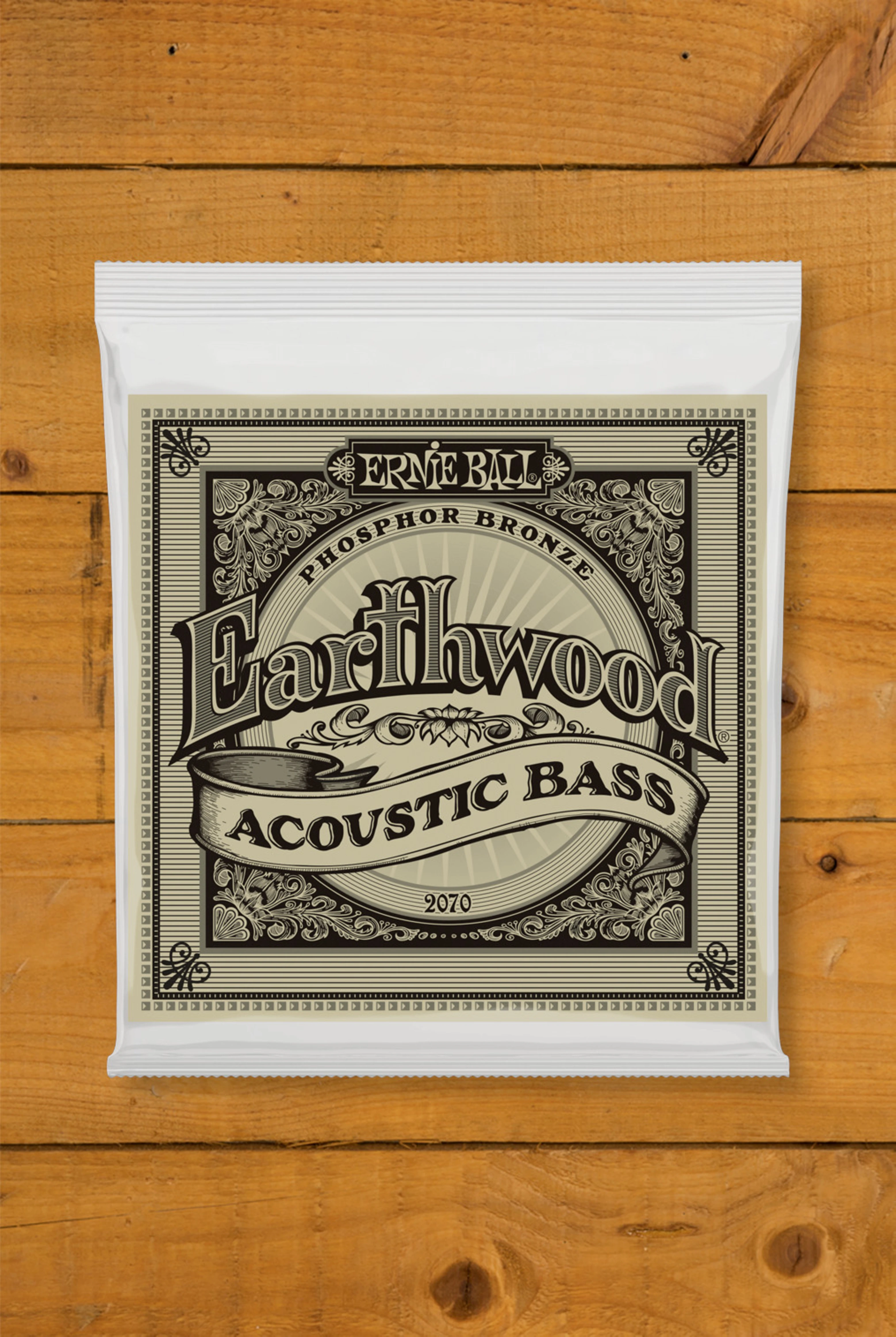 Ernie Ball Earthwood Phosphor Bronze acoustic bass strings are made from 92% copper, 7.7% tin, 0.3% phosphorus wire wrapped around tin plated hex shaped steel core wire. These acoustic bass guitar strings have a light orange, gold colour and provide a mellow, ringing sound, with excellent clarity.