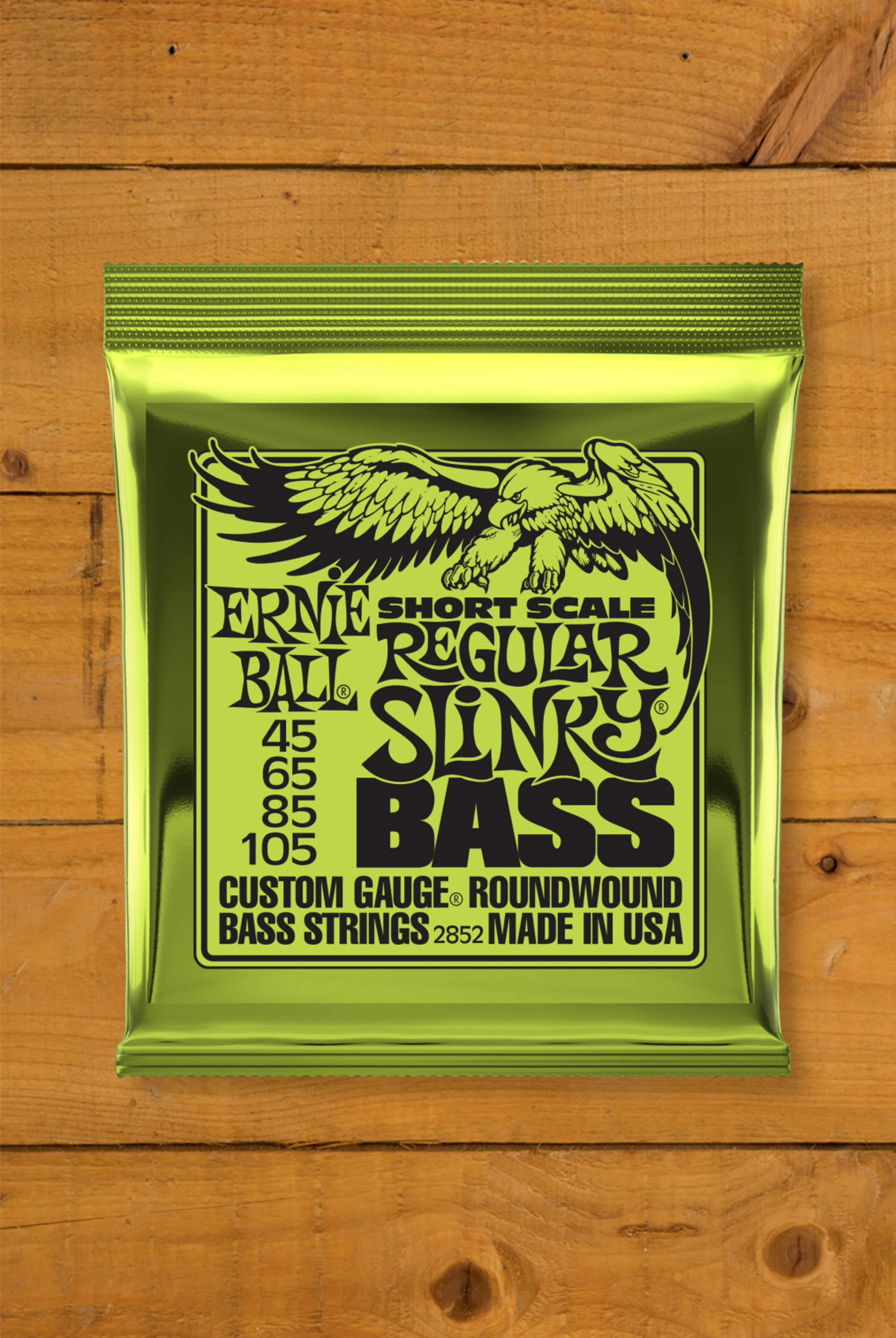 Ernie Ball Nickel Wound Short Scale Electric Bass Strings are made from nickel plated steel wrapped around a hex shaped steel core wire. Each bass guitar string produces a bright, balanced tone. Designed to fit 30.5" scale basses, the string length is 48" with a taper at 32.5".