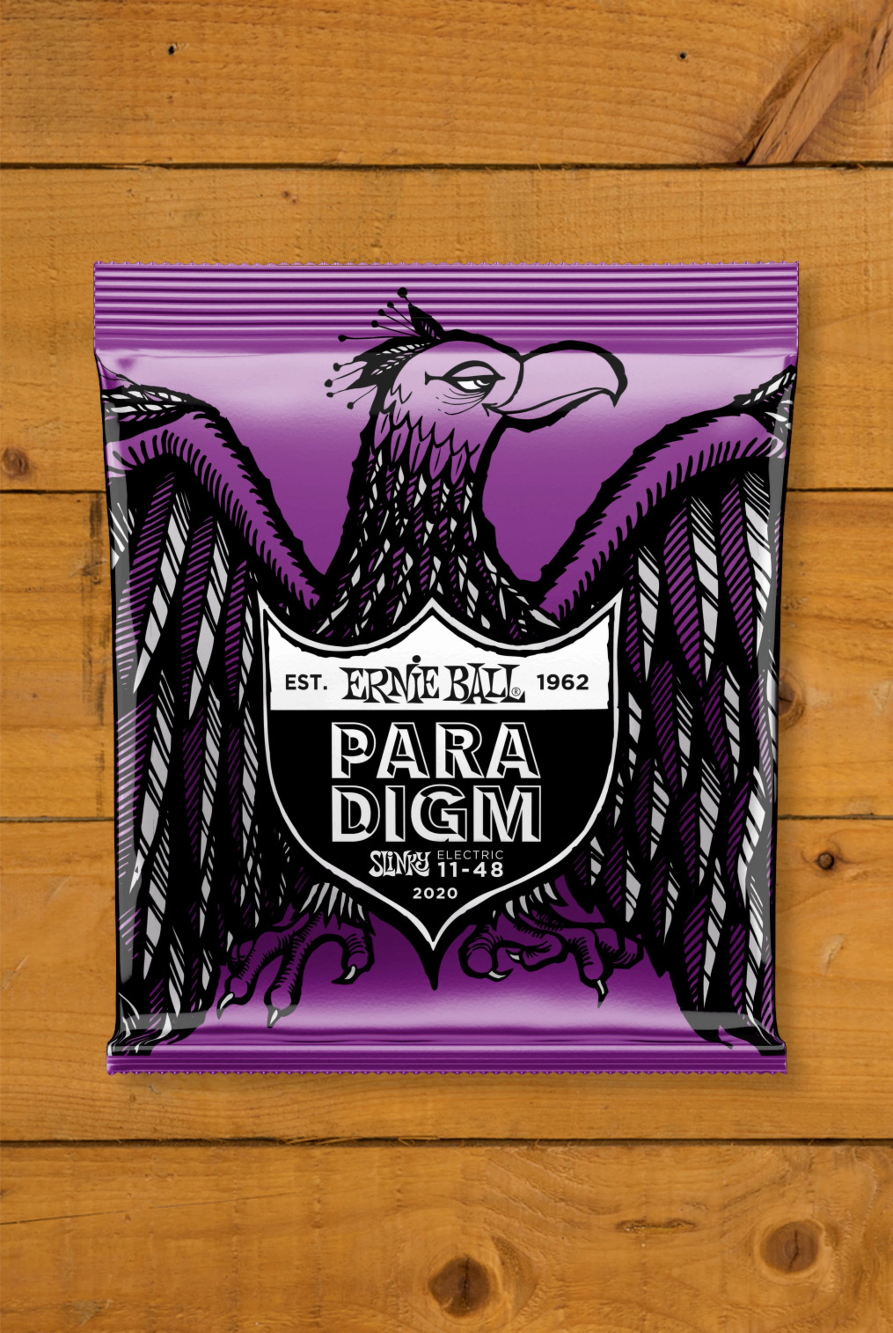 Ernie Ball Slinky Paradigm Electric guitar strings provide unprecedented strength and longer life while retaining 100% Slinky tone and feel. Ernie Ball's industry leading ultra-high strength steel is included in both the wound and plain strings along with a patented reinforcement at the ball end twist of each plain string to provide superior tensile and fatigue strength for strings that lock into tune fast and hold up under the most stressful playing styles and conditions. The coupling of Ernie Ball's Everlast nanotreatment with breakthrough plasma enhanced wrap wire provides added corrosion resistance and reduced accumulation of tone-robbing buildup and debris. Experience the first set of longer lasting strings that are worth playing with all benefits and no compromises.