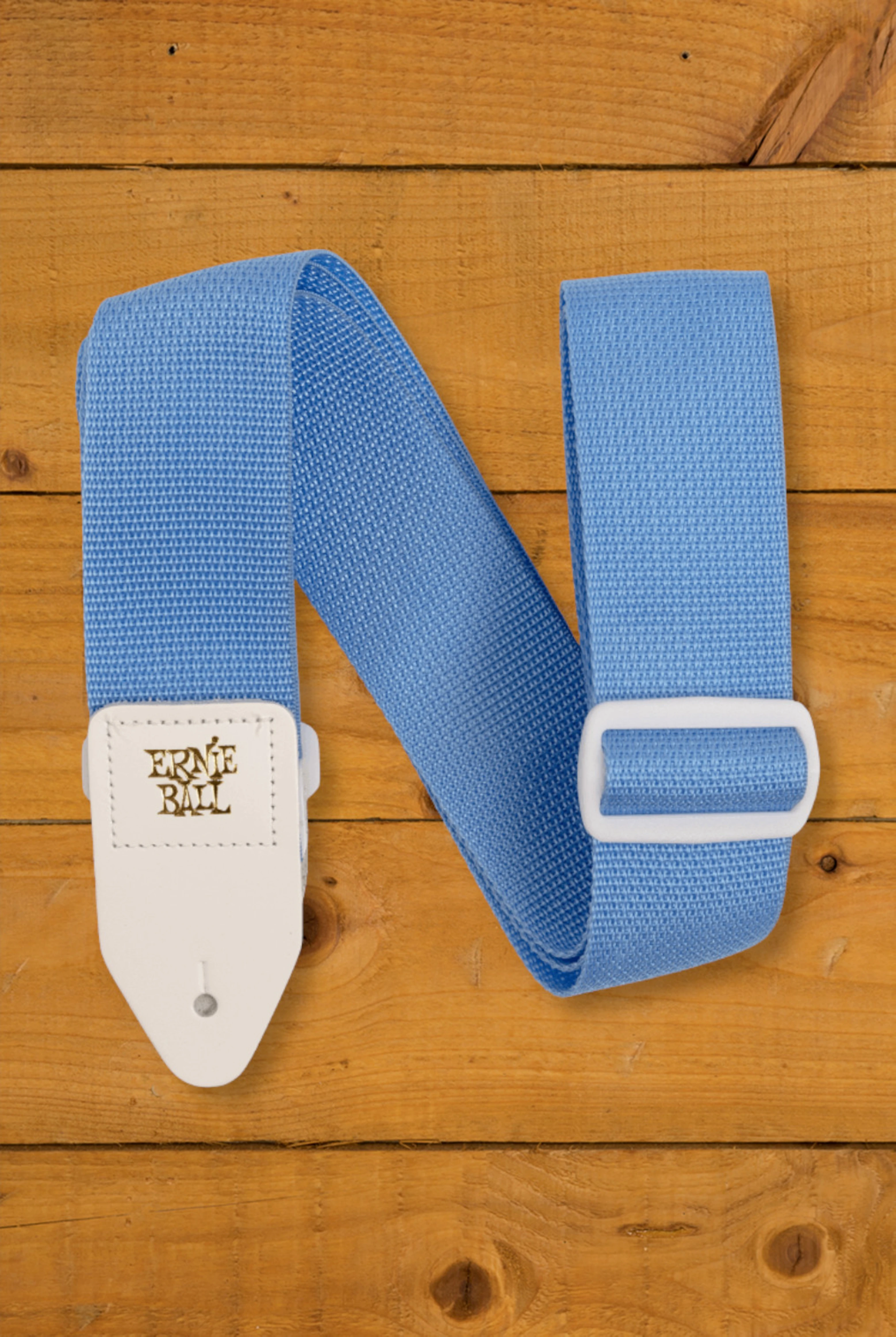 Skip to content Ernie Ball Polypro Guitar Strap/Bass Strap - Soft Blue w/White Ends