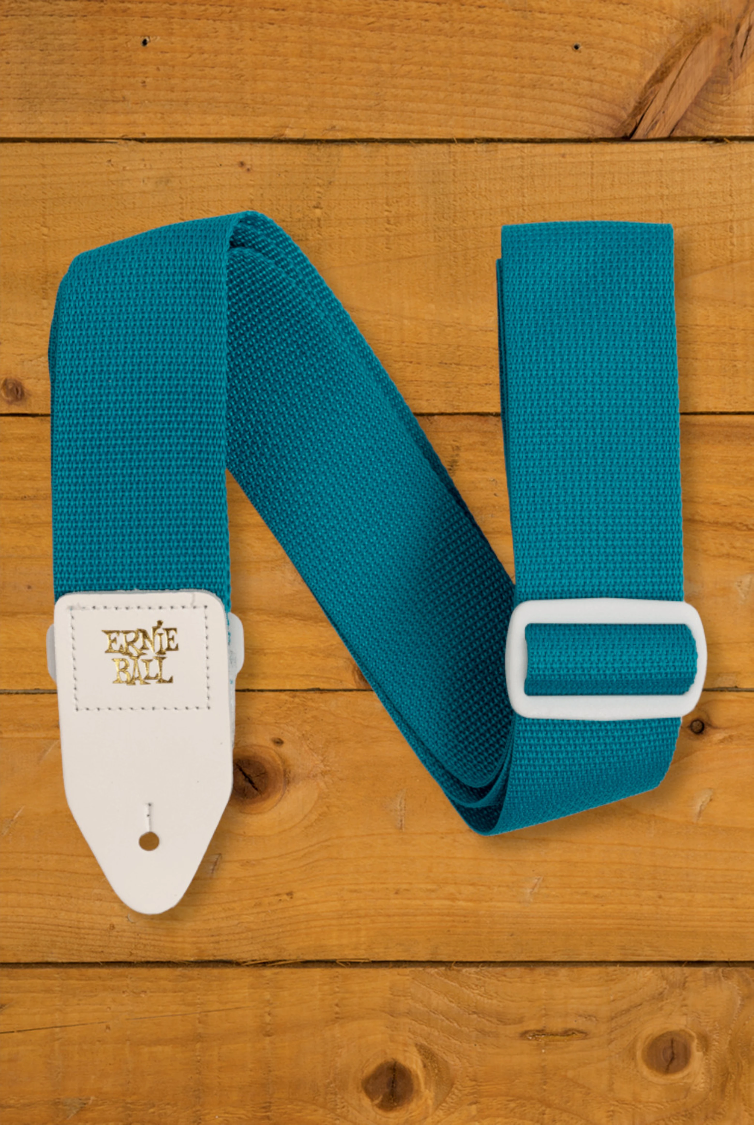 Skip to content Ernie Ball Polypro Guitar Strap/Bass Strap - Teal w/White Ends