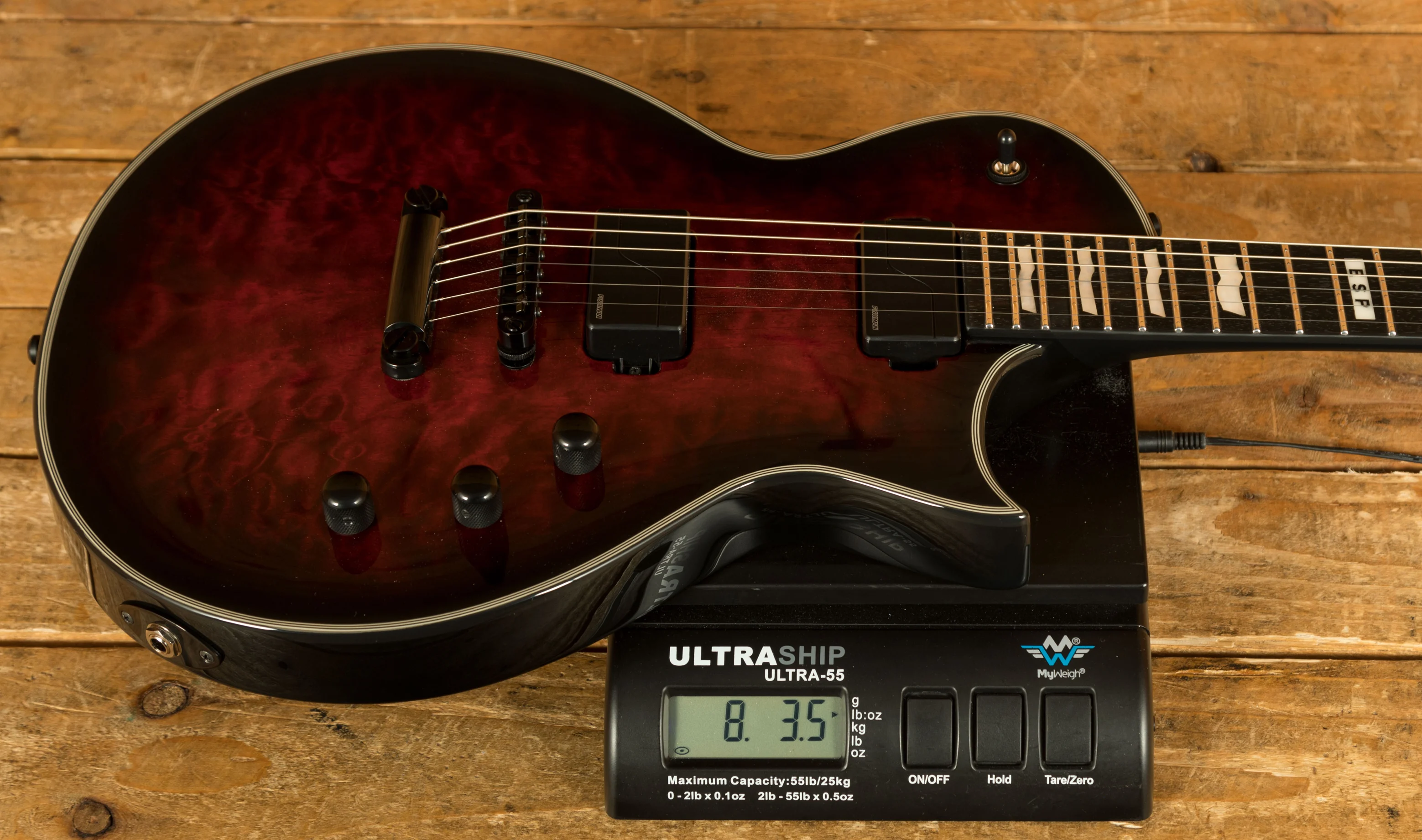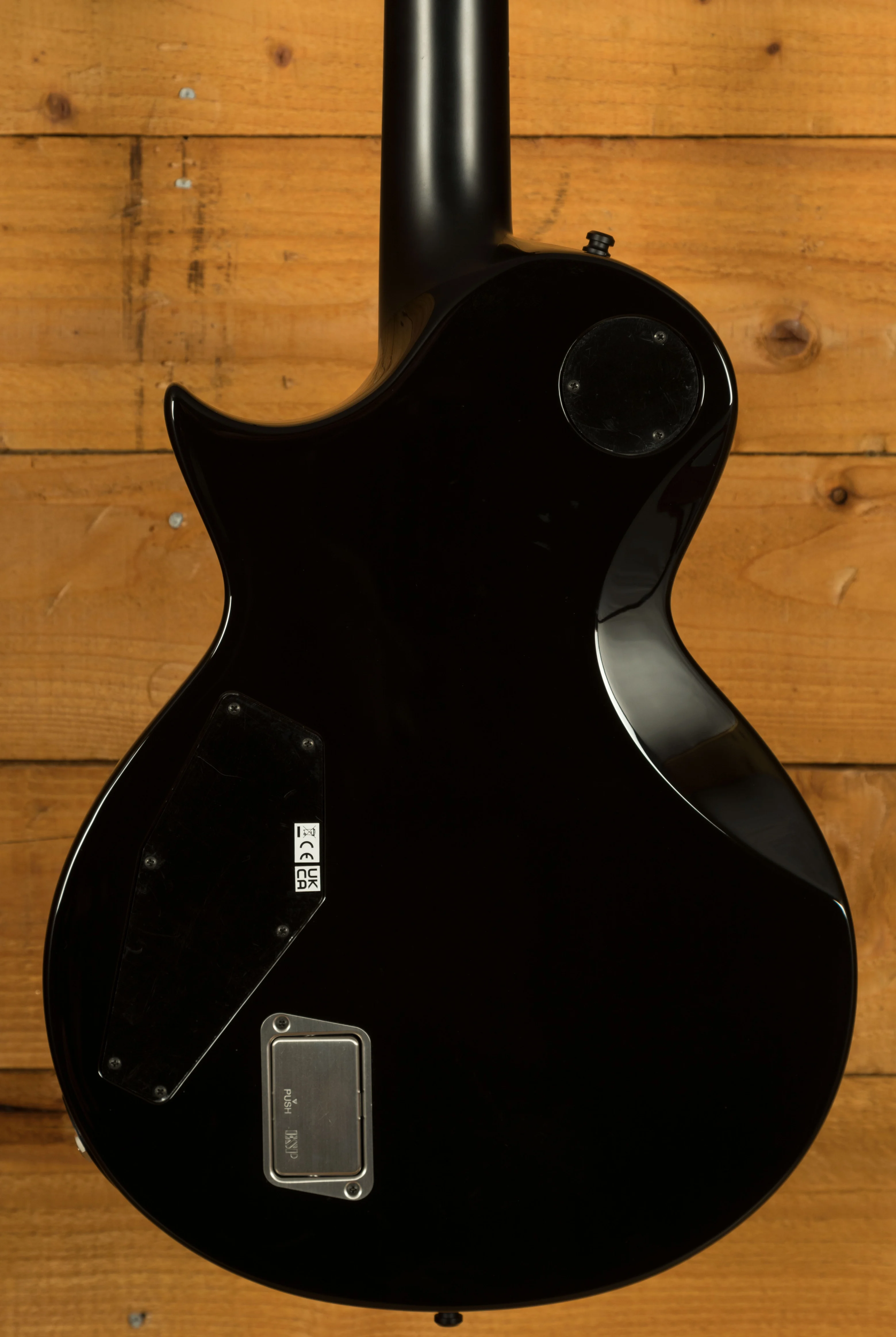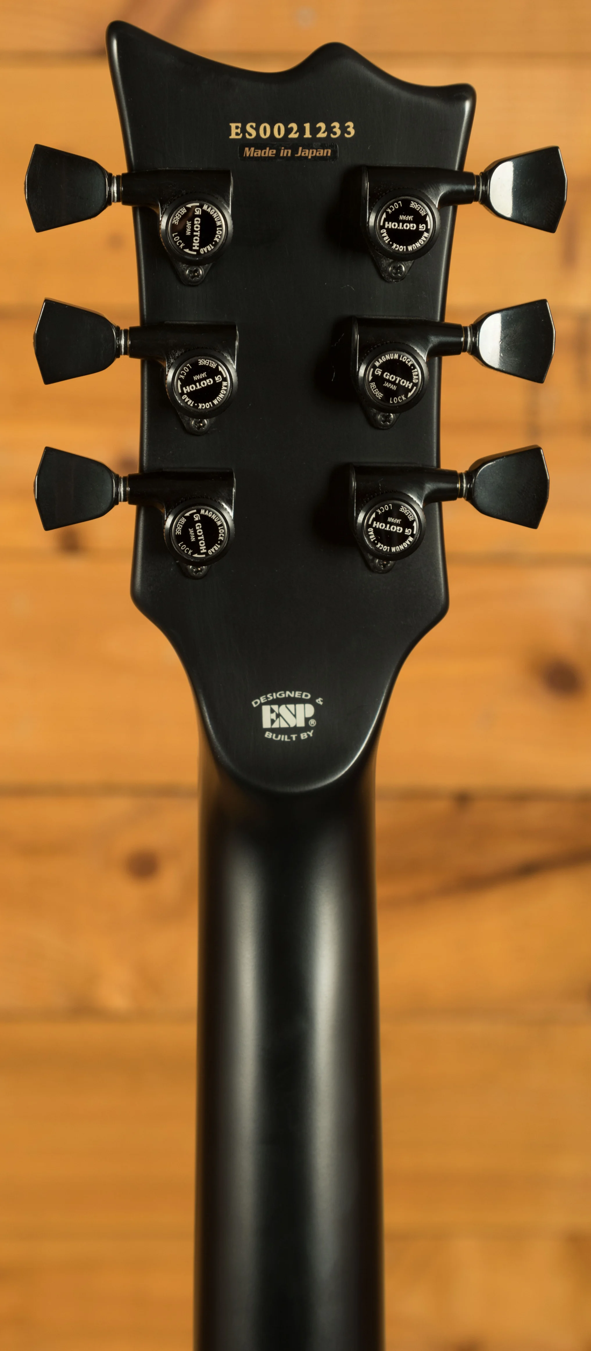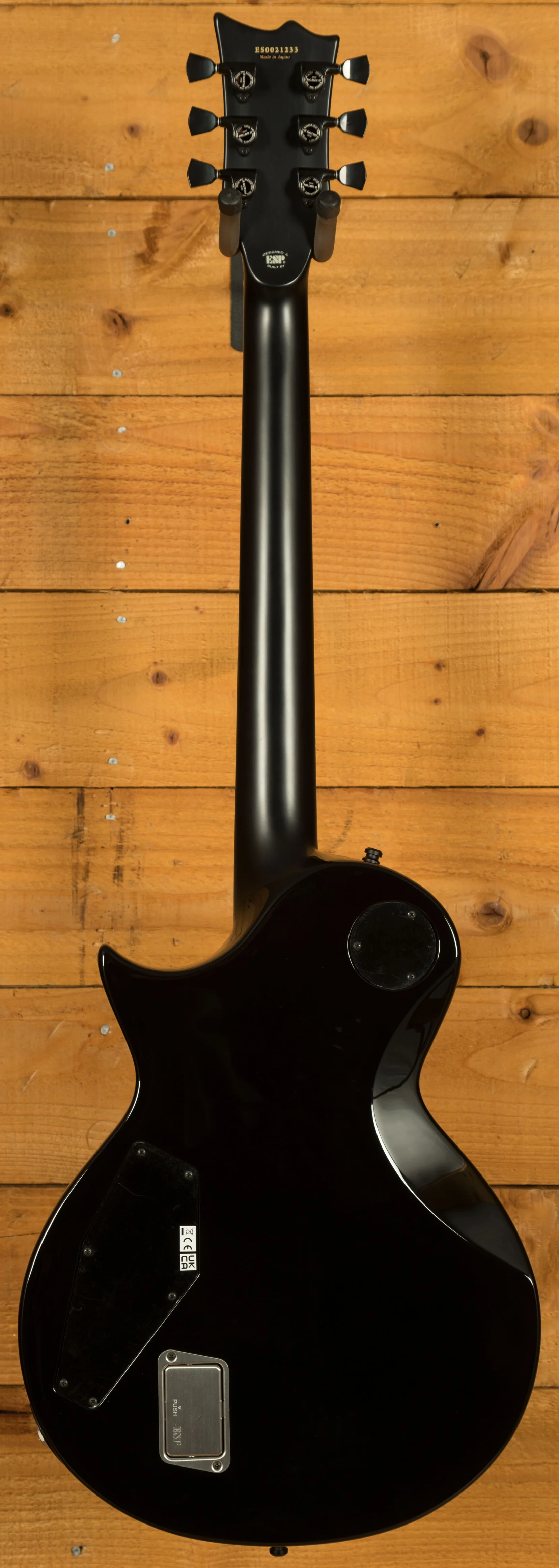 This guitar features a sleek ebony fingerboard with 22 extra-jumbo stainless steel frets, adorned with pearloid ESP flag inlays for an extra touch of elegance. With a satin finish on the back of the neck, this guitar offers incredible playability and comfort for hours of uninterrupted playing. The bone nut, Gotoh locking tuners, and Gotoh TOM bridge and tailpiece ensure optimal tuning stability and accuracy.
