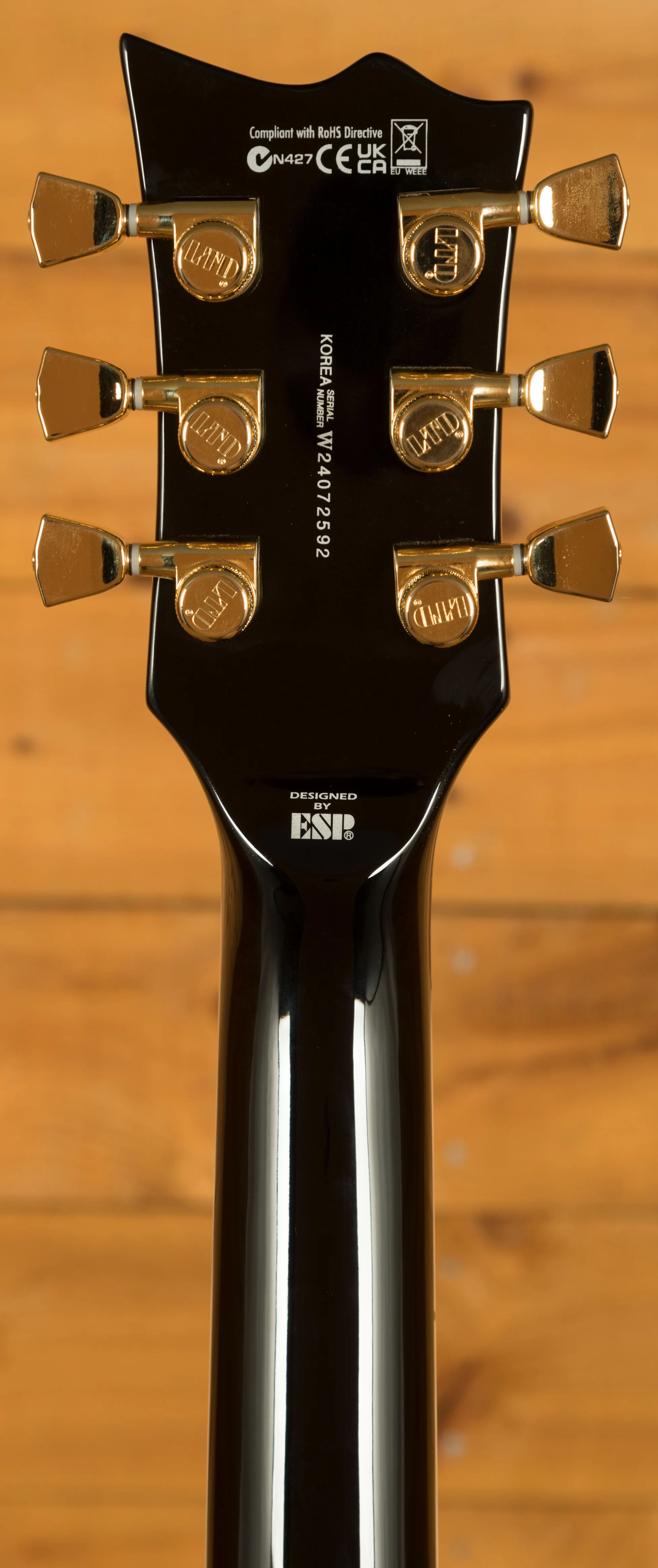 Built for comfort and durability, the EC-1000 features a set-thru construction with a 24.75" scale length and a smooth heel joint for effortless access to higher frets. The combination of a mahogany body and a three-piece mahogany "Thin U" neck ensures a solid, resonant tone with excellent playability. The Macassar ebony fingerboard with a 350mm radius, ESP flag inlays, and 24 extra-jumbo stainless steel frets enhances precision and reduces wear, making this guitar a reliable choice for long-term use.