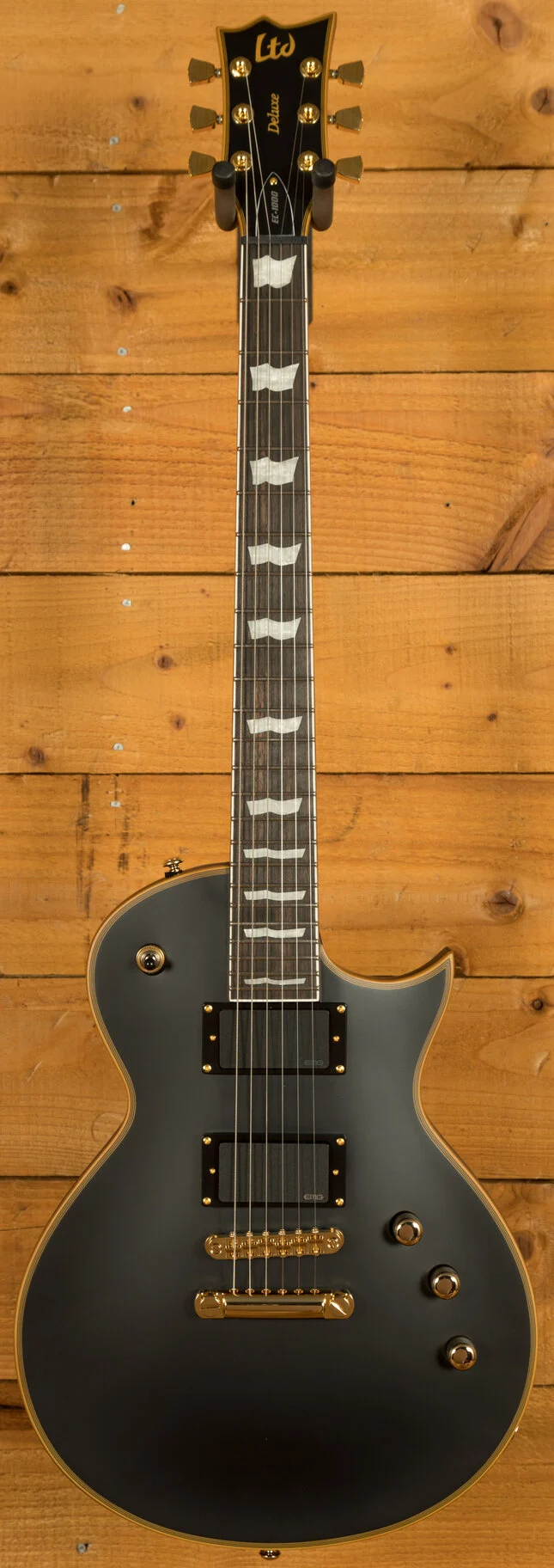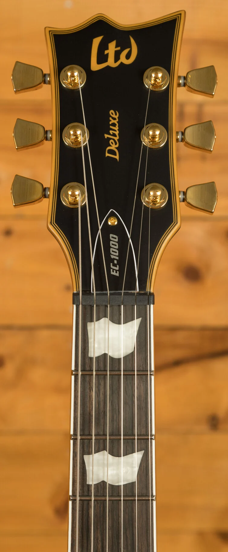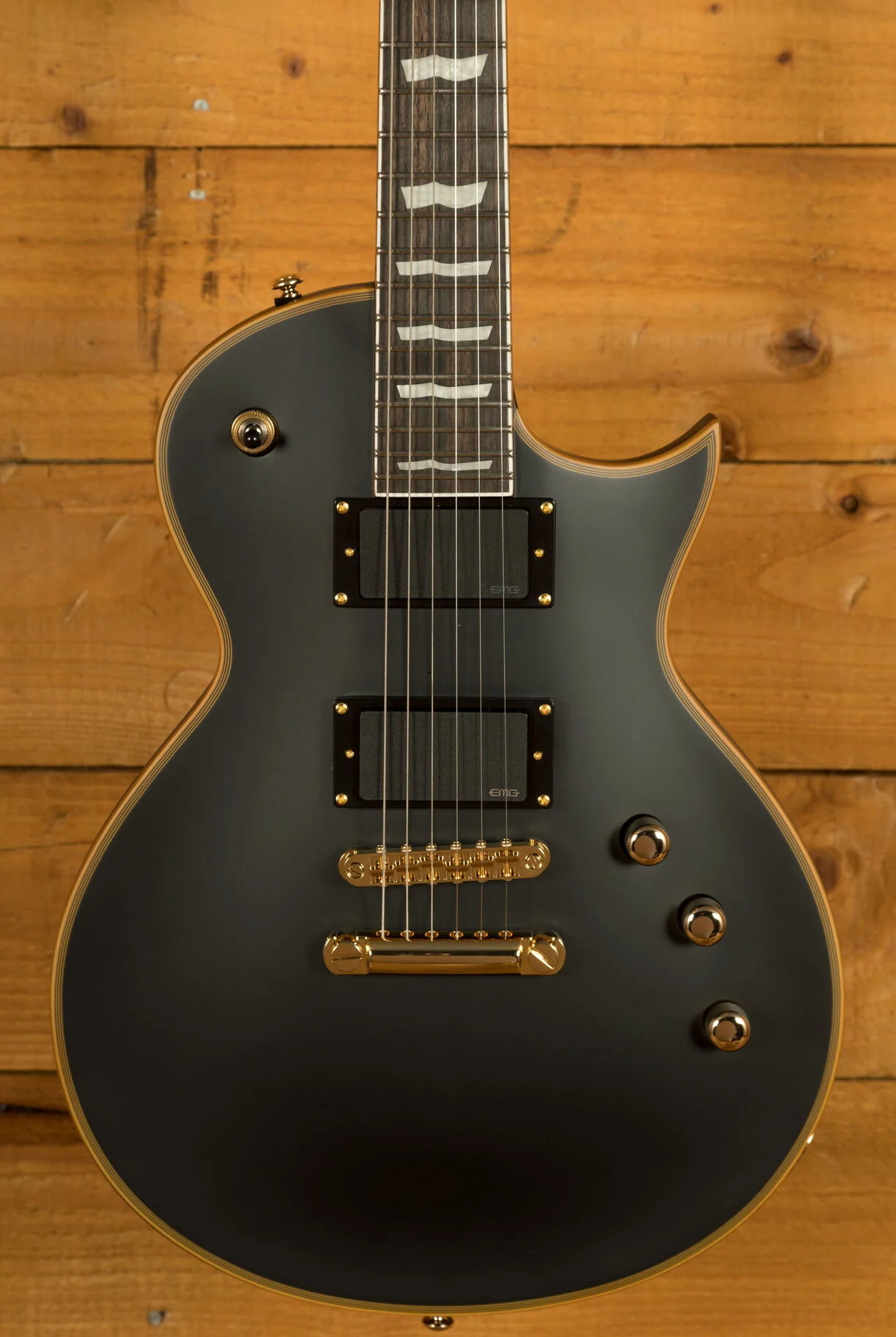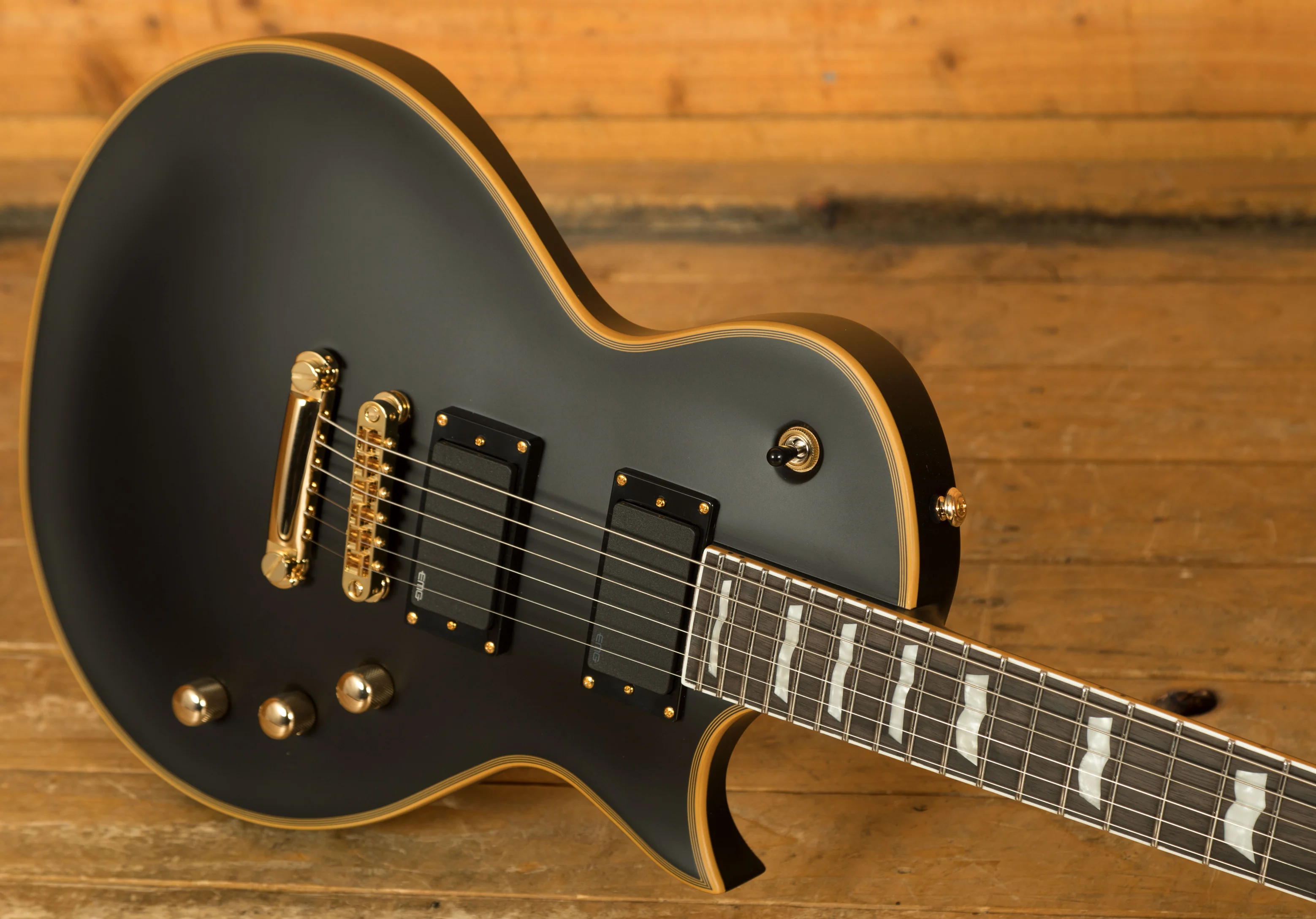 The EC-1000 EMG in Vintage Black is a flagship model in ESP LTD's lineup, built for aggressive tone and professional reliability. Its satin black finish with aged binding and gold hardware delivers a stealthy, high-end aesthetic that's become iconic amongst hard rock and metal players.