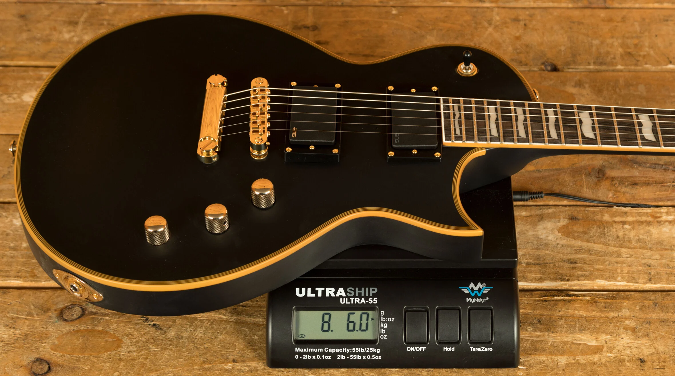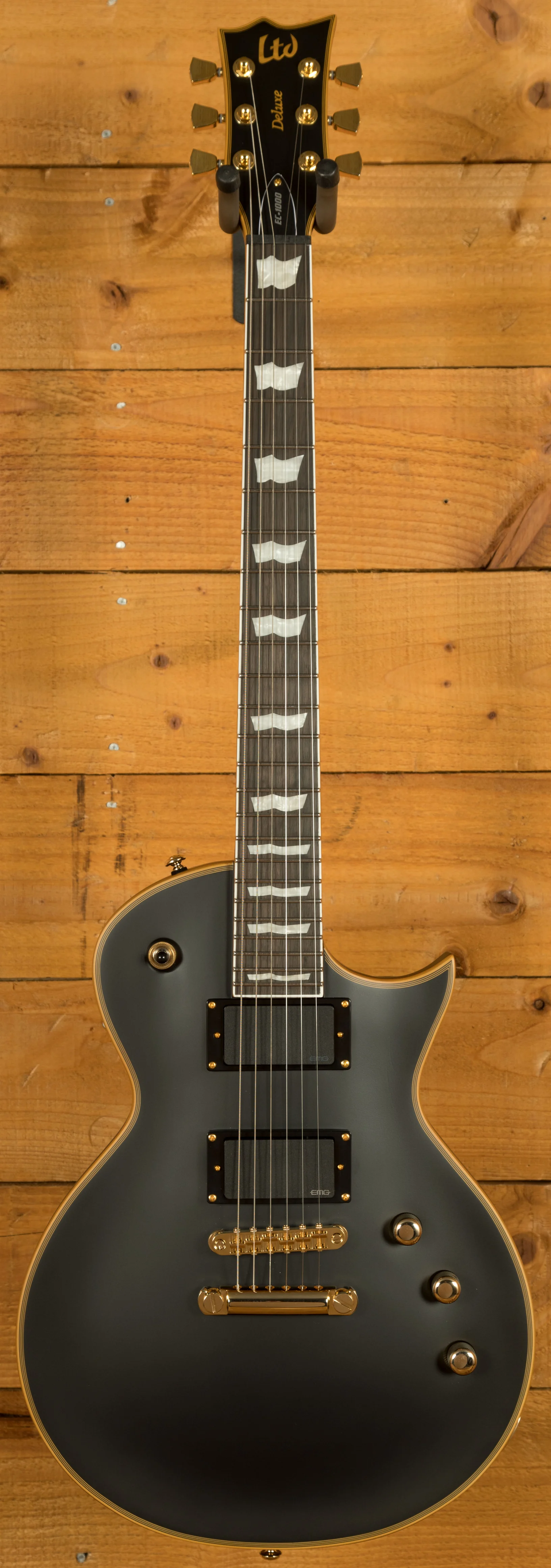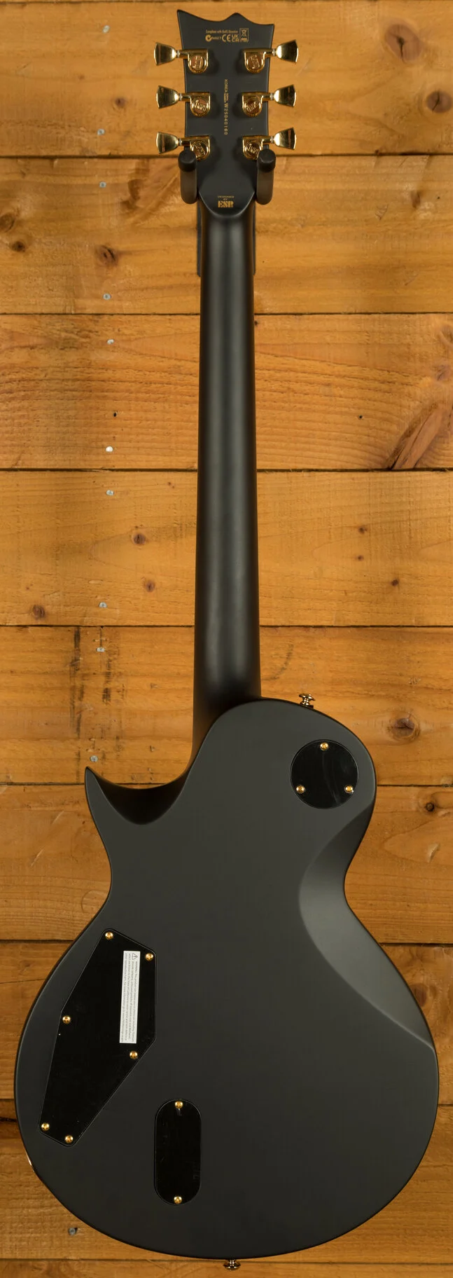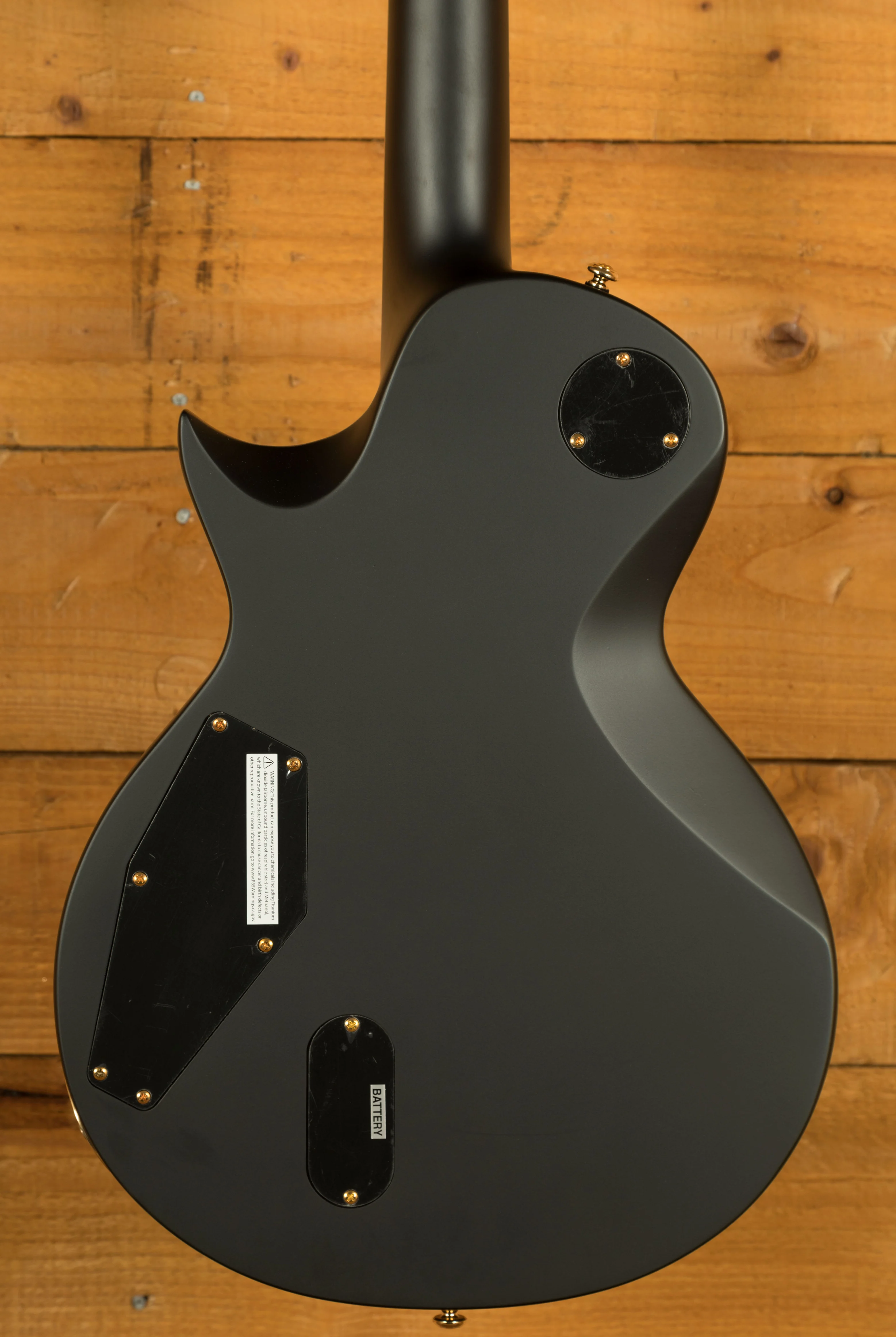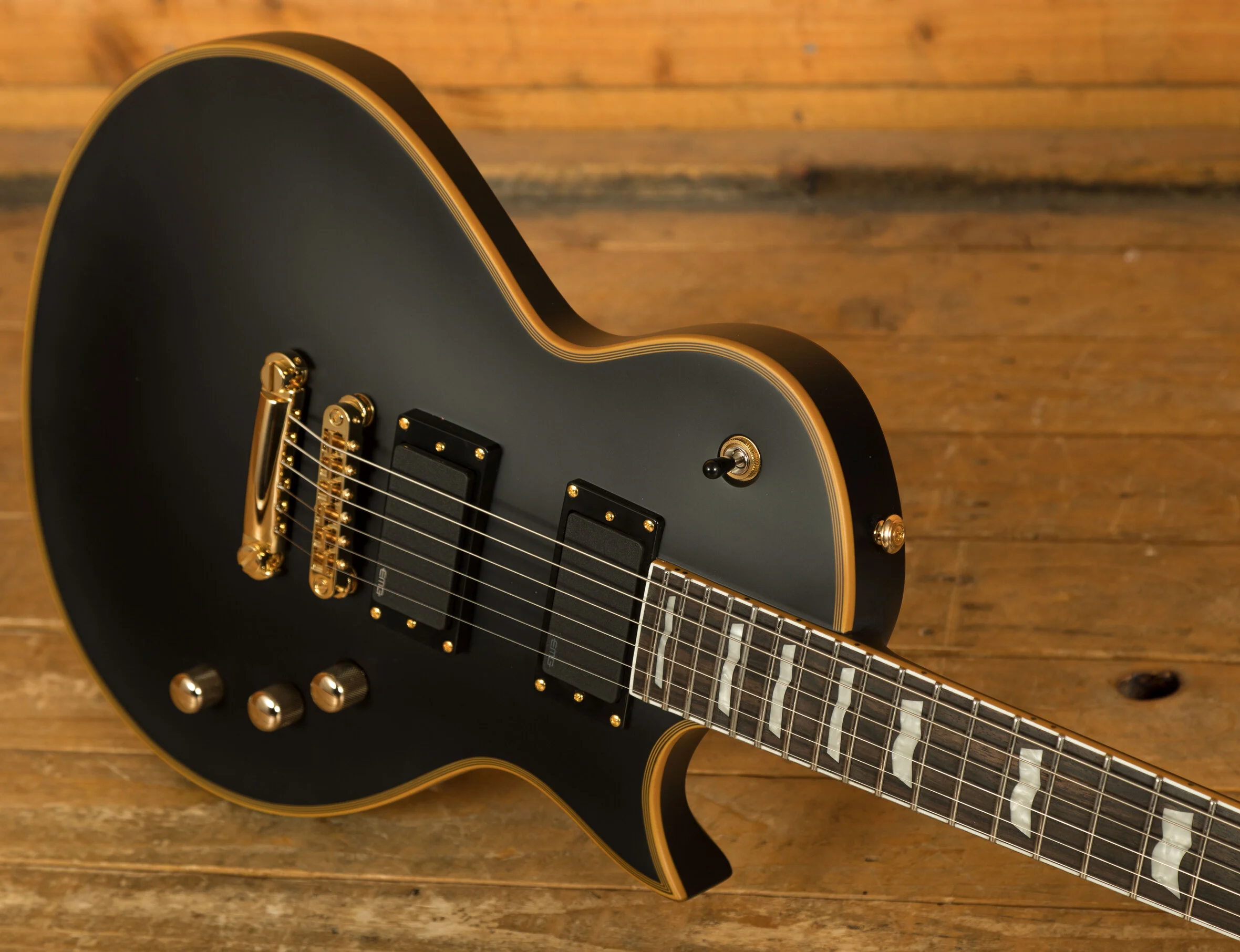The EC-1000 EMG in Vintage Black is a flagship model in ESP LTD's lineup, built for aggressive tone and professional reliability. Its satin black finish with aged binding and gold hardware delivers a stealthy, high-end aesthetic that's become iconic amongst hard rock and metal players.