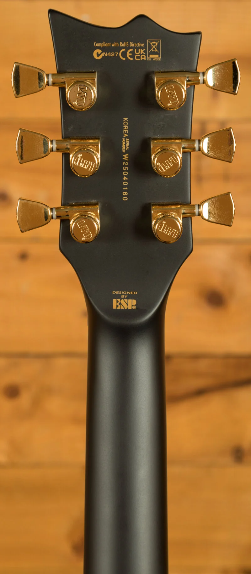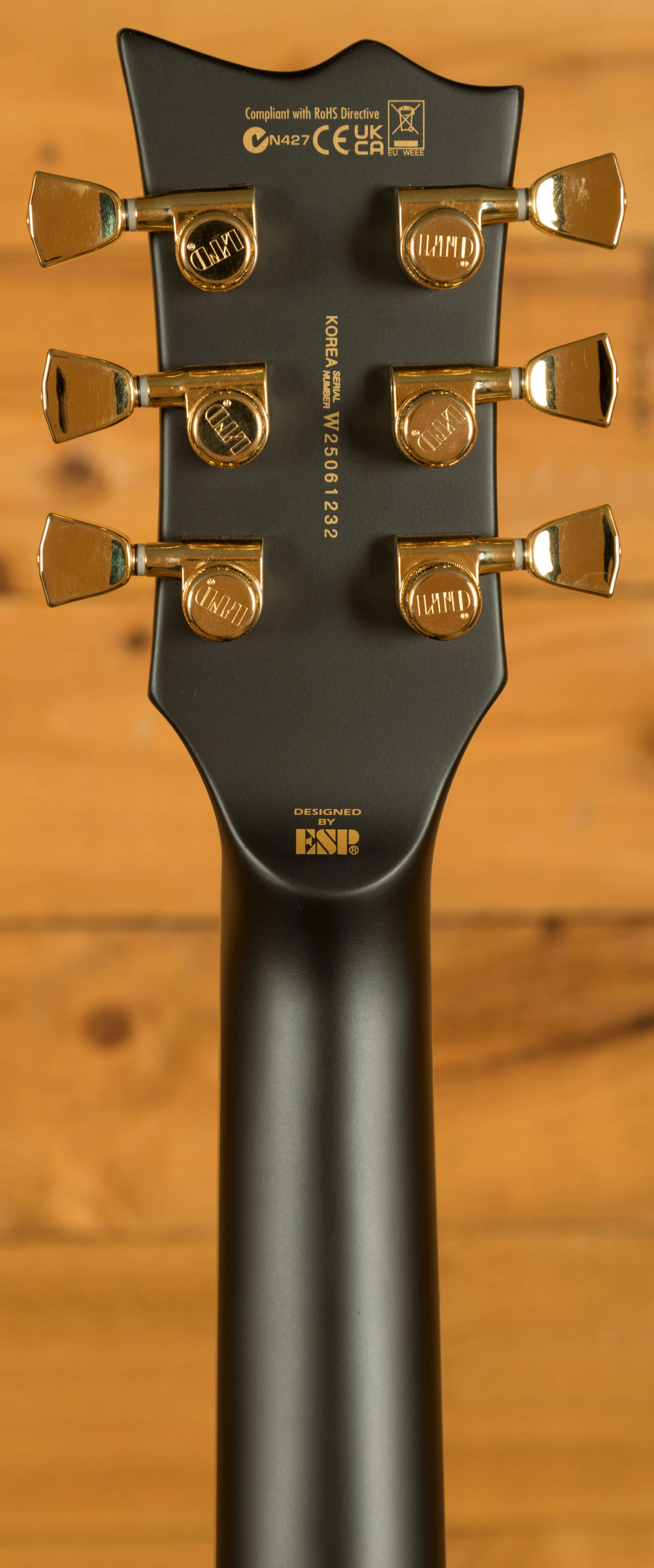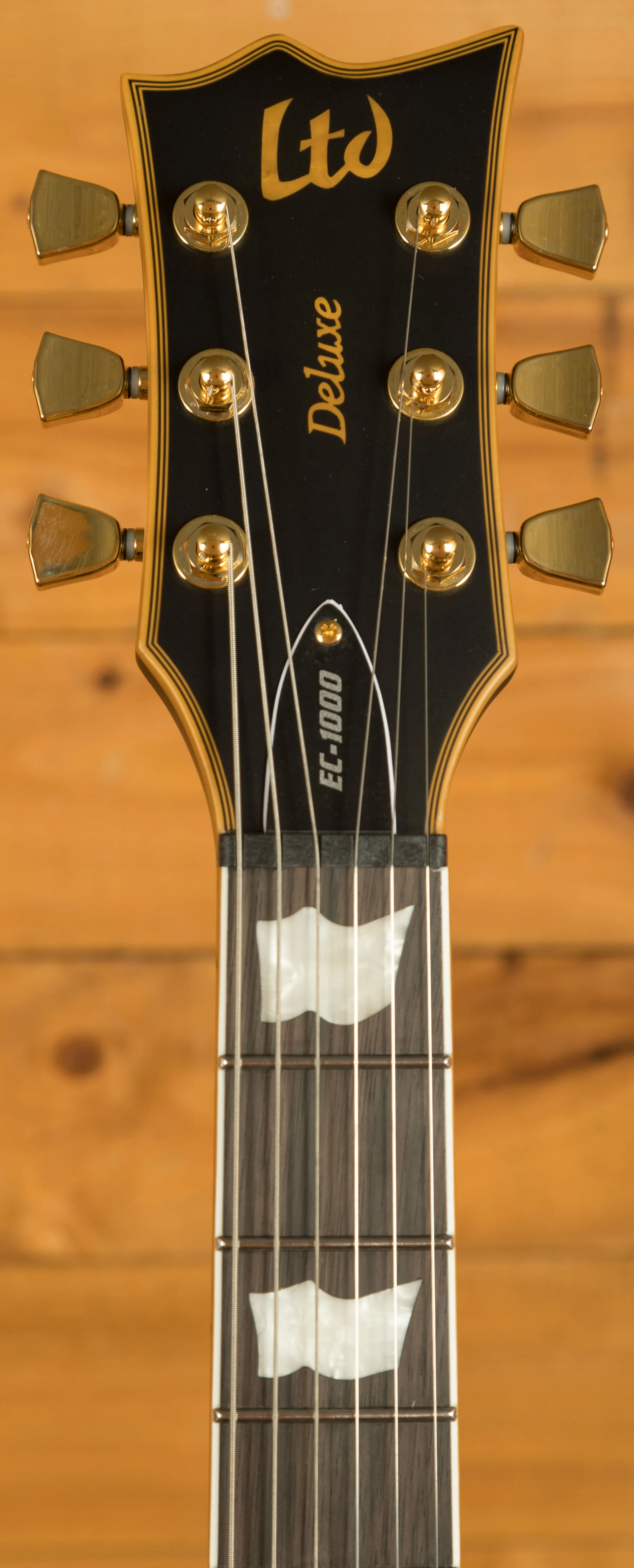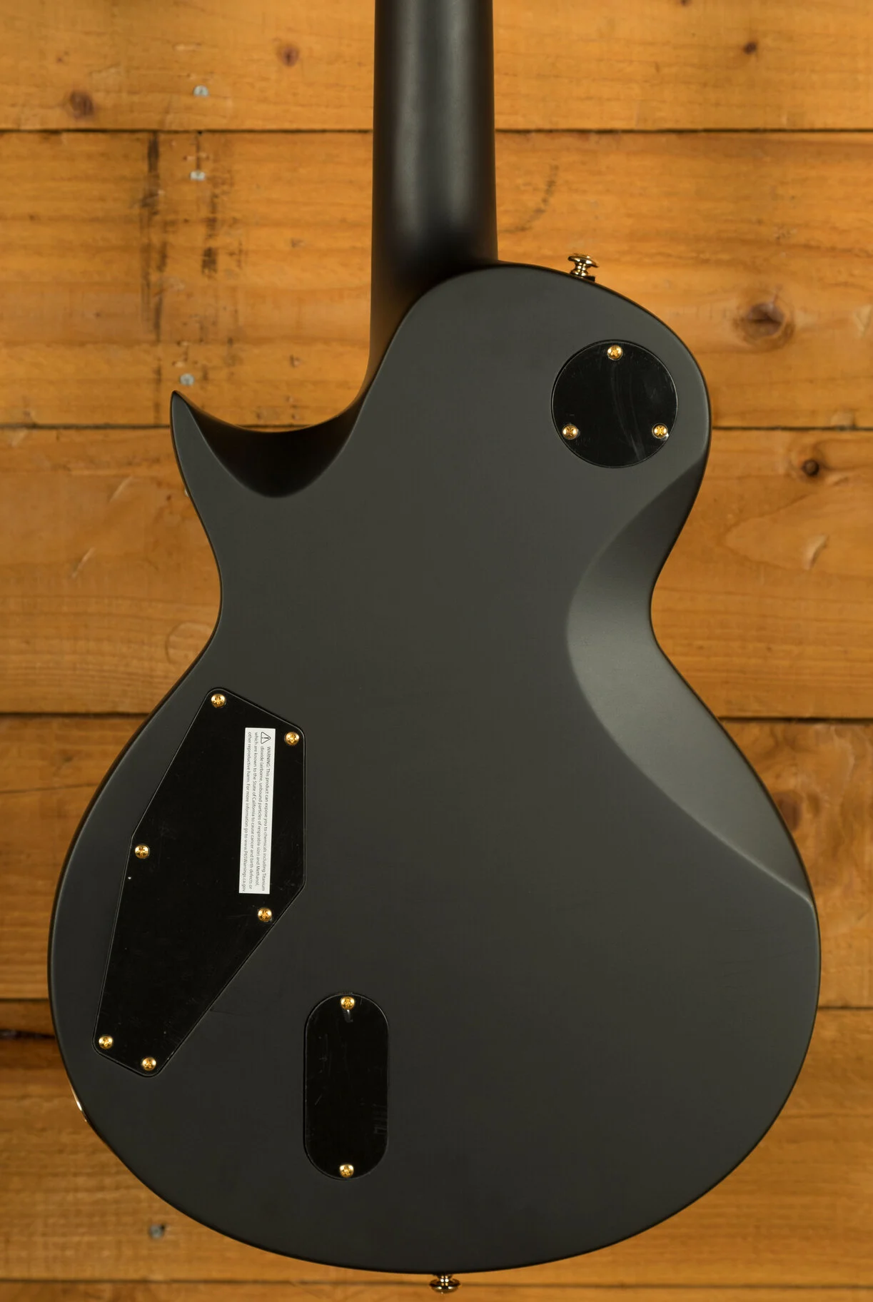 The EC-1000 EMG in Vintage Black is a flagship model in ESP LTD's lineup, built for aggressive tone and professional reliability. Its satin black finish with aged binding and gold hardware delivers a stealthy, high-end aesthetic that's become iconic amongst hard rock and metal players.