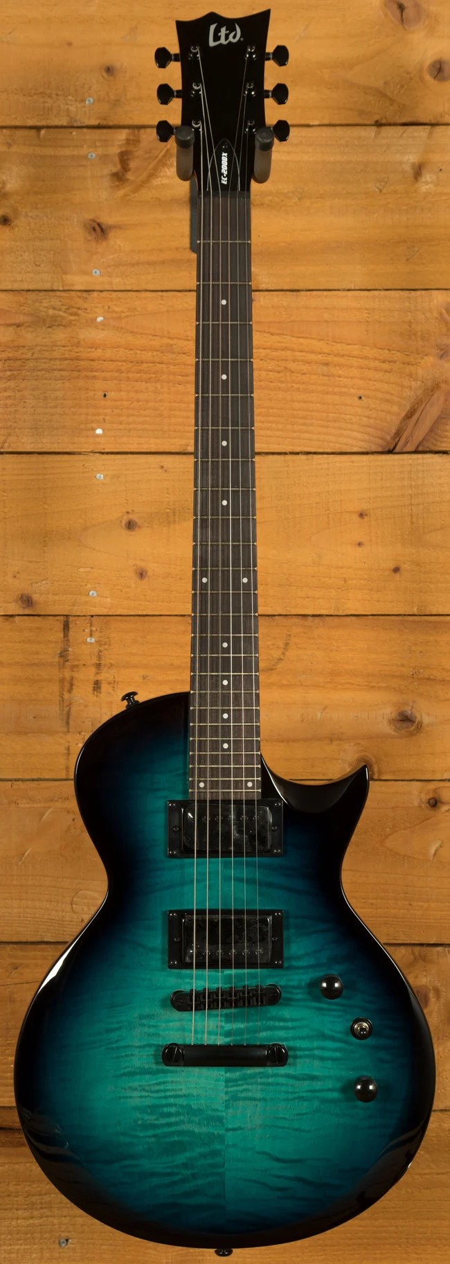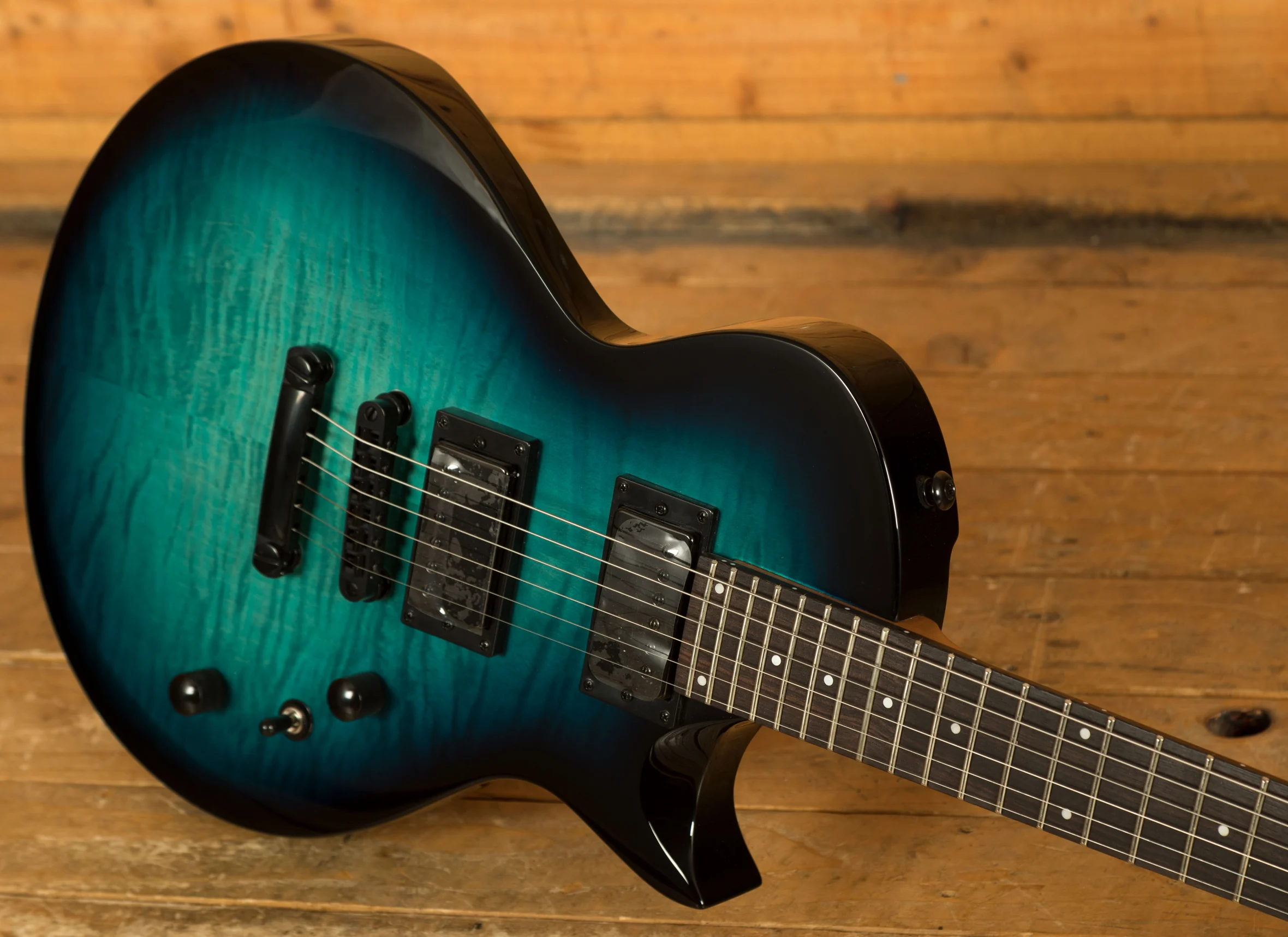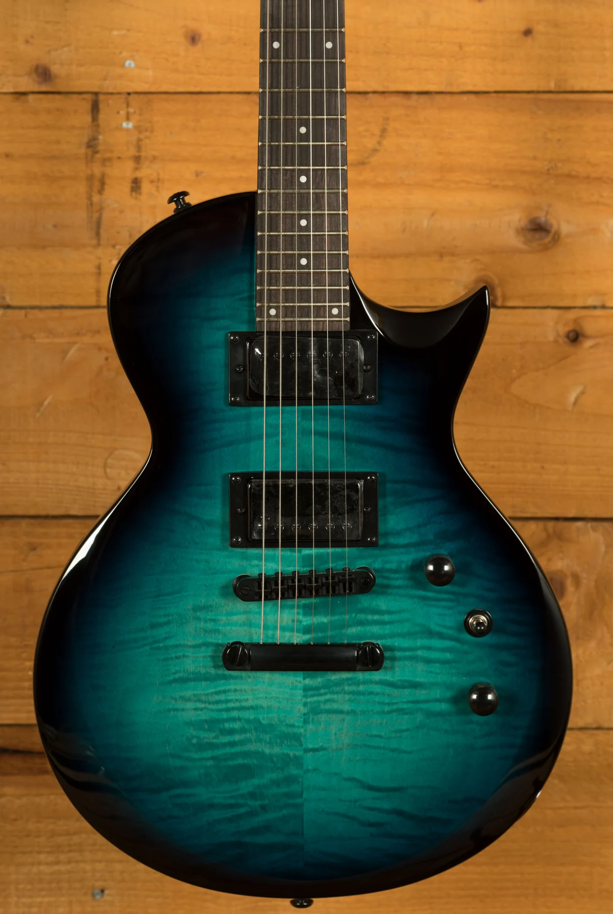 The ESP LTD EC-200DX is part of LTD's DX range, designed to deliver premium build quality and versatile performance at an accessible price. Featuring a flat-top single-cutaway Eclipse body with a bevelled edge, it offers comfortable playability while maintaining a sleek, professional appearance. The poplar body with a flamed maple top provides a balanced tonal foundation, while the roasted maple neck enhances stability and durability. A smooth rosewood fingerboard, combined with a 24.75" scale length and 350mm fingerboard radius, ensures a fast and comfortable playing experience for both rhythm and lead styles.