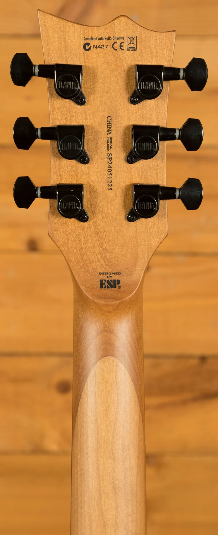 The EC-200DX features a pair of ESP LH-150 humbucking pickups with matching black chrome covers, delivering a powerful, well-defined tone suitable for a wide range of genres. These pickups excel at producing rich lows, clear mids, and articulate highs, making them ideal for everything from clean passages to high-gain riffs. The push-pull tone control adds extra versatility by allowing instant access to single-coil tones, expanding the guitar's tonal palette without needing to change instruments.