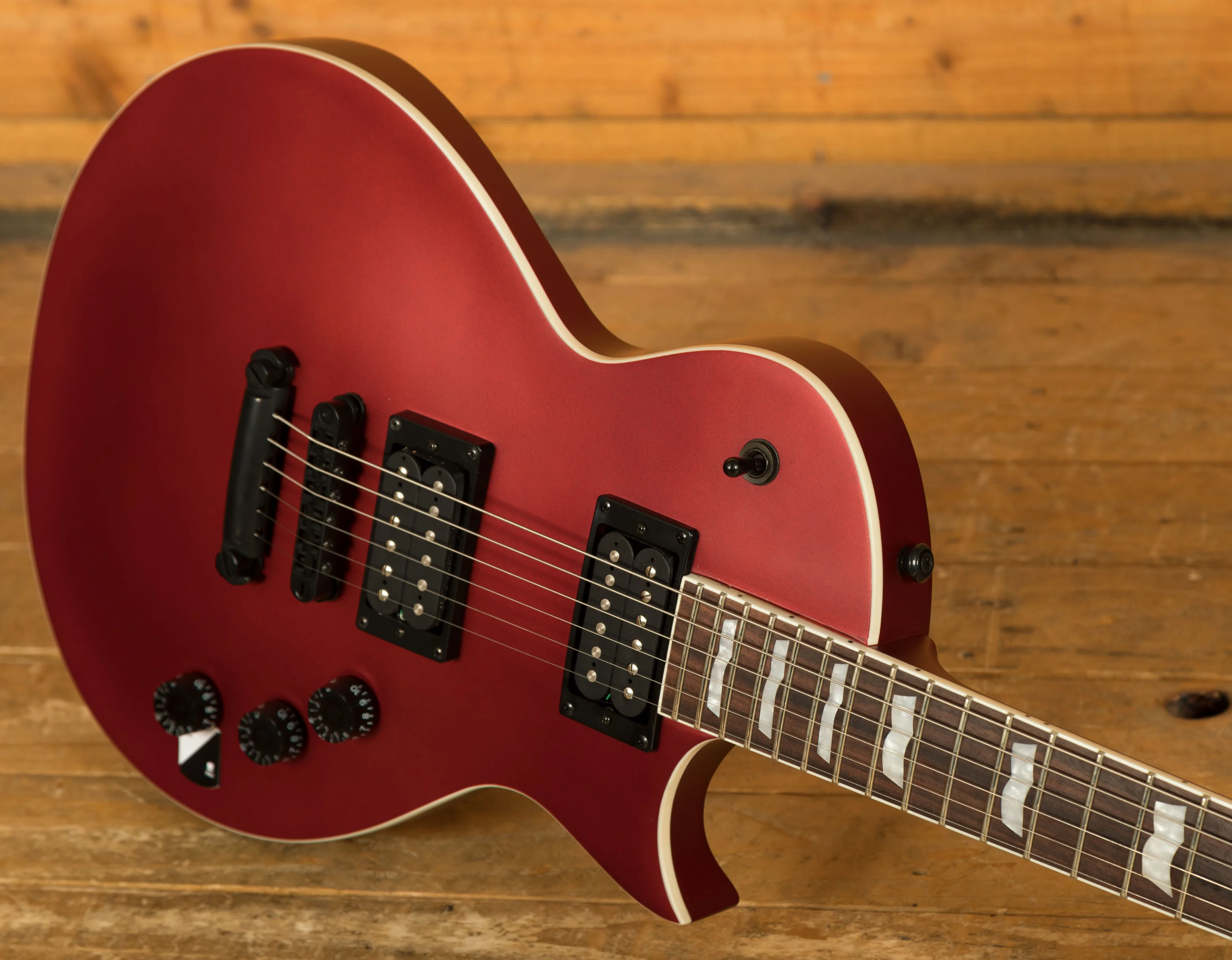 The ESP LTD EC-256 offers players professional-grade features at an accessible price point, making it a strong choice for beginners and experienced guitarists alike. Built with a solid mahogany body and a three-piece mahogany neck, the guitar delivers warm, resonant tone with excellent sustain. Its set-neck construction ensures stability, improves resonance transfer between the neck and body, and provides easier access to higher frets. The 24.75" scale length makes it comfortable to play, especially for those who prefer slightly looser string tension for bending and vibrato.