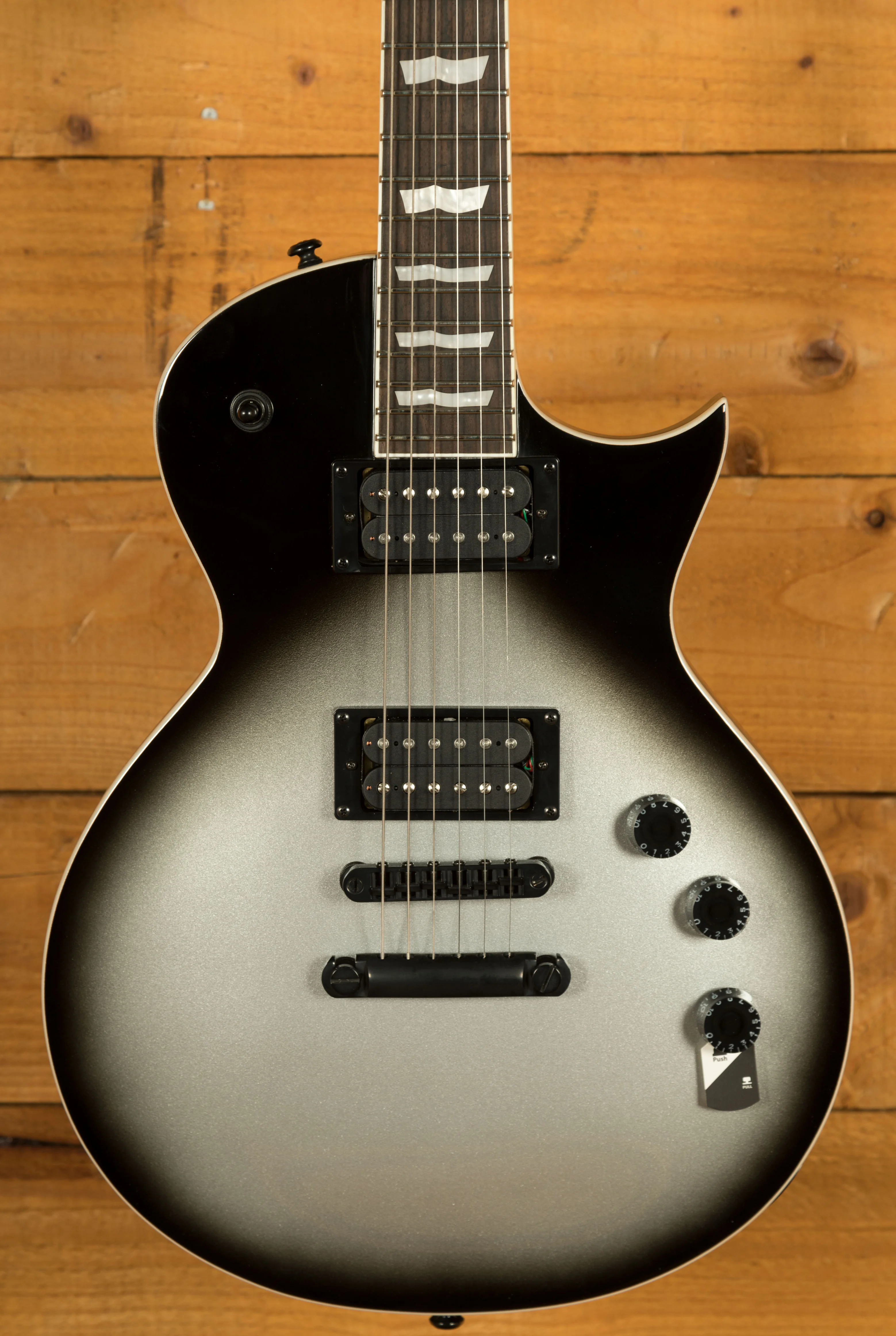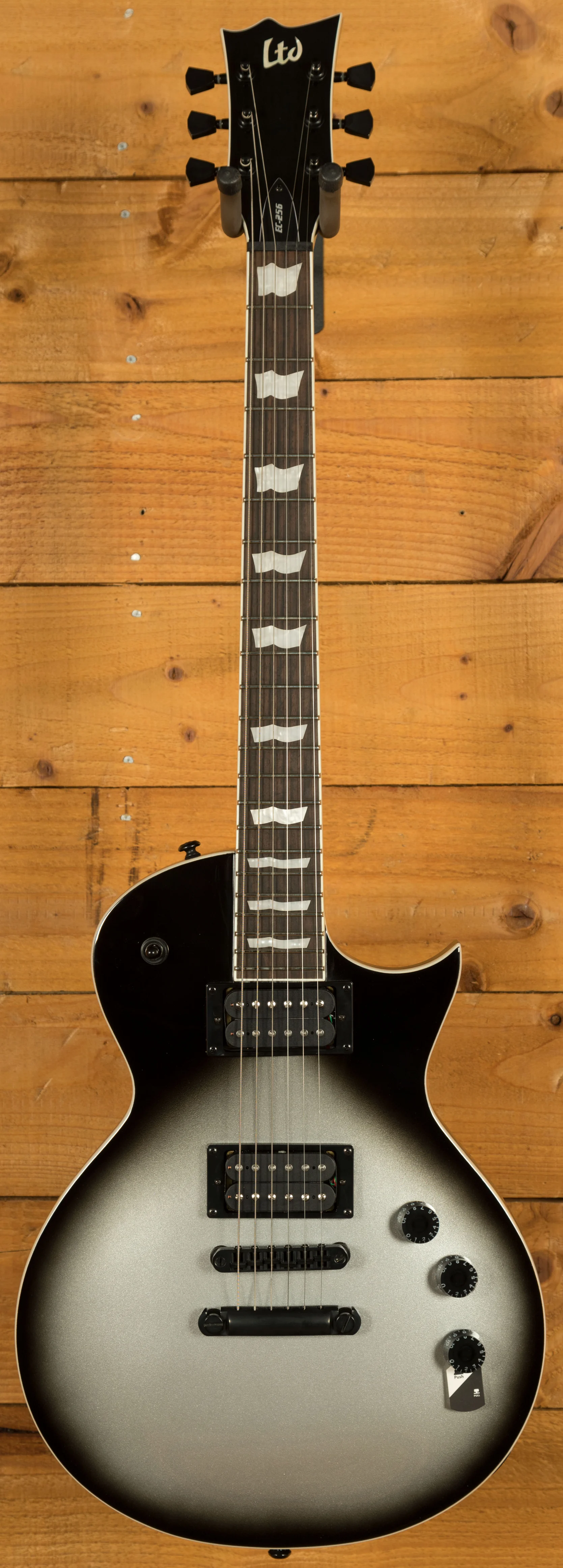 For electronics, the EC-256 is equipped with ESP's LH-150 humbuckers in both the bridge and neck positions, now with sleek matte black covers. These pickups deliver a powerful, balanced tone that suits everything from classic rock and blues to heavier modern styles. A push-pull tone knob adds coil-splitting functionality, offering single-coil clarity when needed, greatly expanding tonal options. Combined with a TOM bridge and tailpiece for solid tuning stability and sustain, the EC-256 is a reliable instrument that offers performance and features beyond its price class.